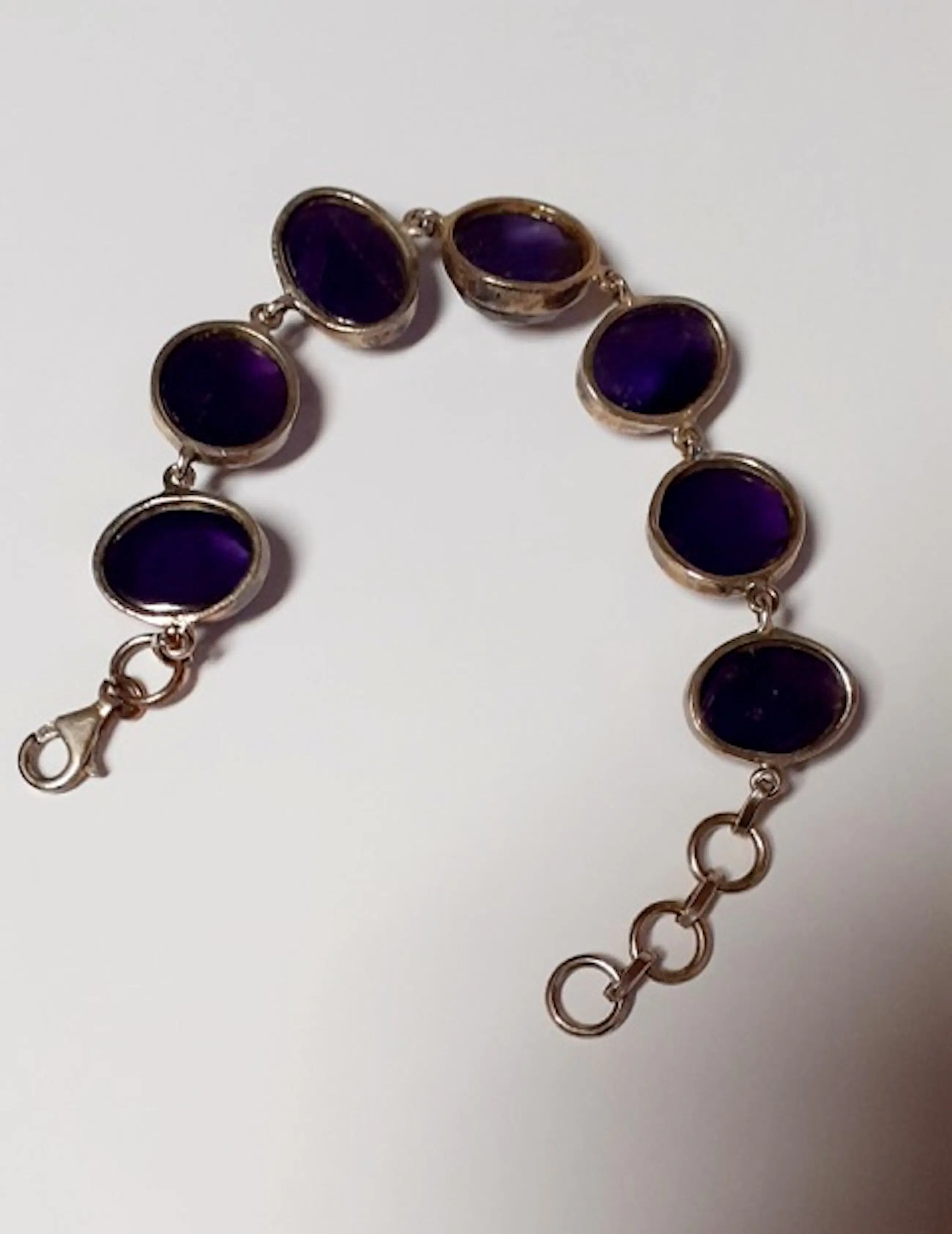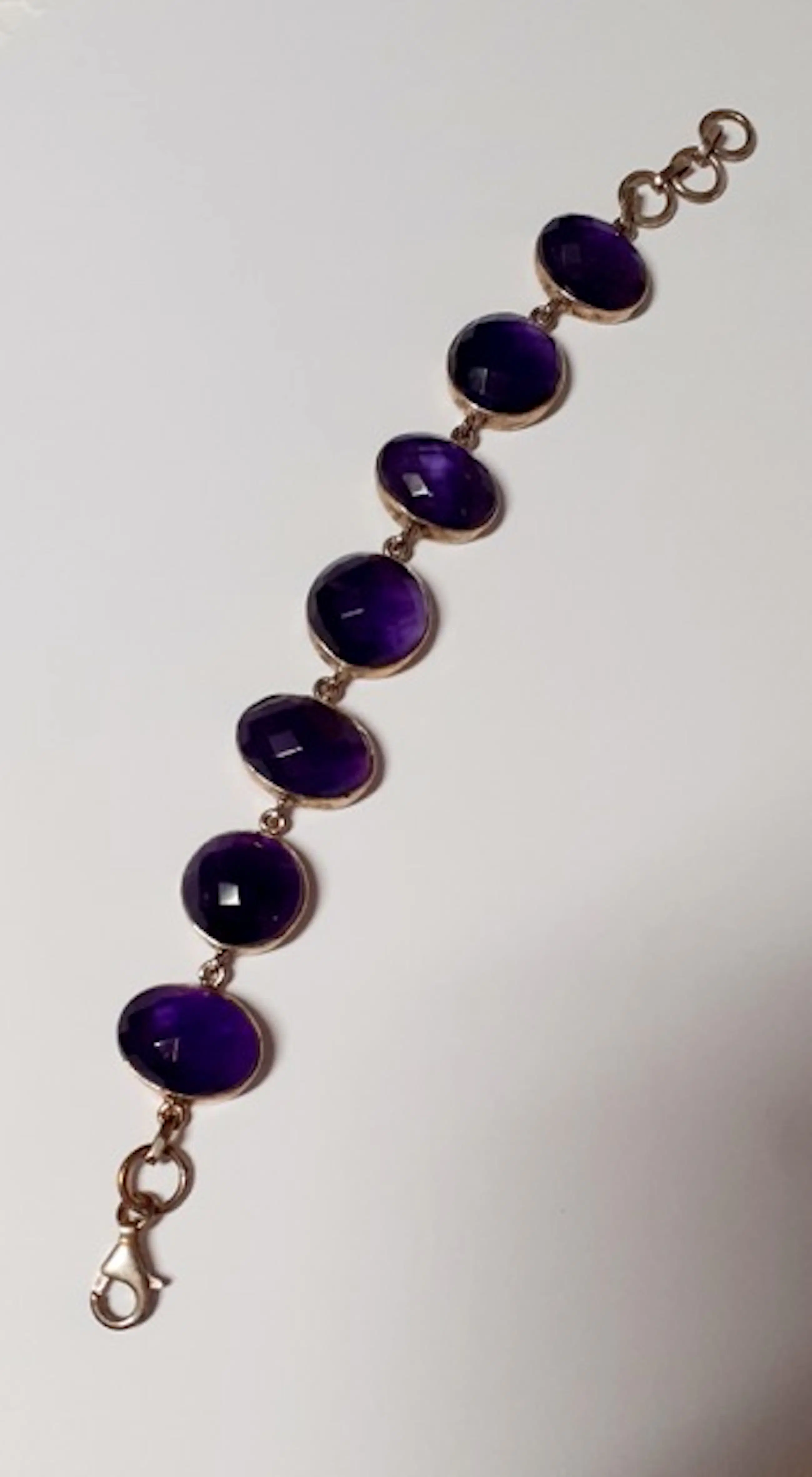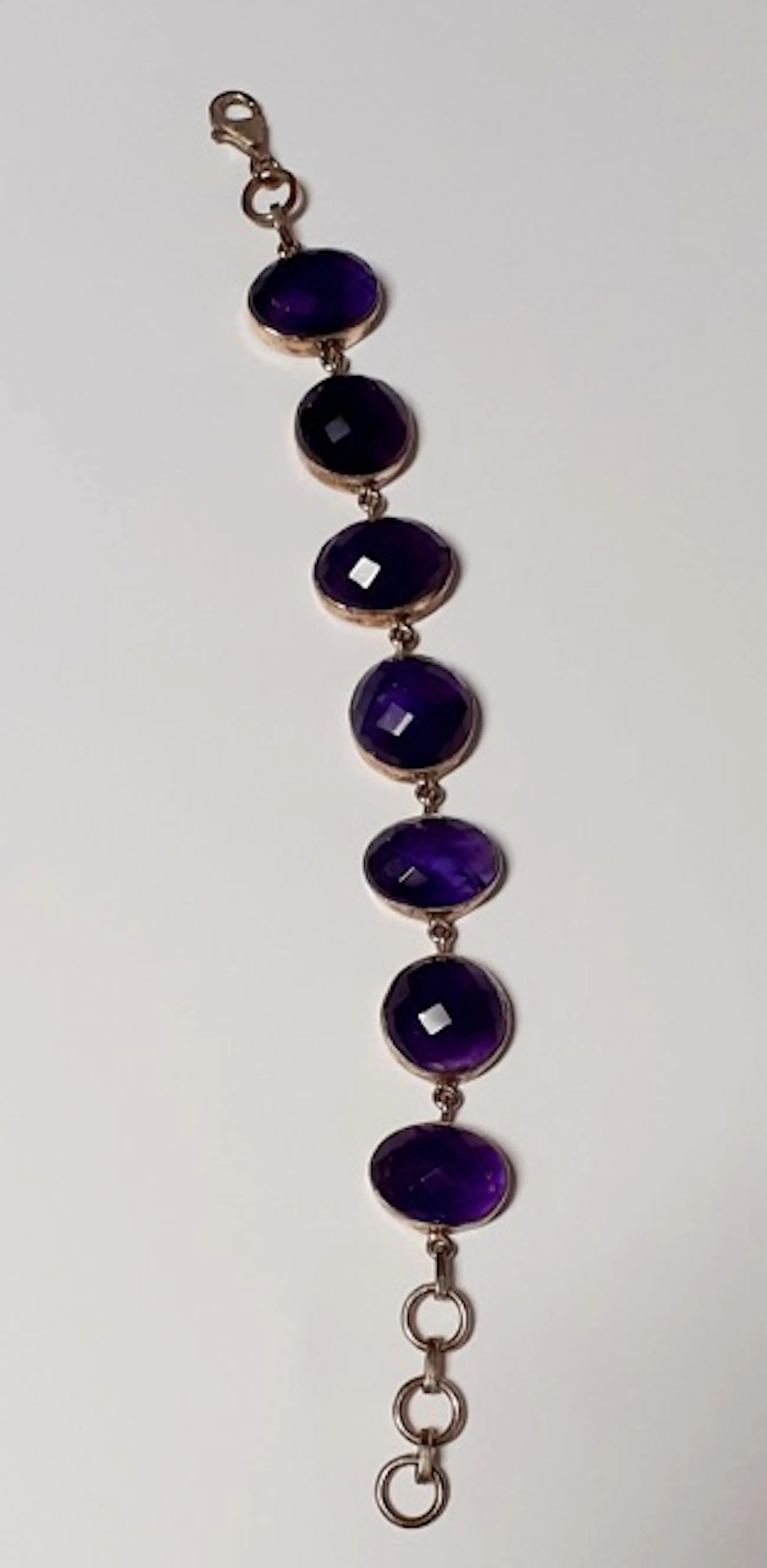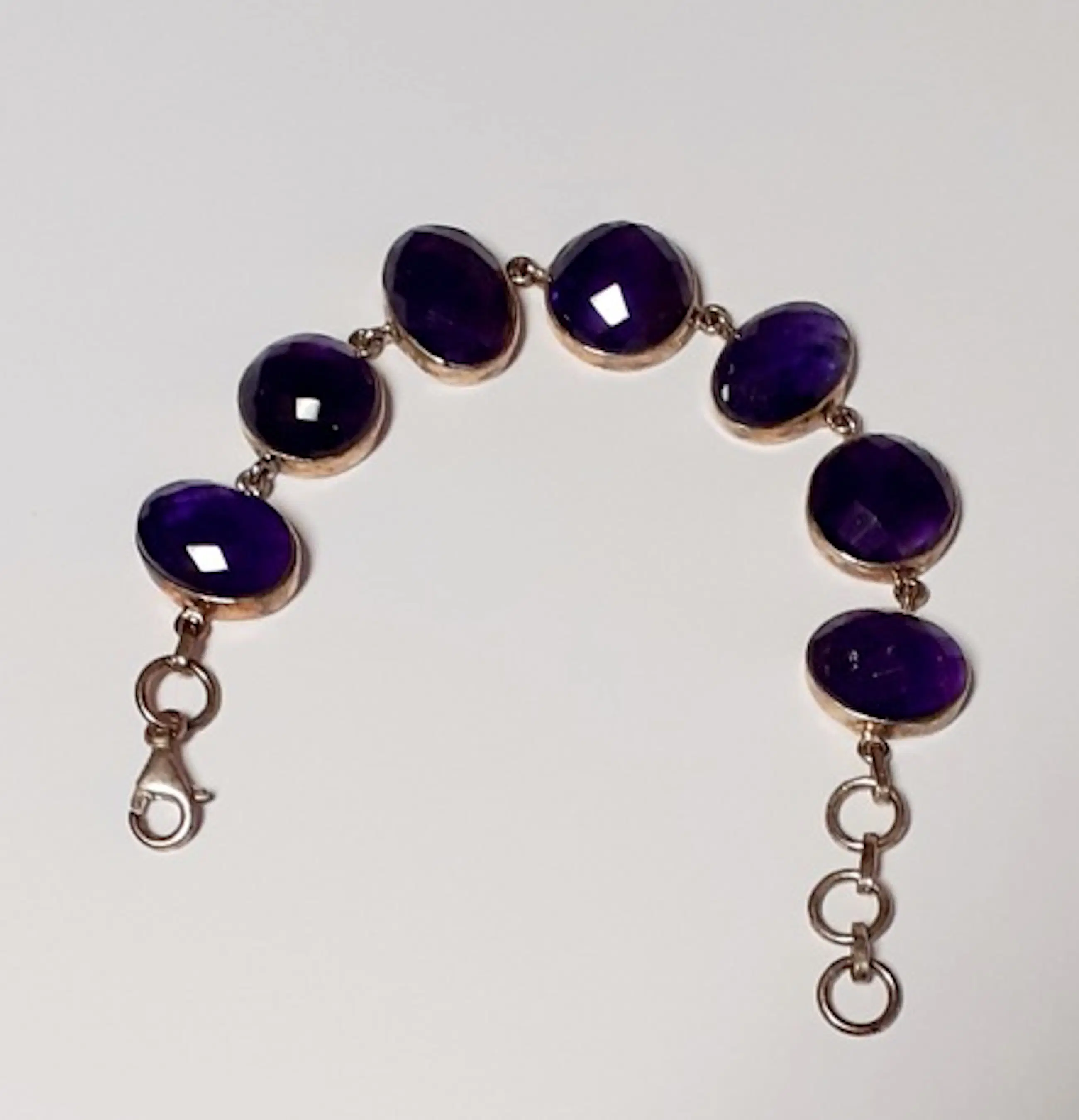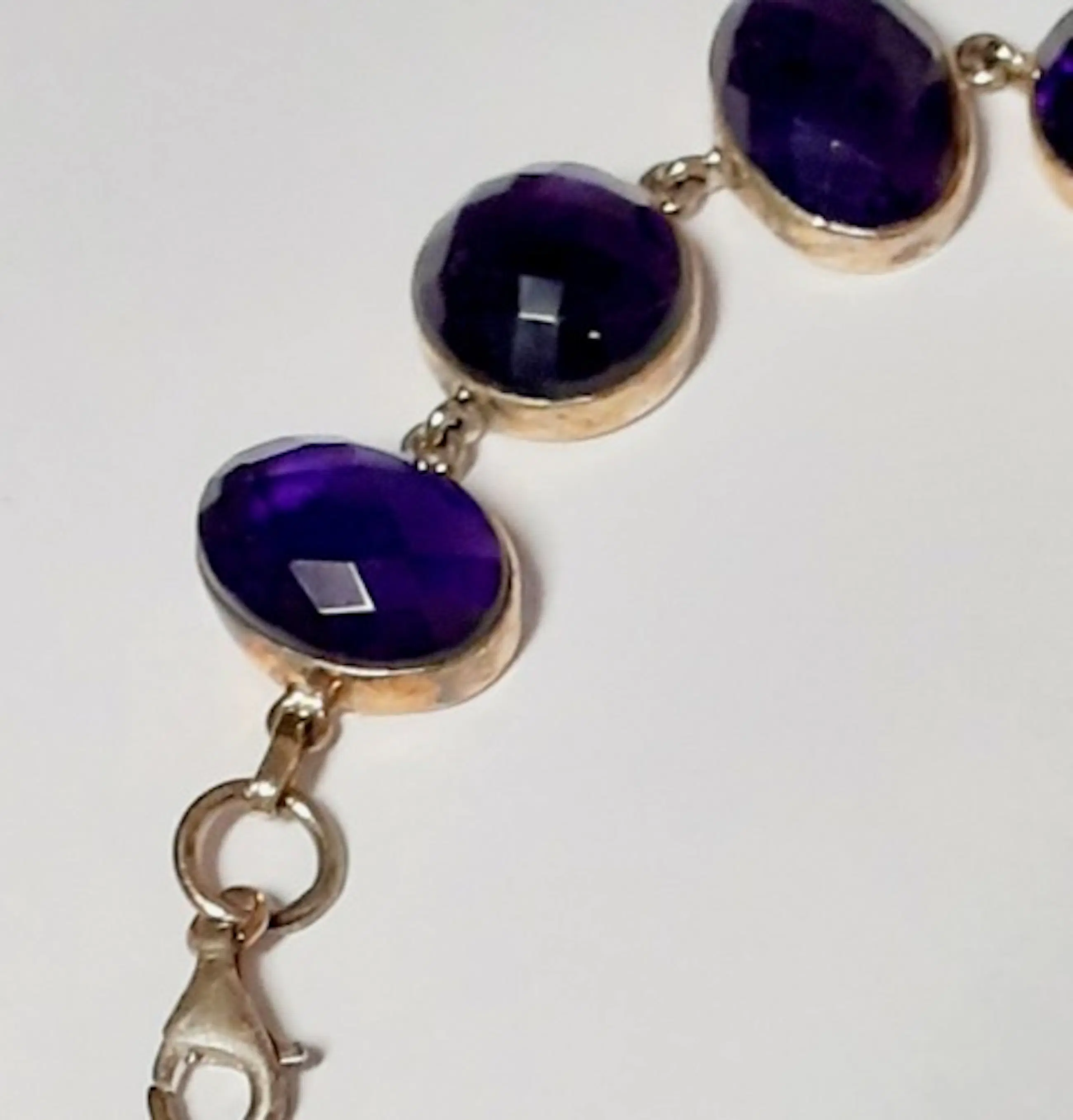 In nieuwstaat .Zilveren armband bezet met natuurlijke ovale facetgeslepen amethyst