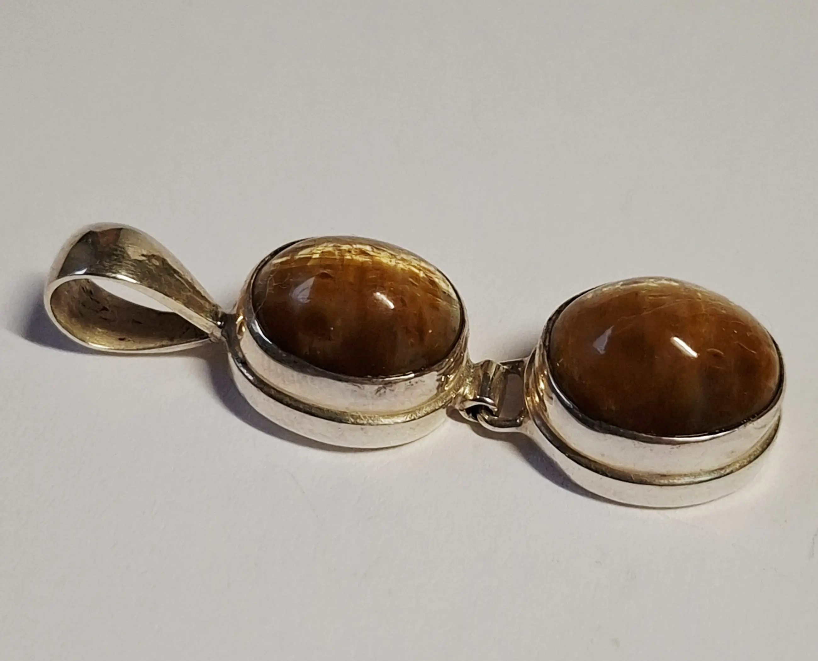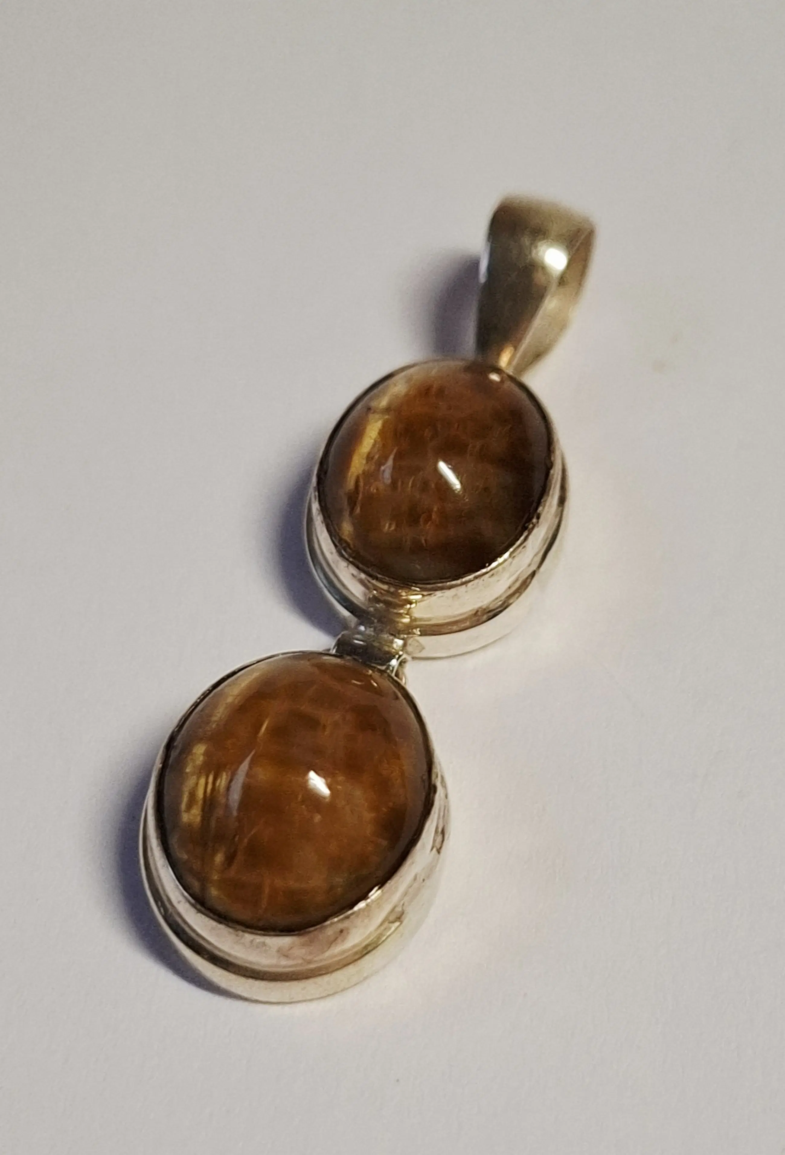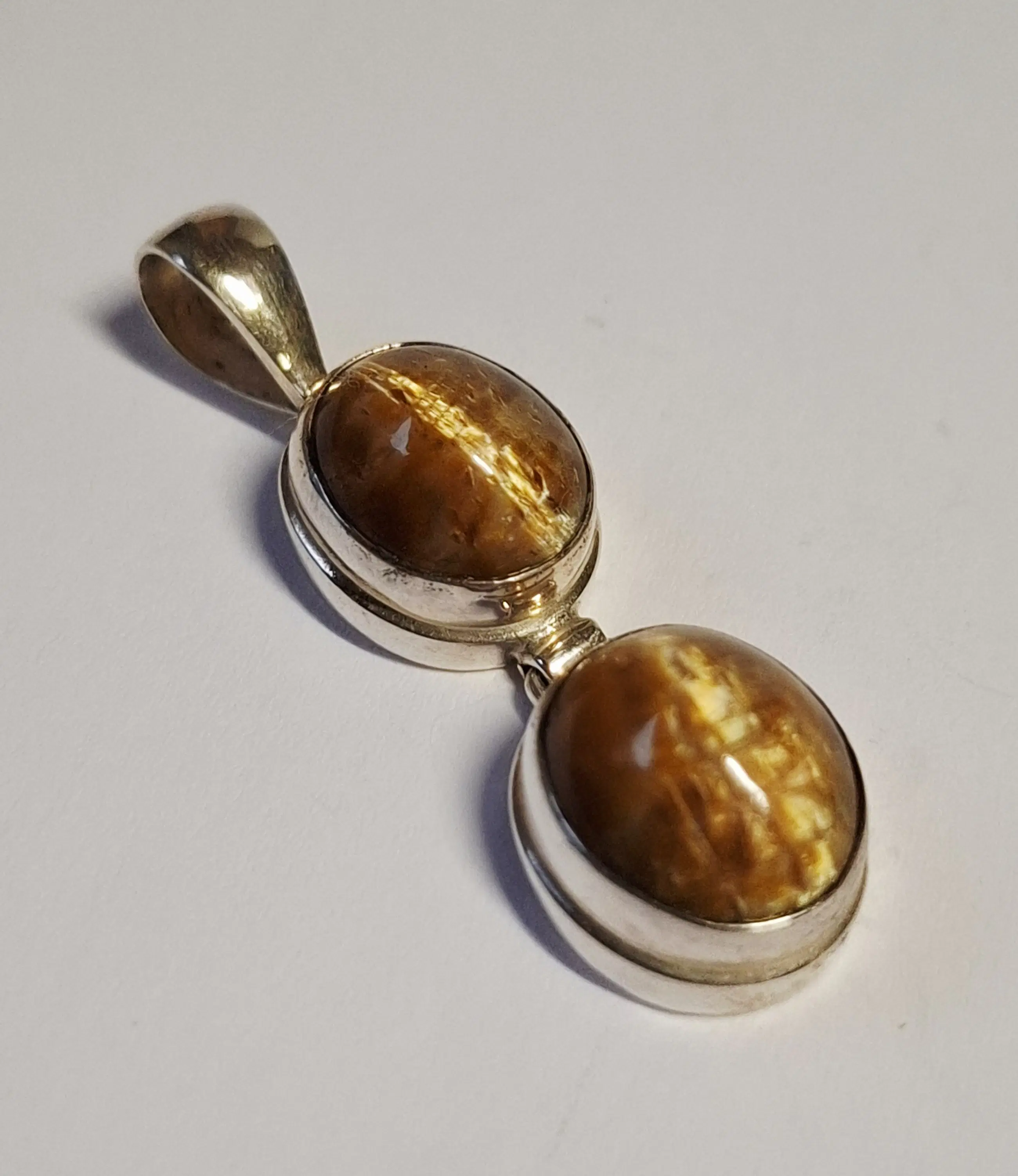 Nieuwe handgemaakte en fijn bewerkte langwerpige zilveren hanger met een mooie tijgerogen . Het zilvergehalte is 925.