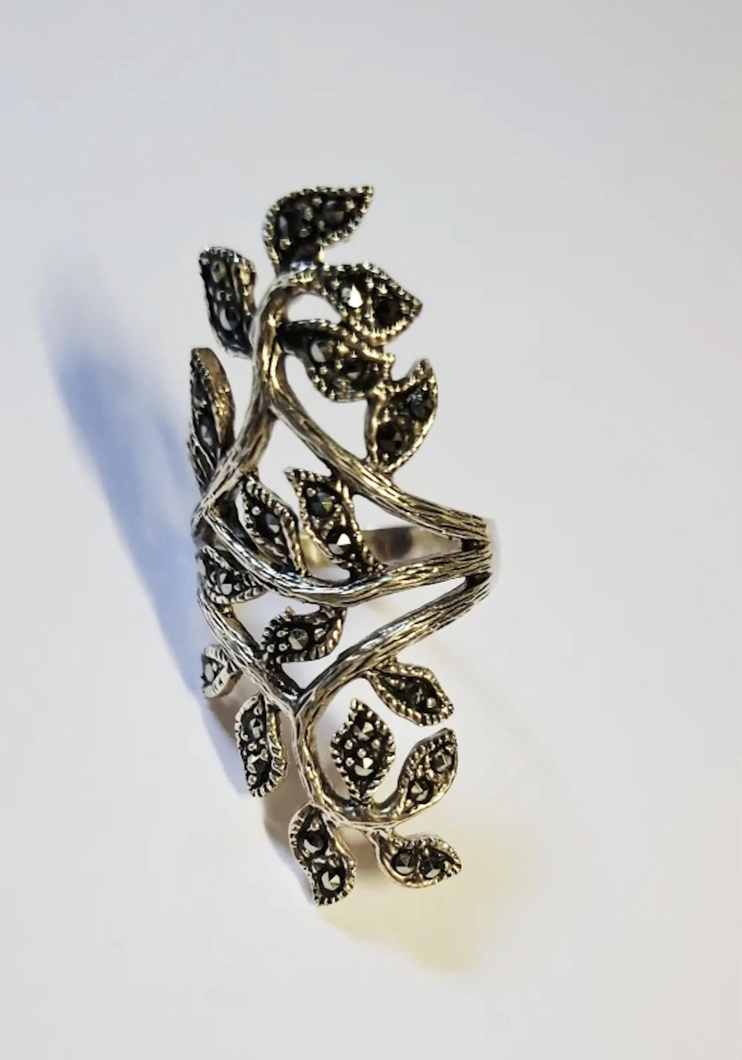 nieuwe Vintage ring omgeven door Zwitsers geslepen fijne Marcasiet