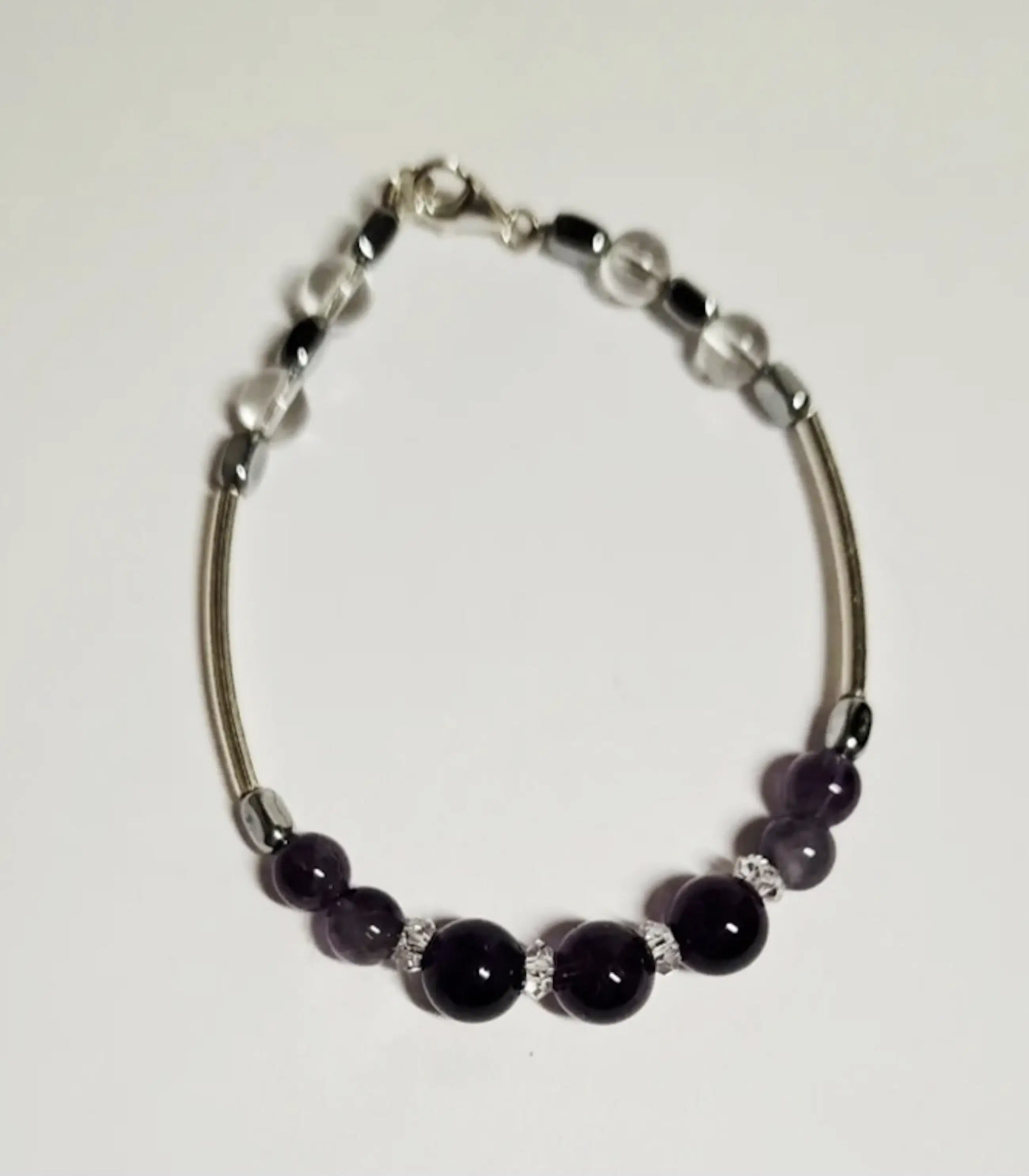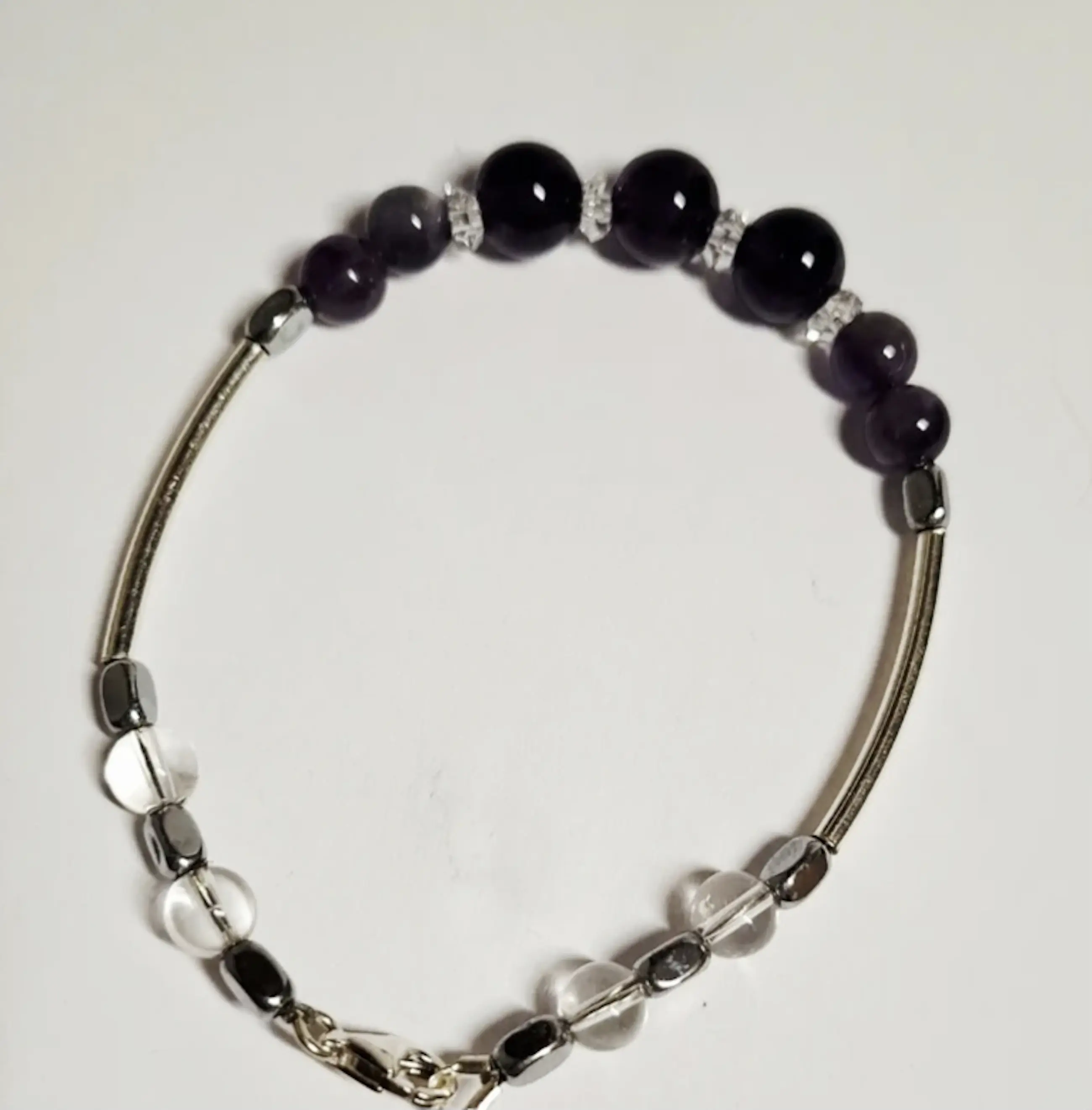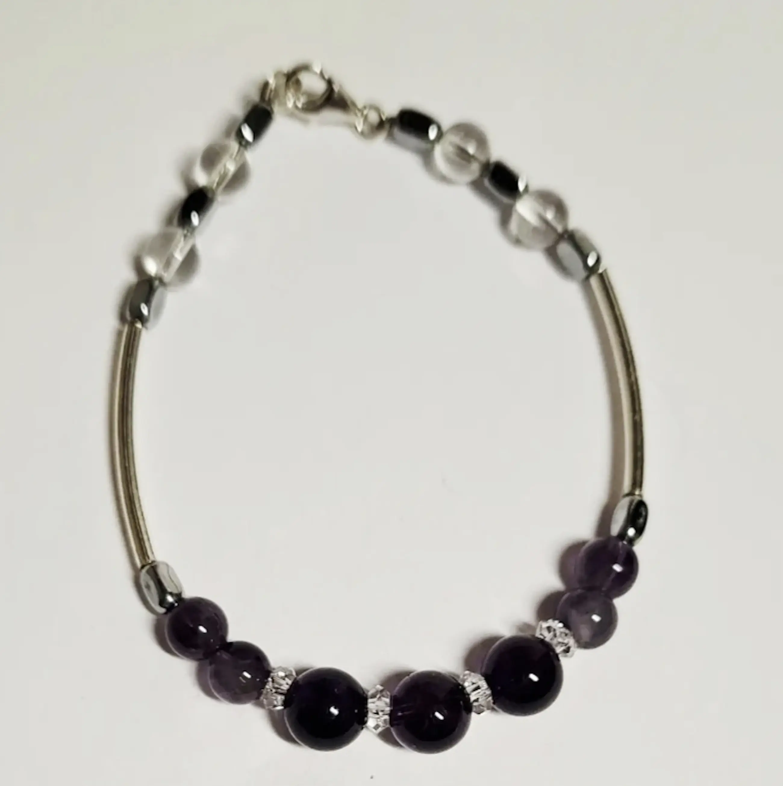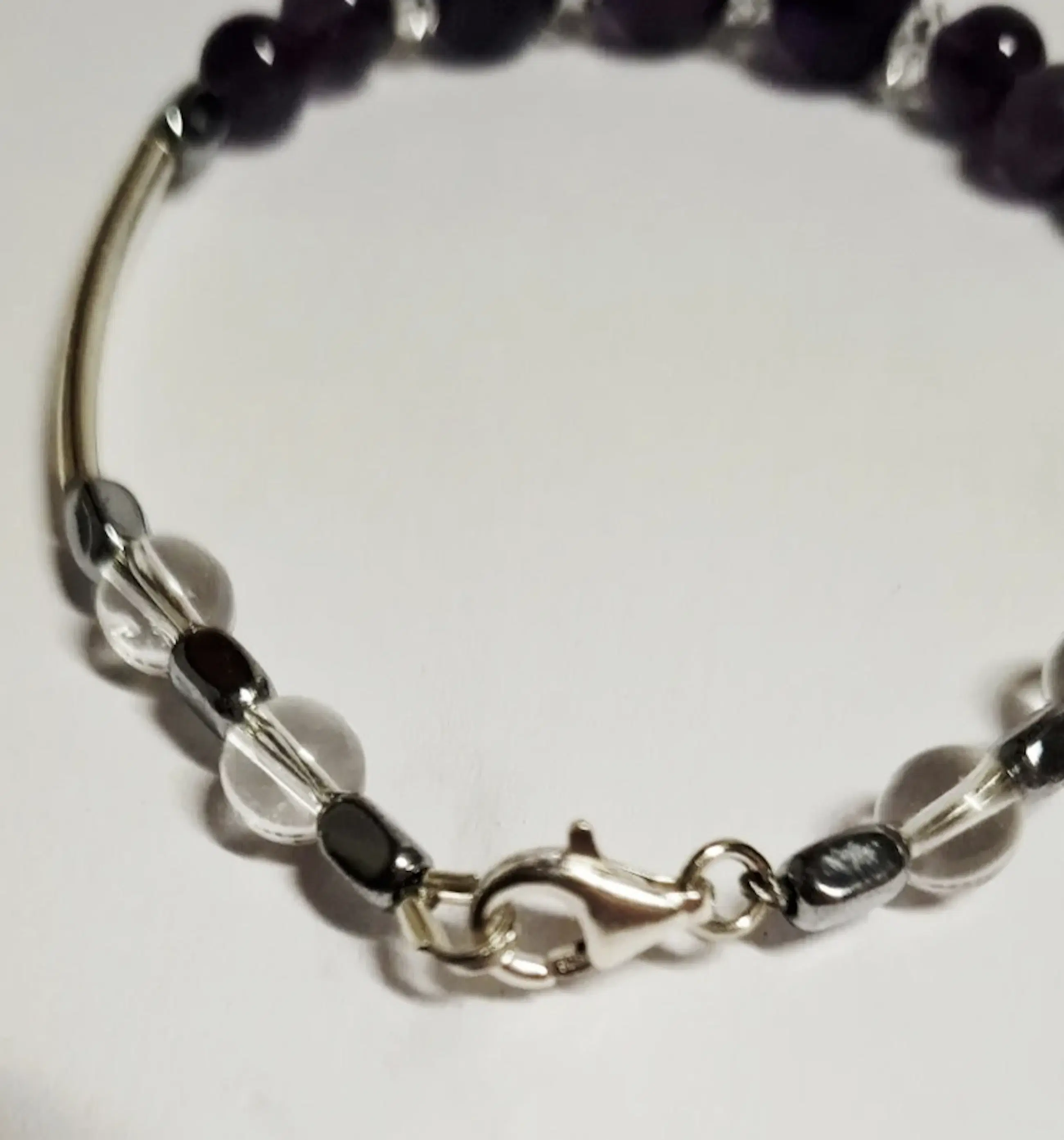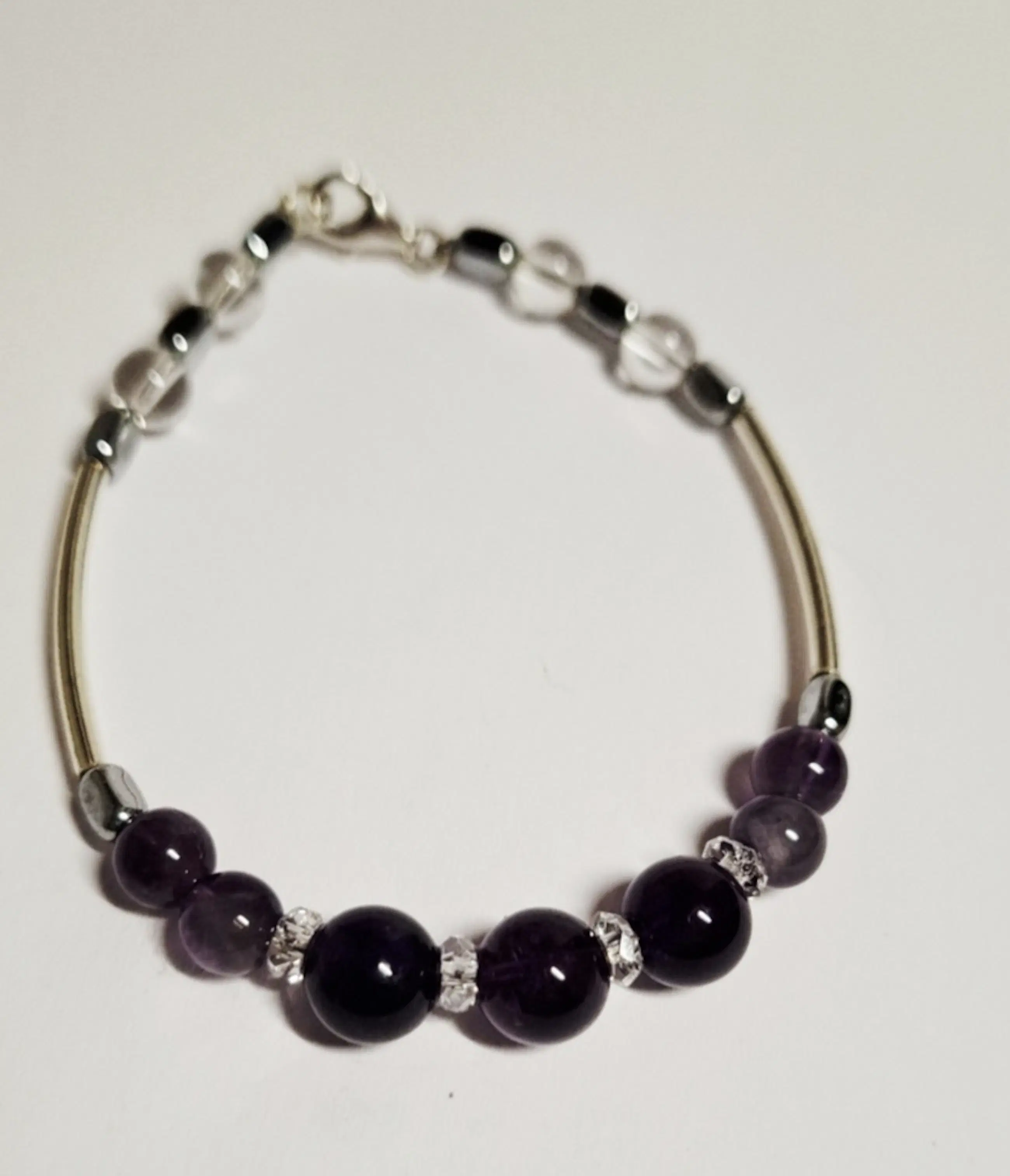 Nieuwe zilveren armband met Amethist edelsteen en bergkristal Tel je zegeningen Amethist edelsteen armband 11 mm bergkristal 10 mm