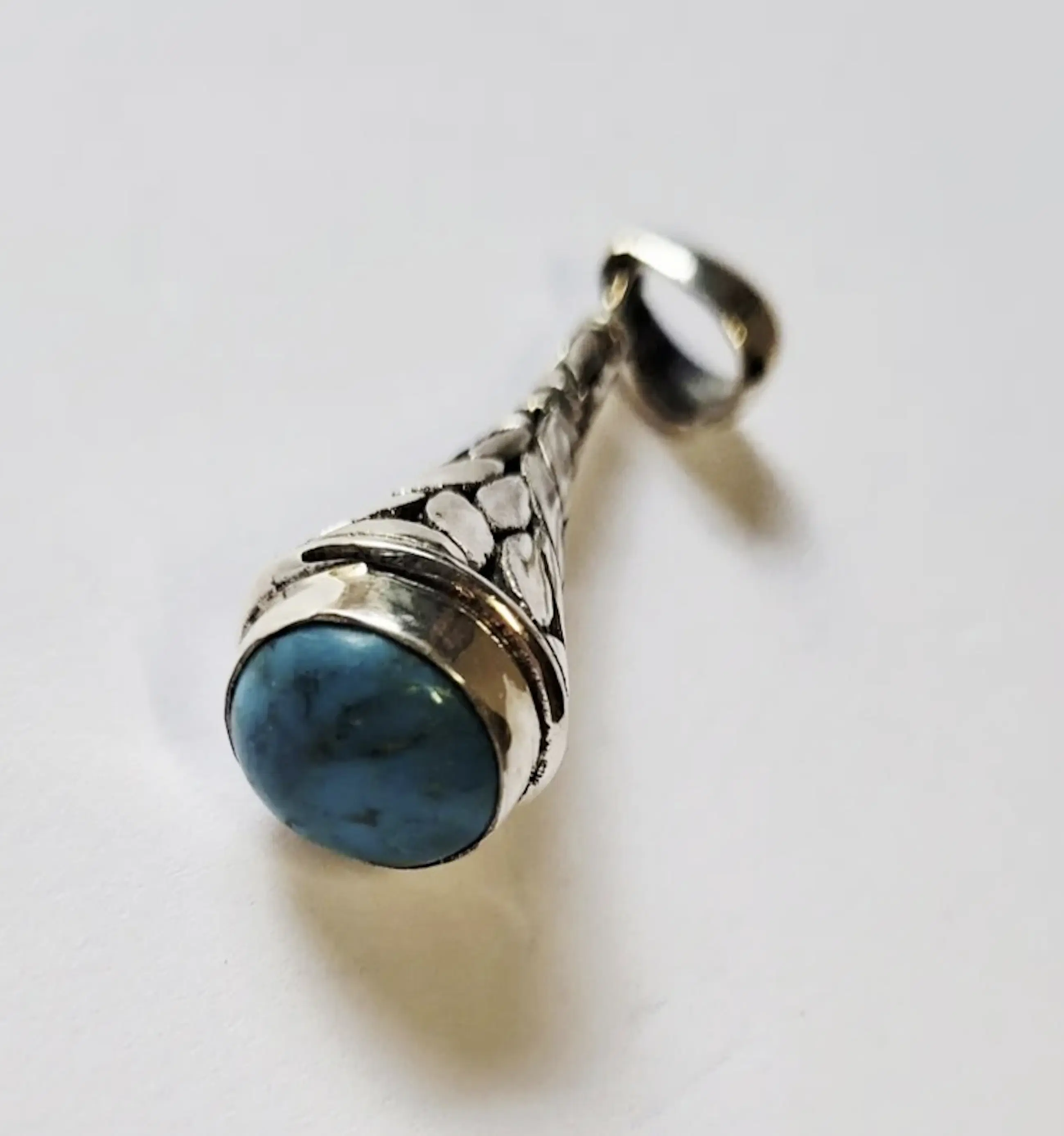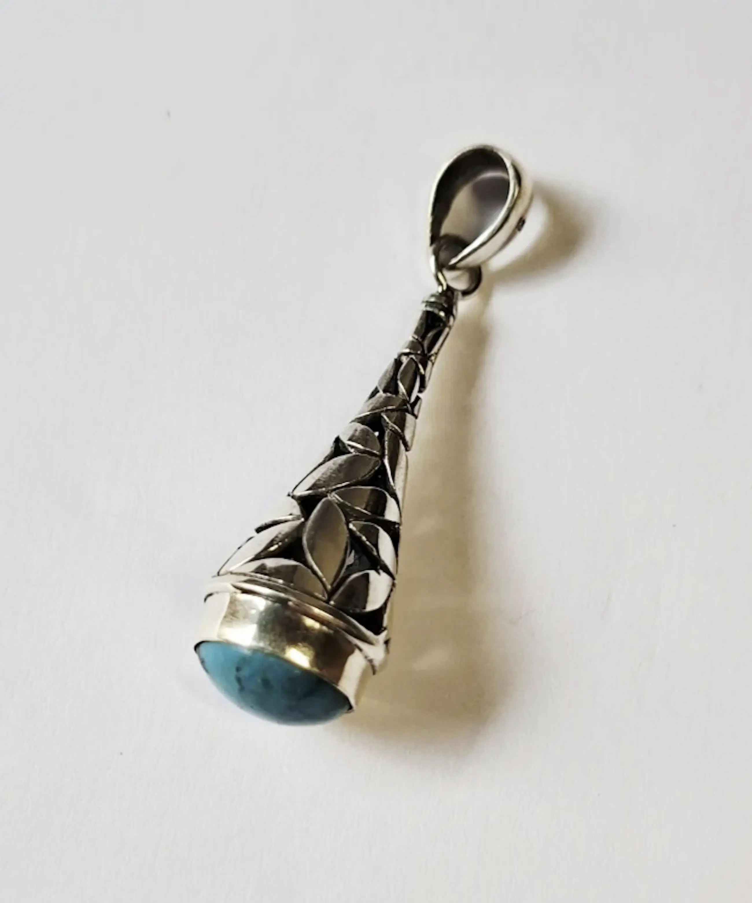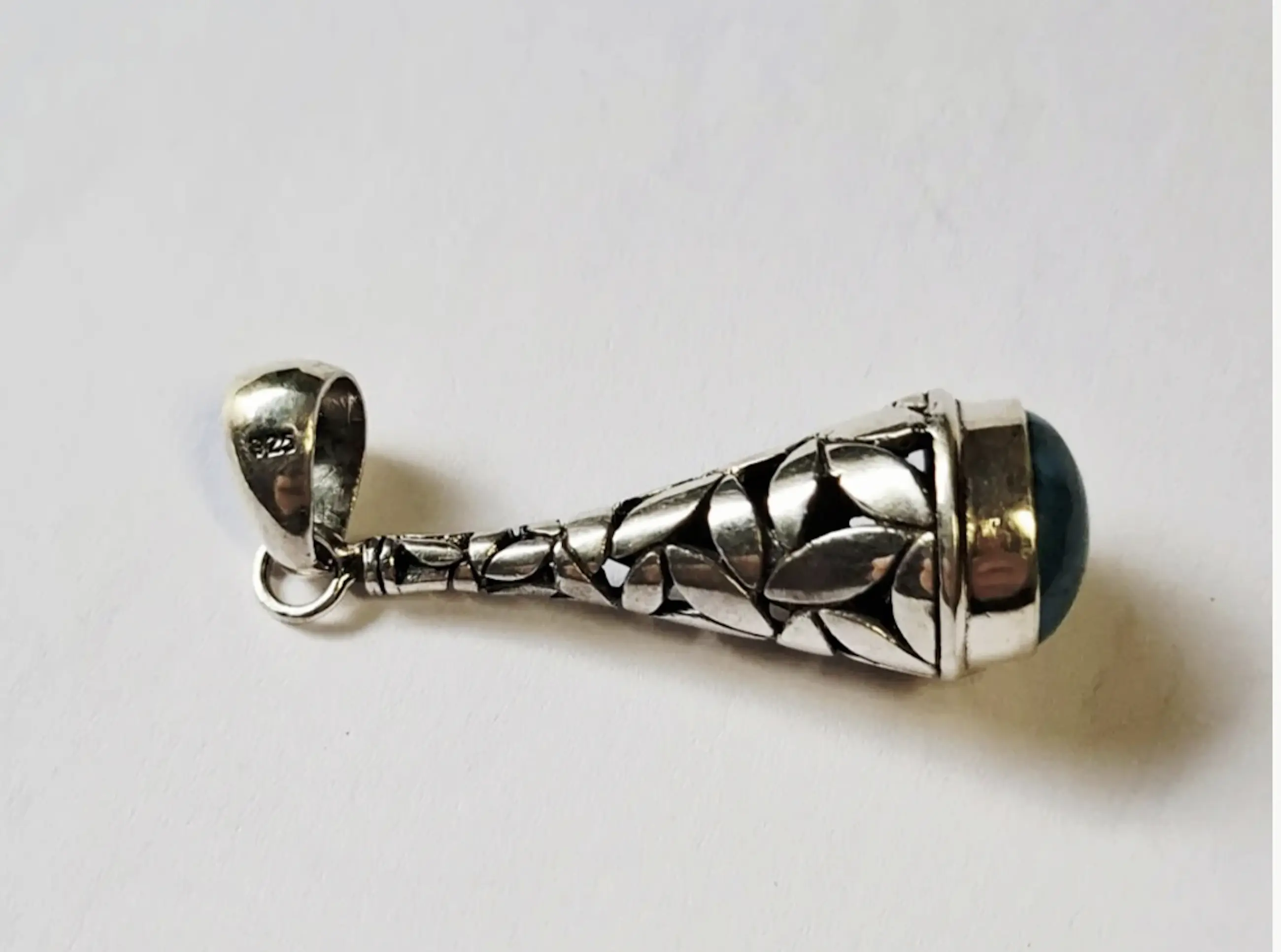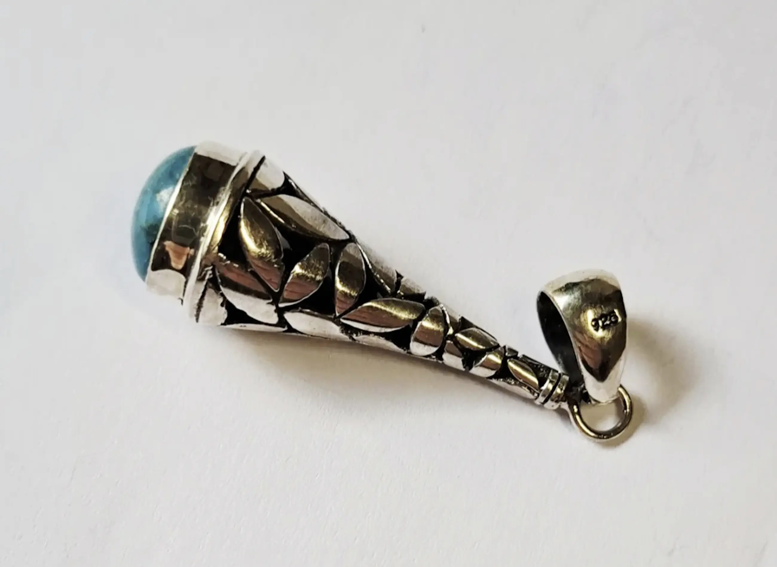 Nieuwe zilveren Byzantijnse Bungel hanger, met Turquoise een totale lengte van 6 cm weegt 7,90 gram mooie open bewerkte druppel kast de Oorbellen zijn ingewikkeld geweven Drop Hanger.