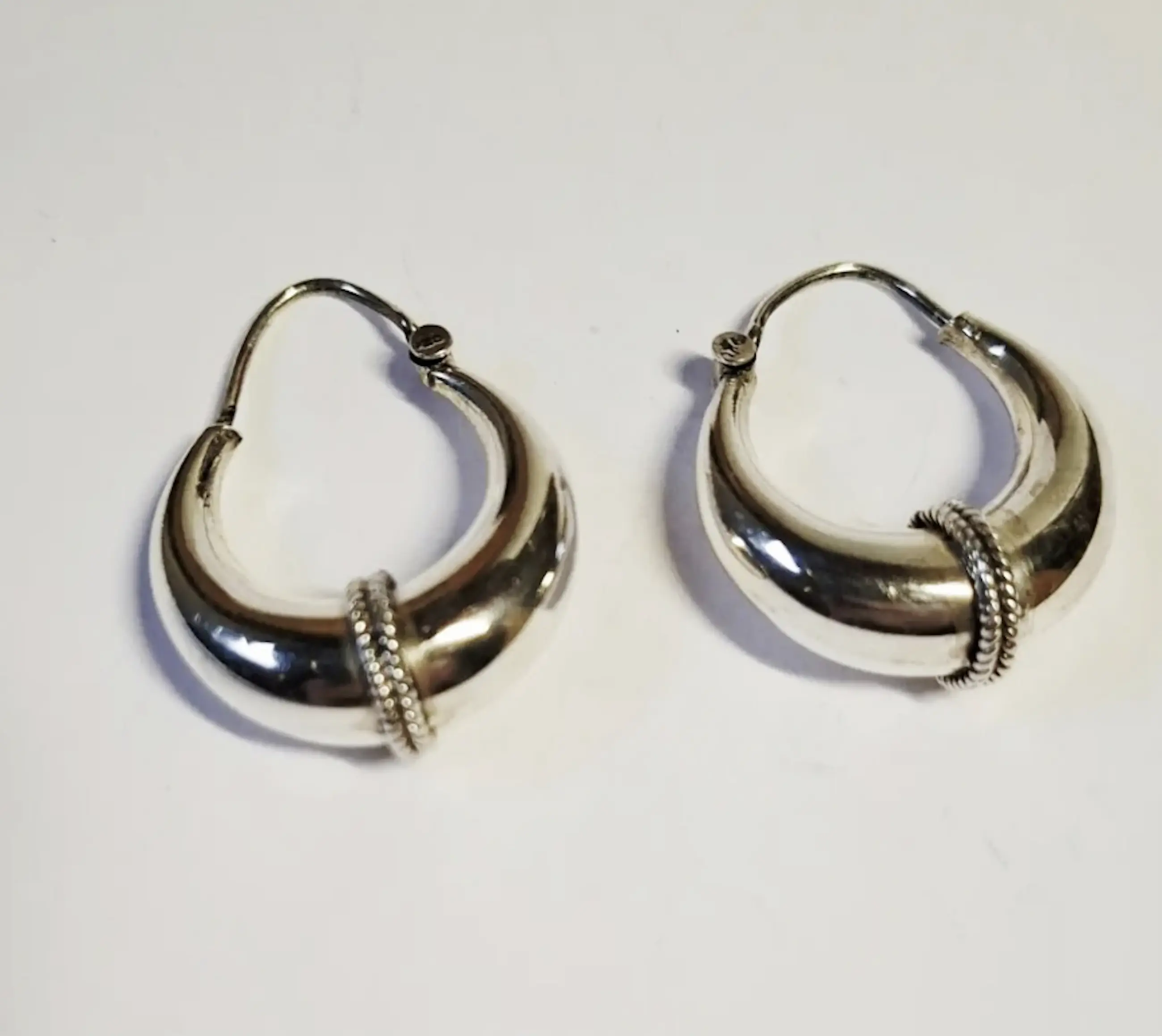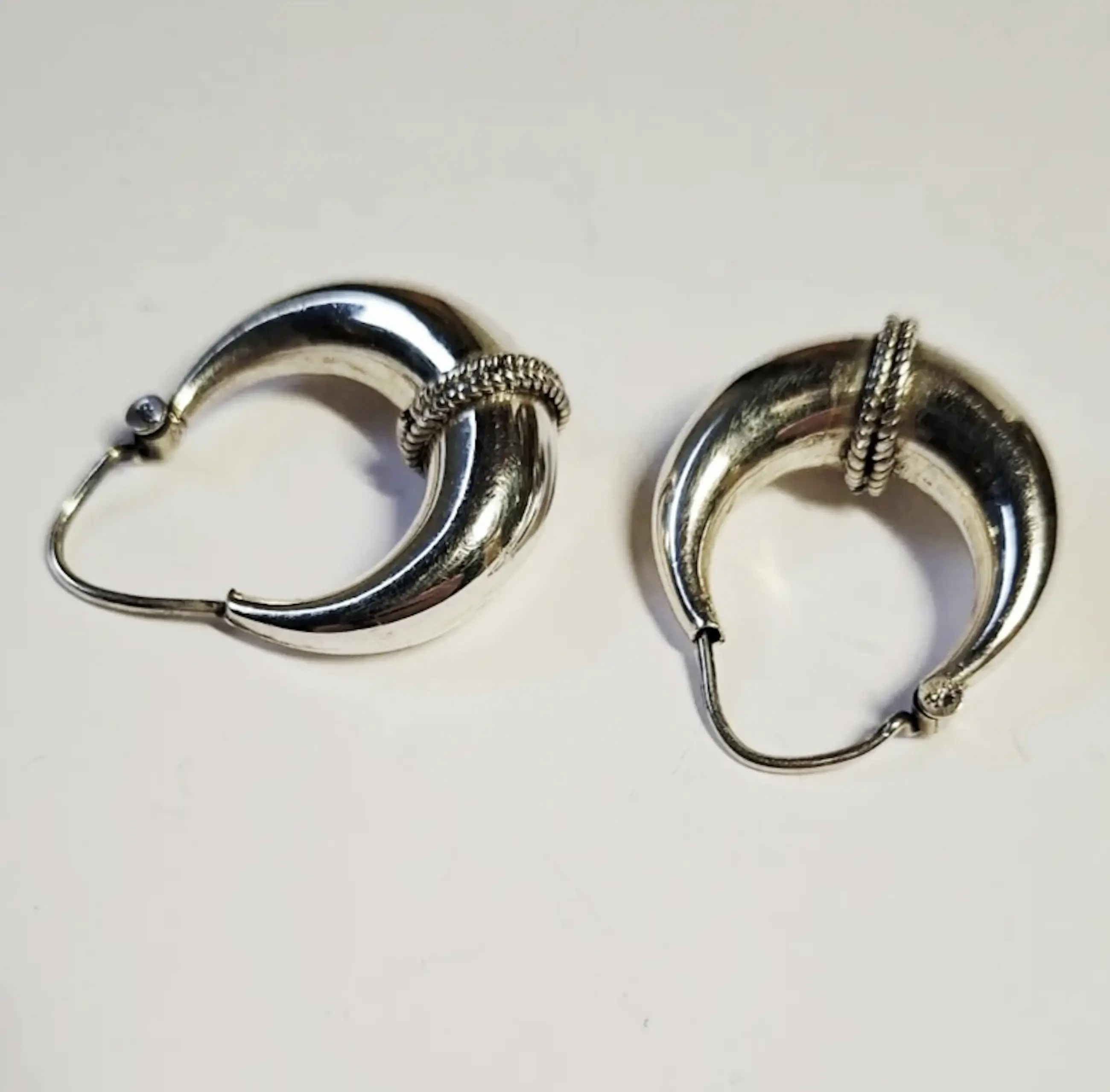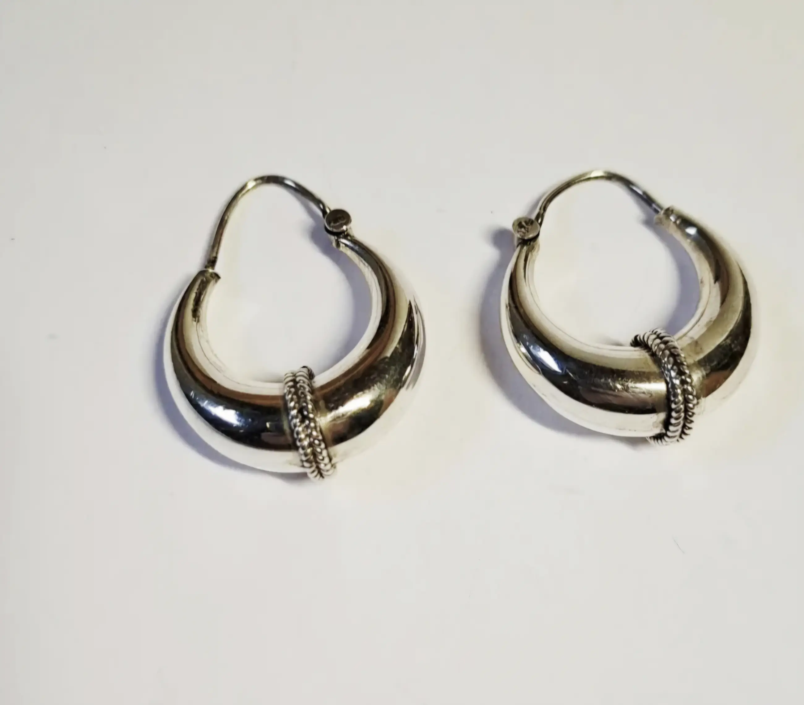 925 sterling zilveren handgemaakte vintage etnische stijl hoepels oorbellen kundal, etnische prachtige bali tribal buikdans sieraden uit india 1980