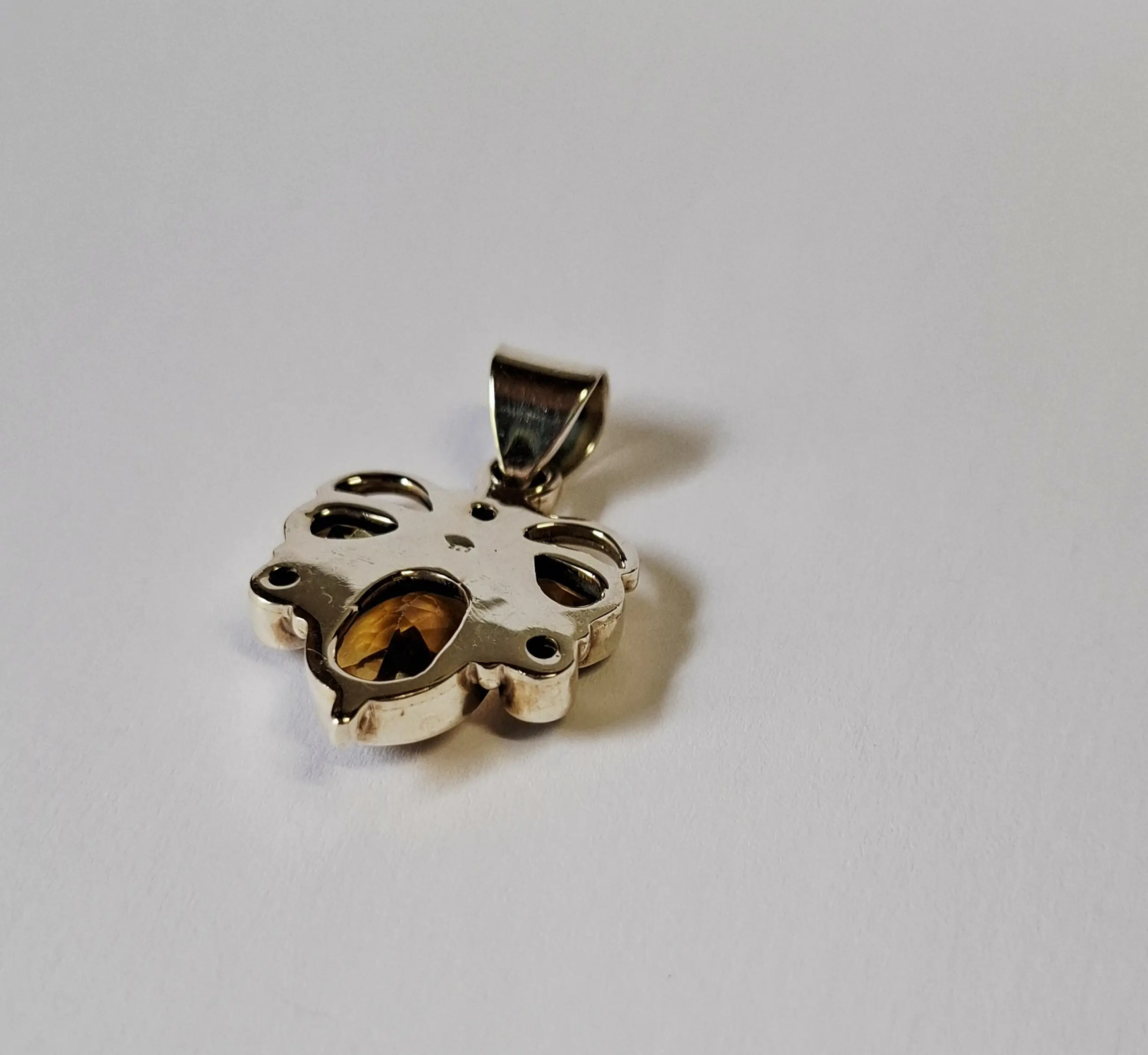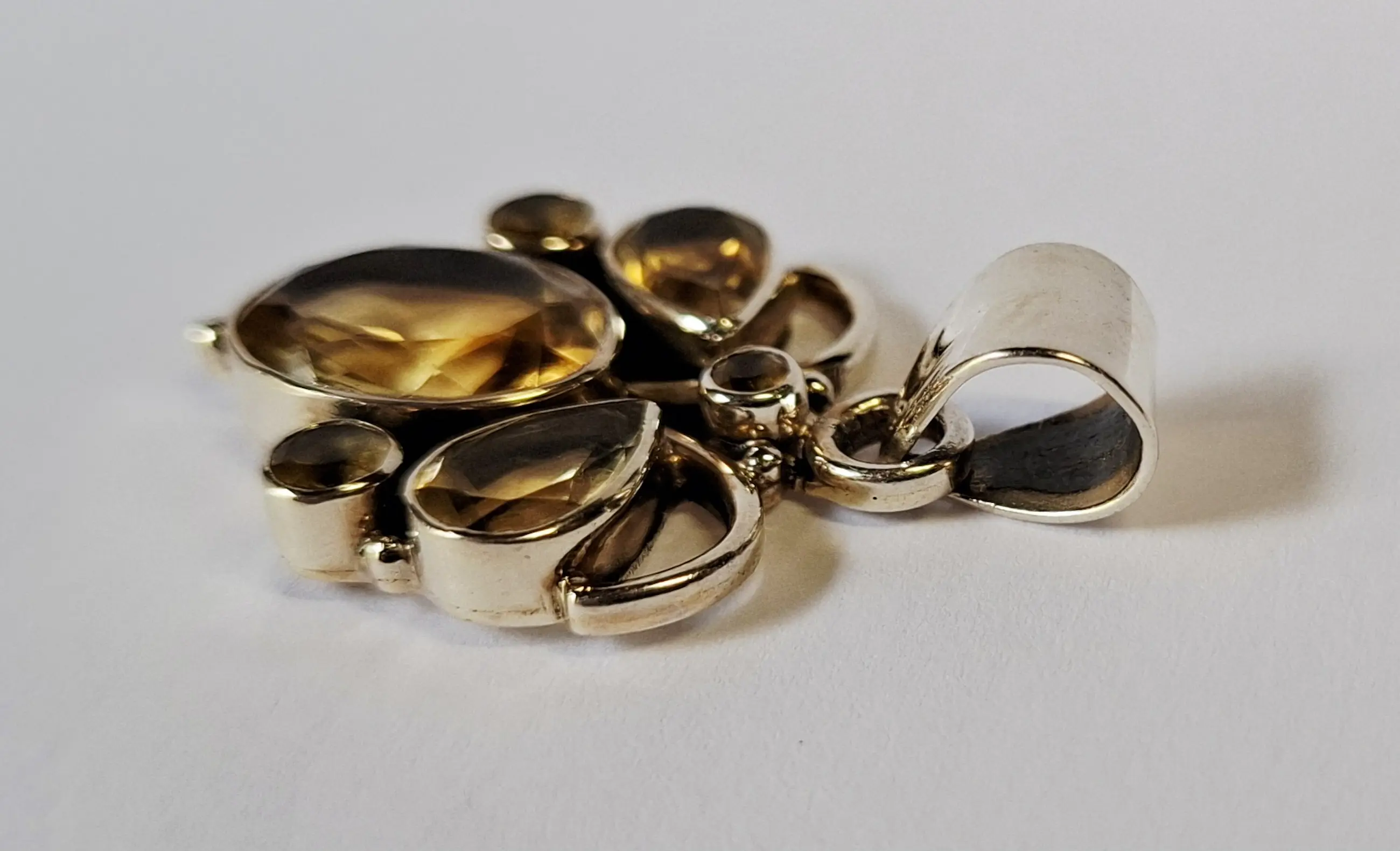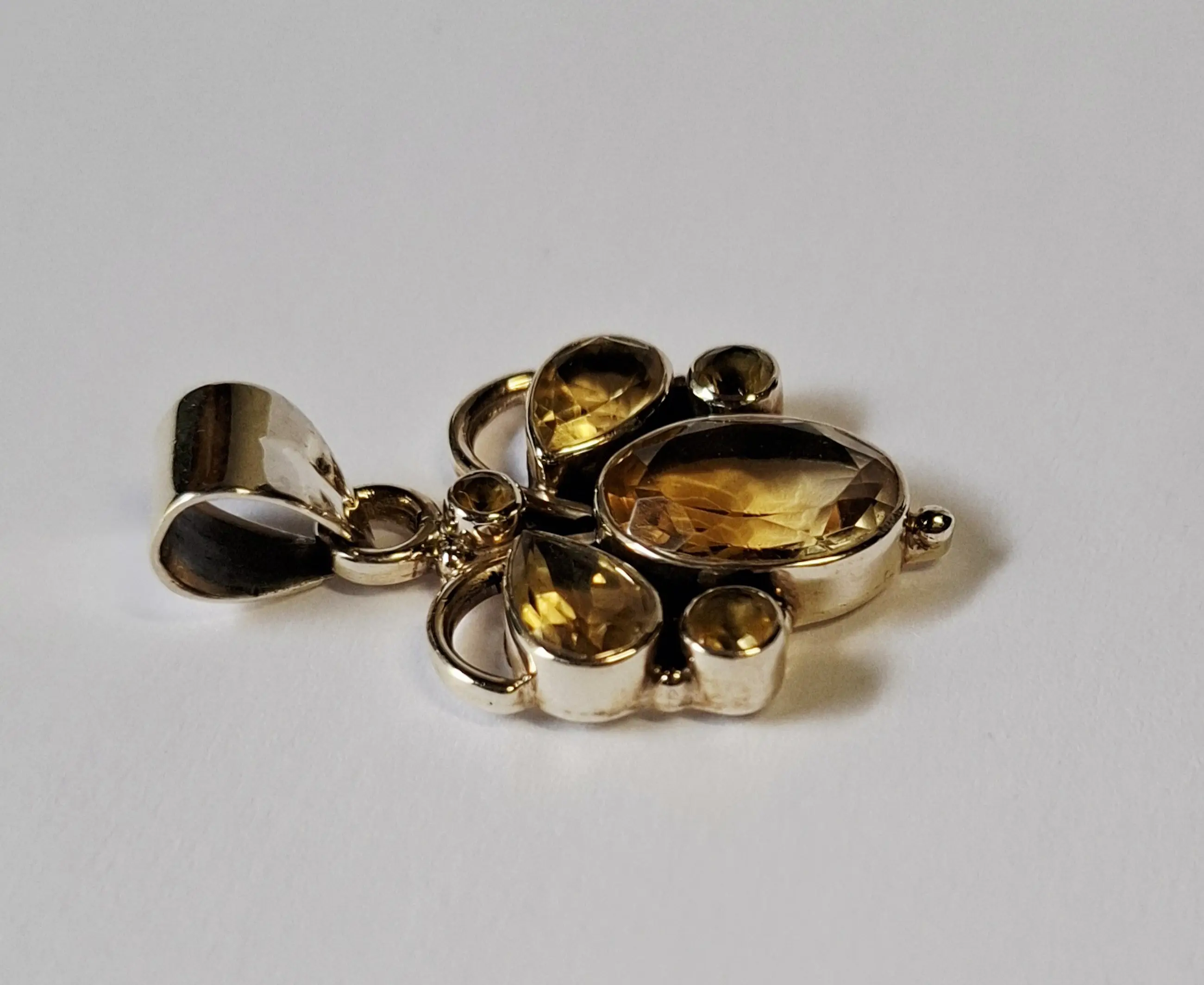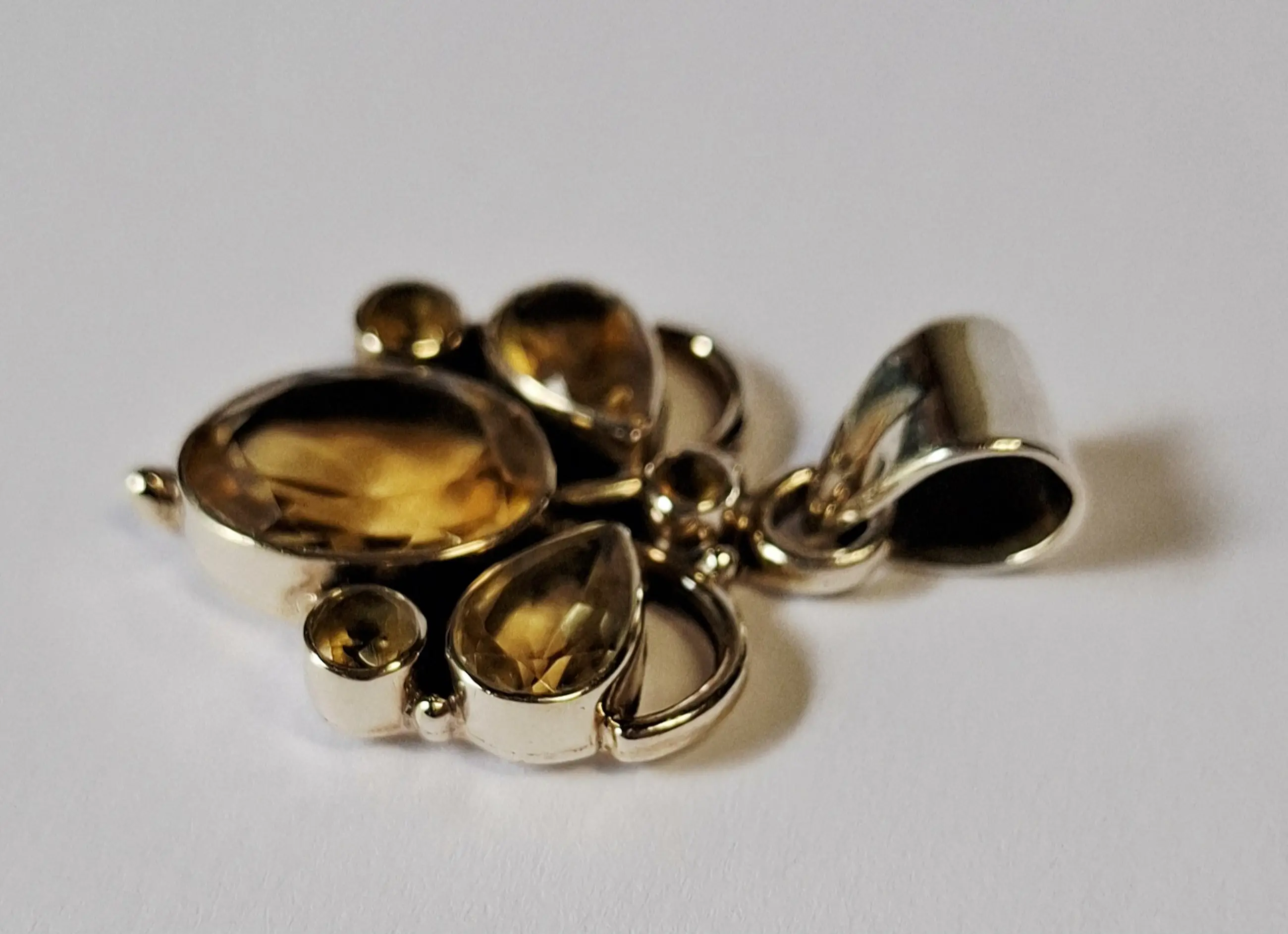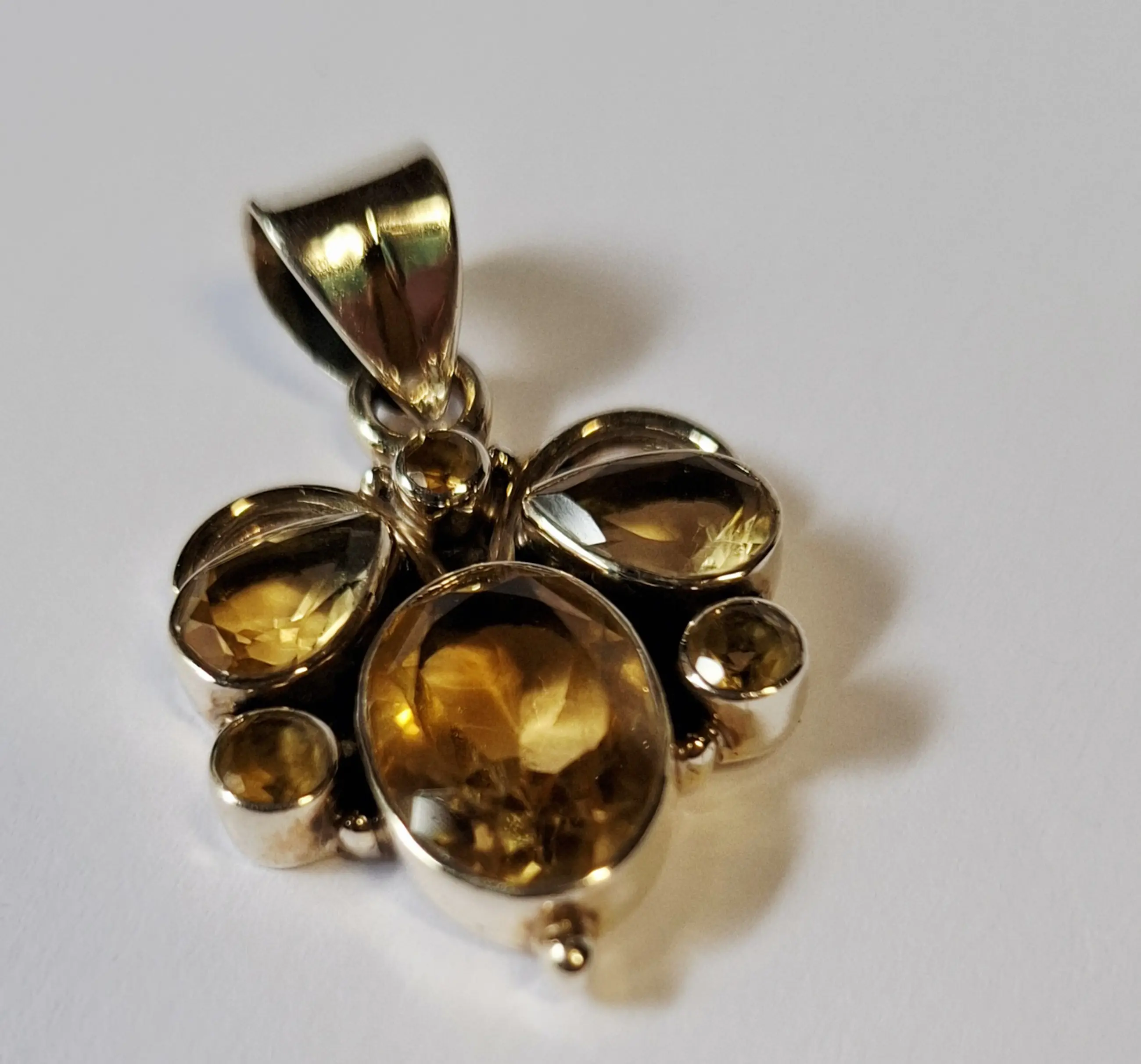 Nieuwe zilveren hanger met facet geslepen citrien: gele edelsteen,