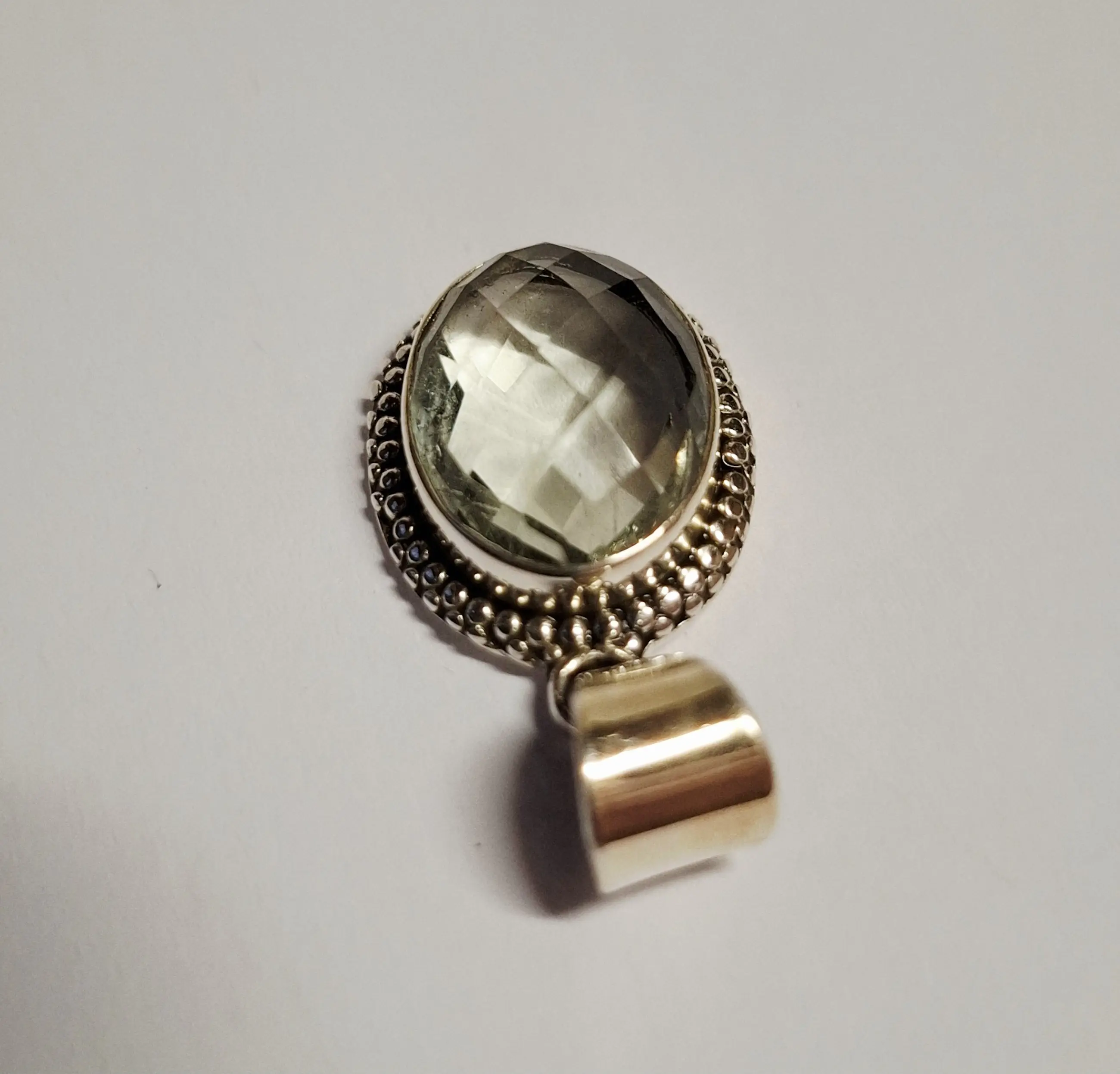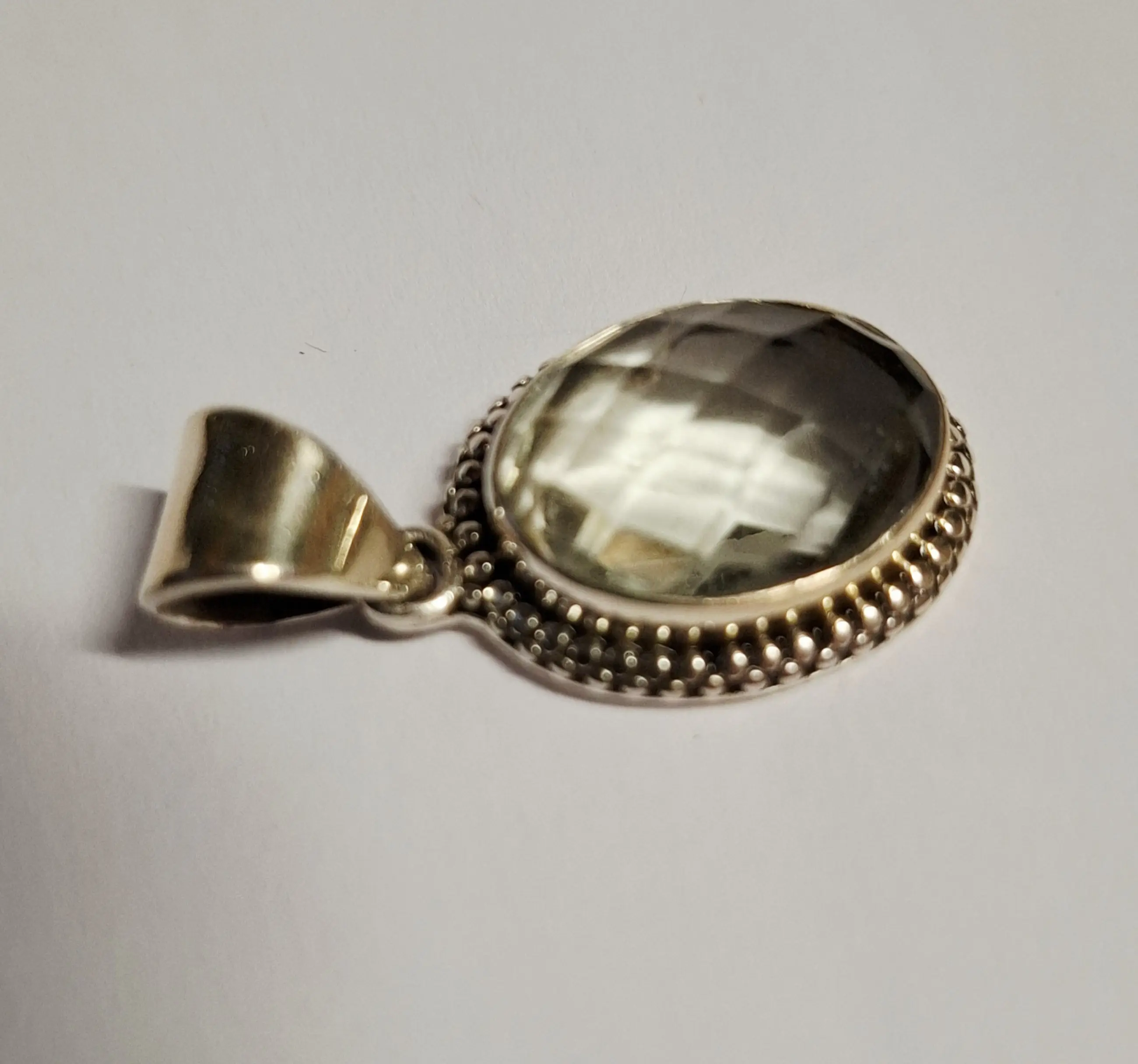 Zilveren nieuwe hanger met facetgeslepen Amethist zeldzaam . Ontdek elegantie met deze prachtige groene amethist hanger . Met een prachtige 13,71 karaat ovaal facetgeslepen edelsteen uit Brazilië, gezet in 925 sterling zilver, voegt dit stuk een vleugje verfijning toe aan elk ensemble. Perfect om savonds te dragen of voor een stijlvol dagje uit. Prachtig in combinatie met neutrale tinten of contrasterende kleuren voor een opvallende look. Verrijk je juwelencollectie met deze opvallende hanger . Deze hanger komt uit een prive Collectie nog nooit gedragen heeft altijd in een vitrine kastje gelegen eigenlijk is het nog nieuw voor een hanger uit 1995 de hanger word goed verpakt en verzekerd verzonden met track en trace .