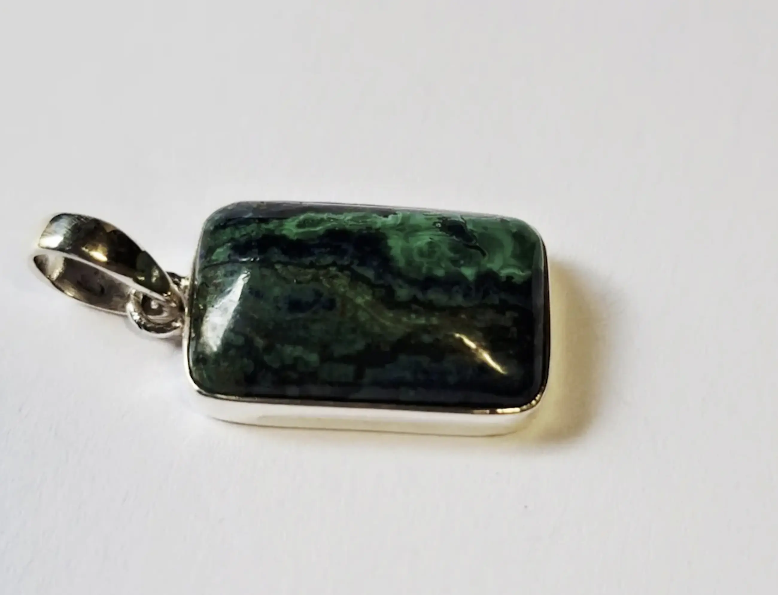 Nieuwe zilveren Natuurlijke en mooie Malachiet Azurite hanger.