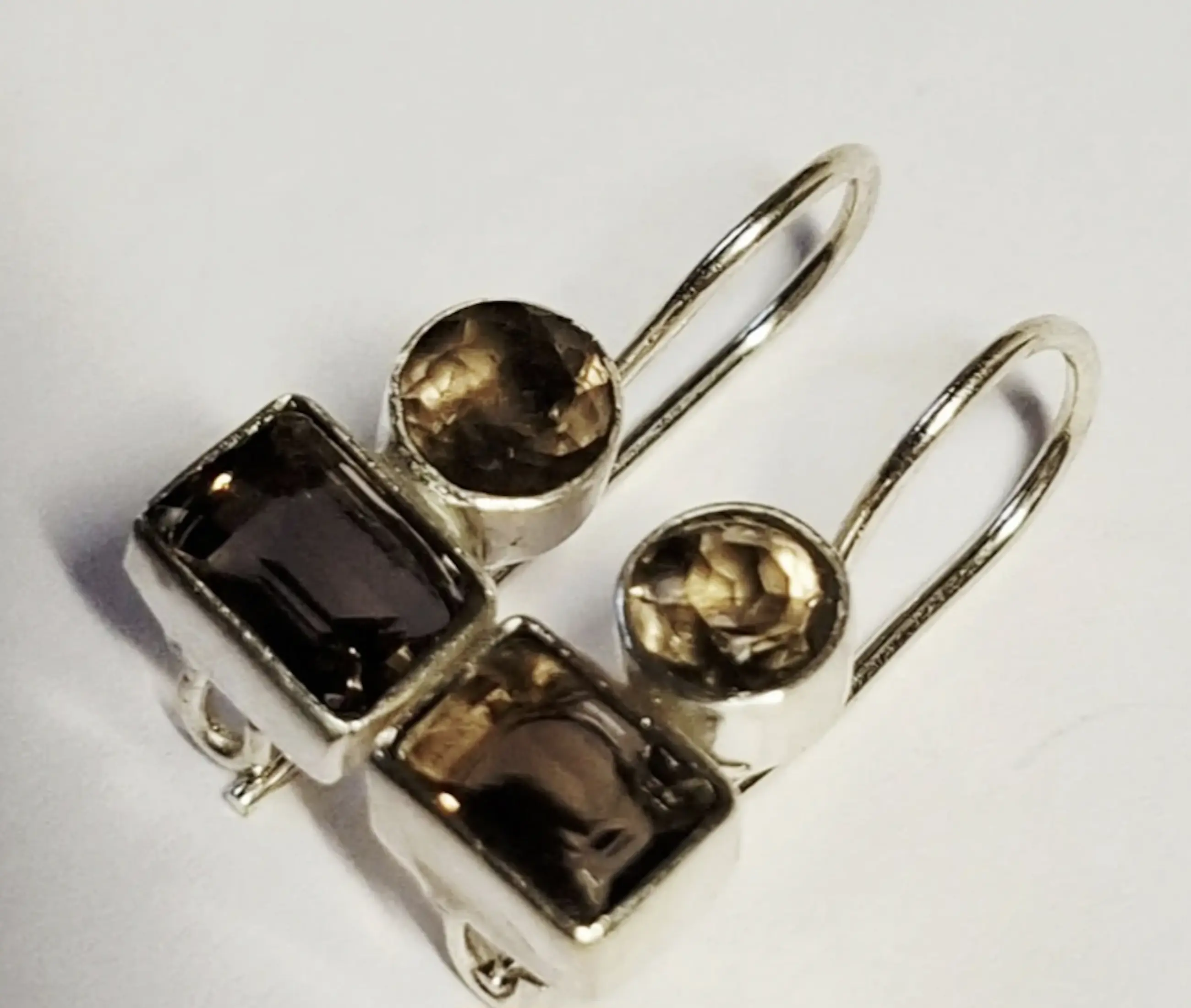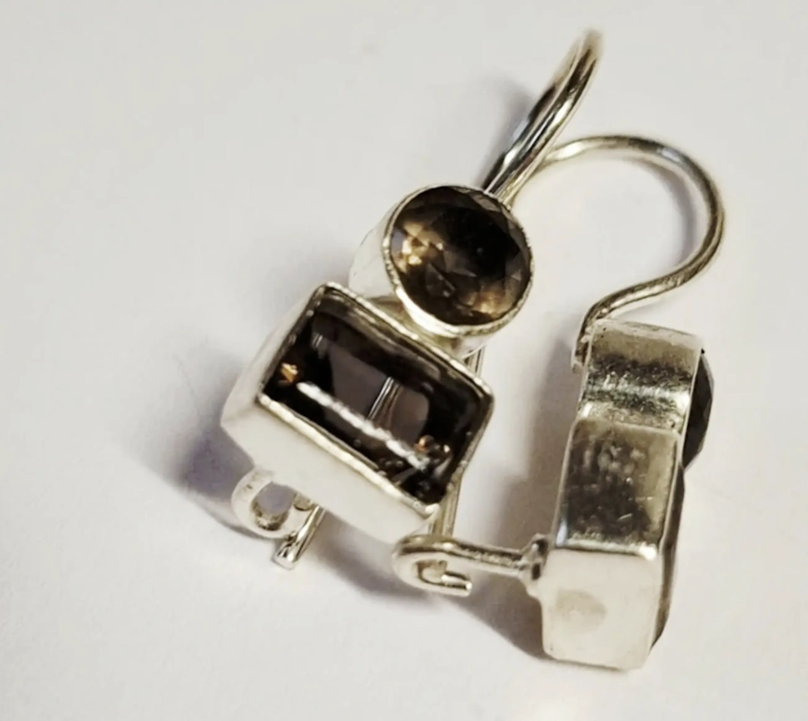 Nieuwe zilveren Oorbellen met ge facet geslepen rookkwarts: