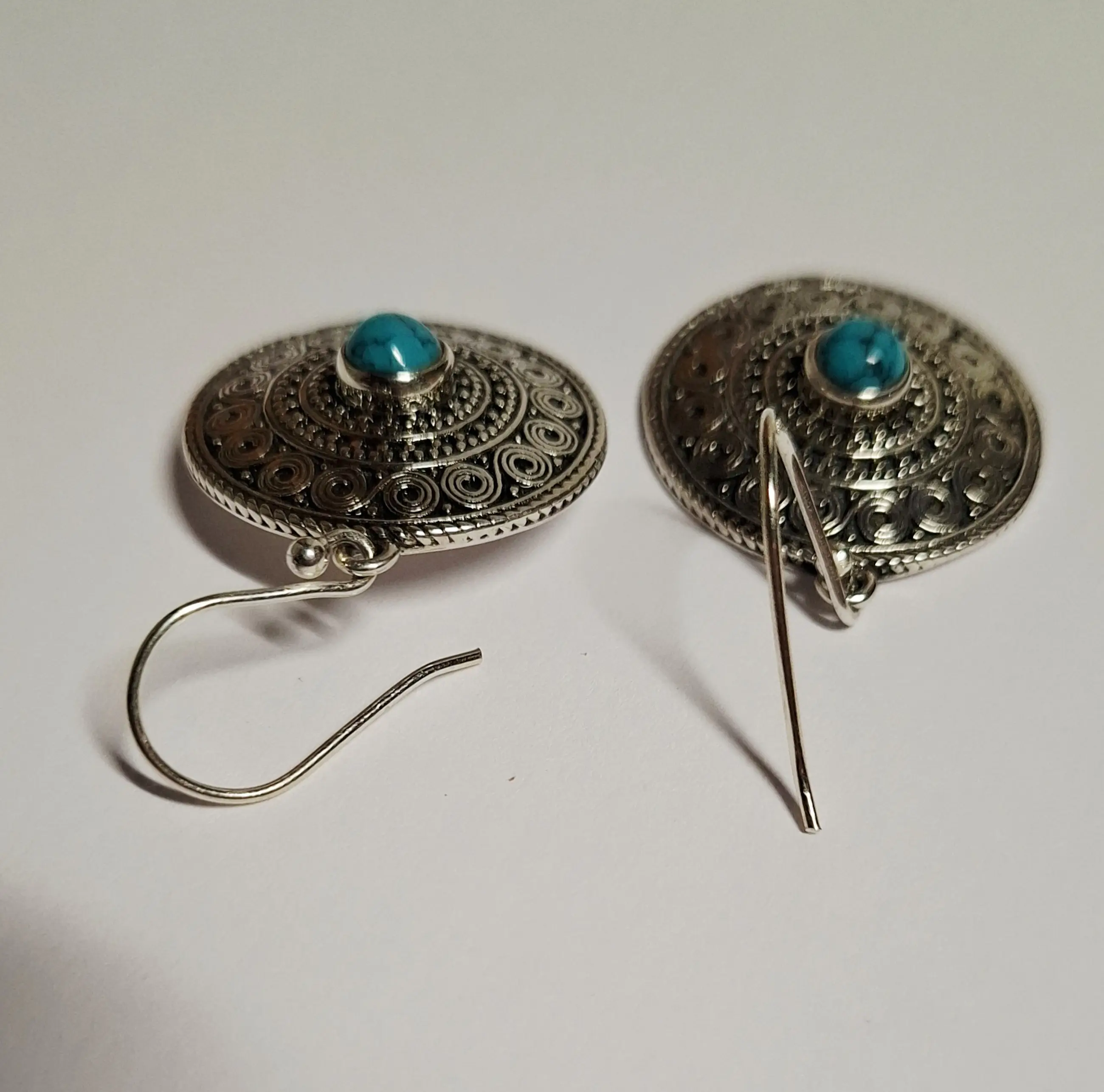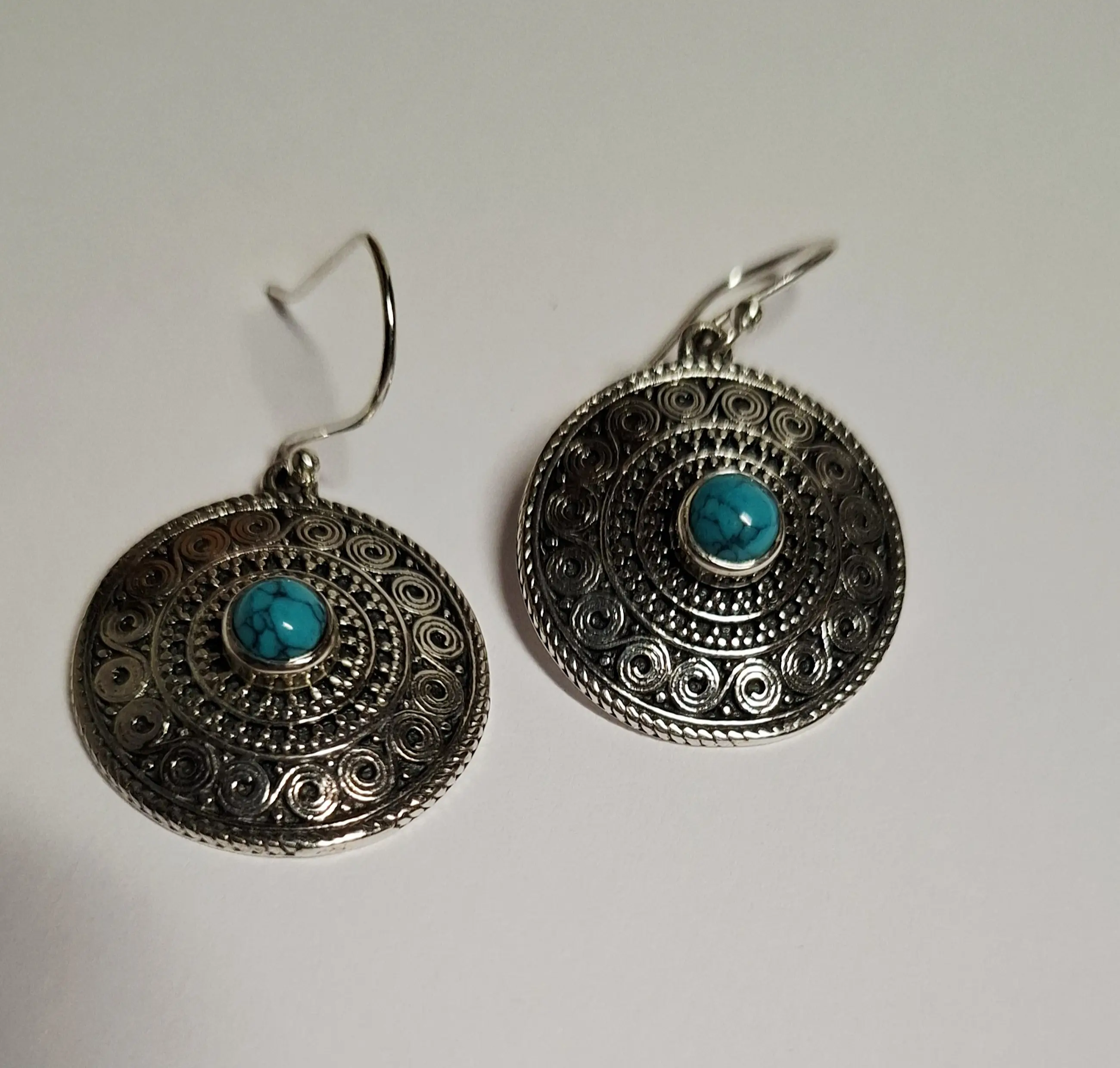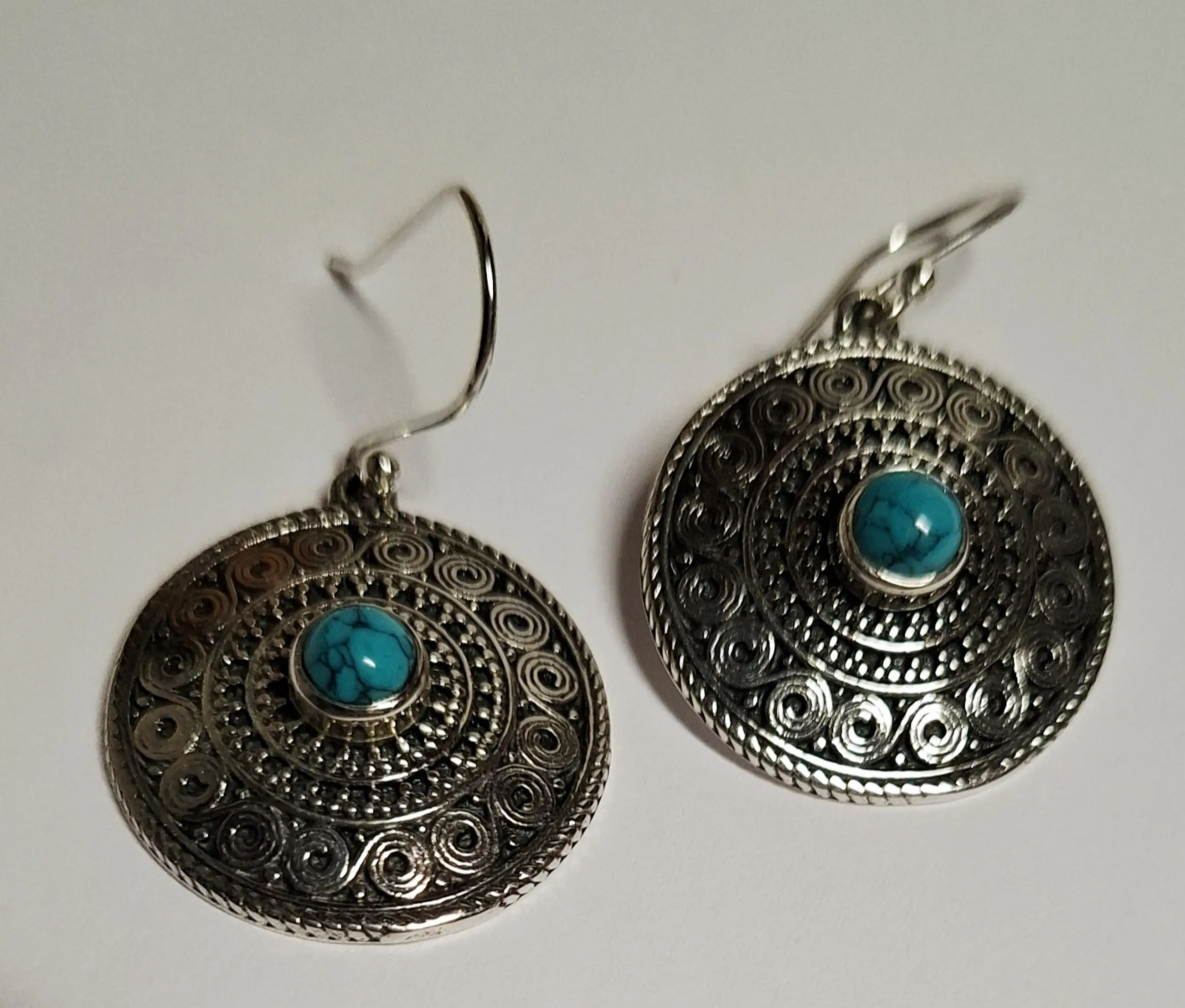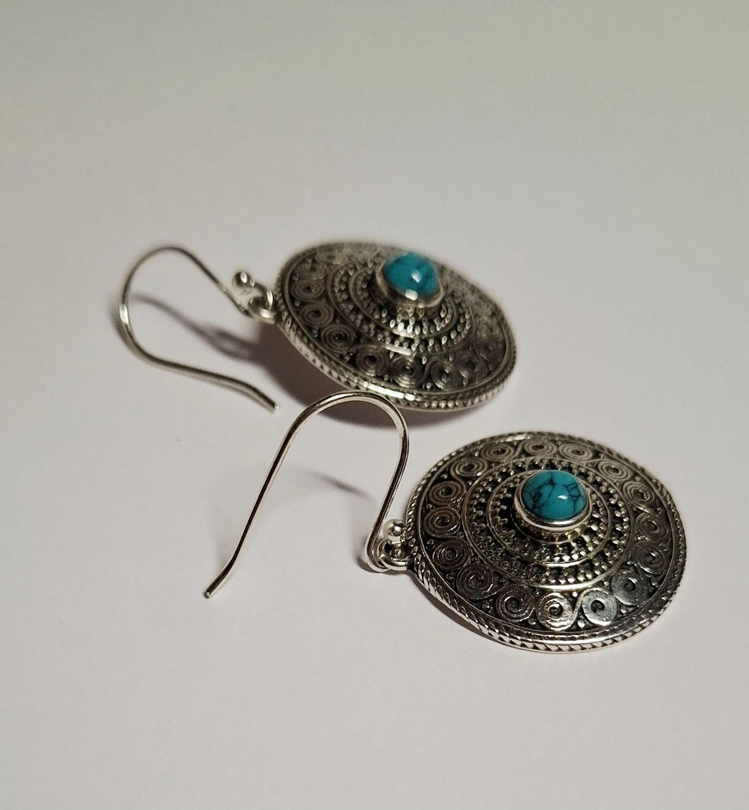 Deze van nature blauwe turquoise hanger is gezet in 925 Zilver kast . De prachtige turquoise oorbellen natuurlijke turquoise Egypte Dit turquoise uit Egypte is gezet in een massief 925 Zilveren setting met een gewicht samen van 9.56 gram. en totale lengte van 3.7 cm dat in Egypte