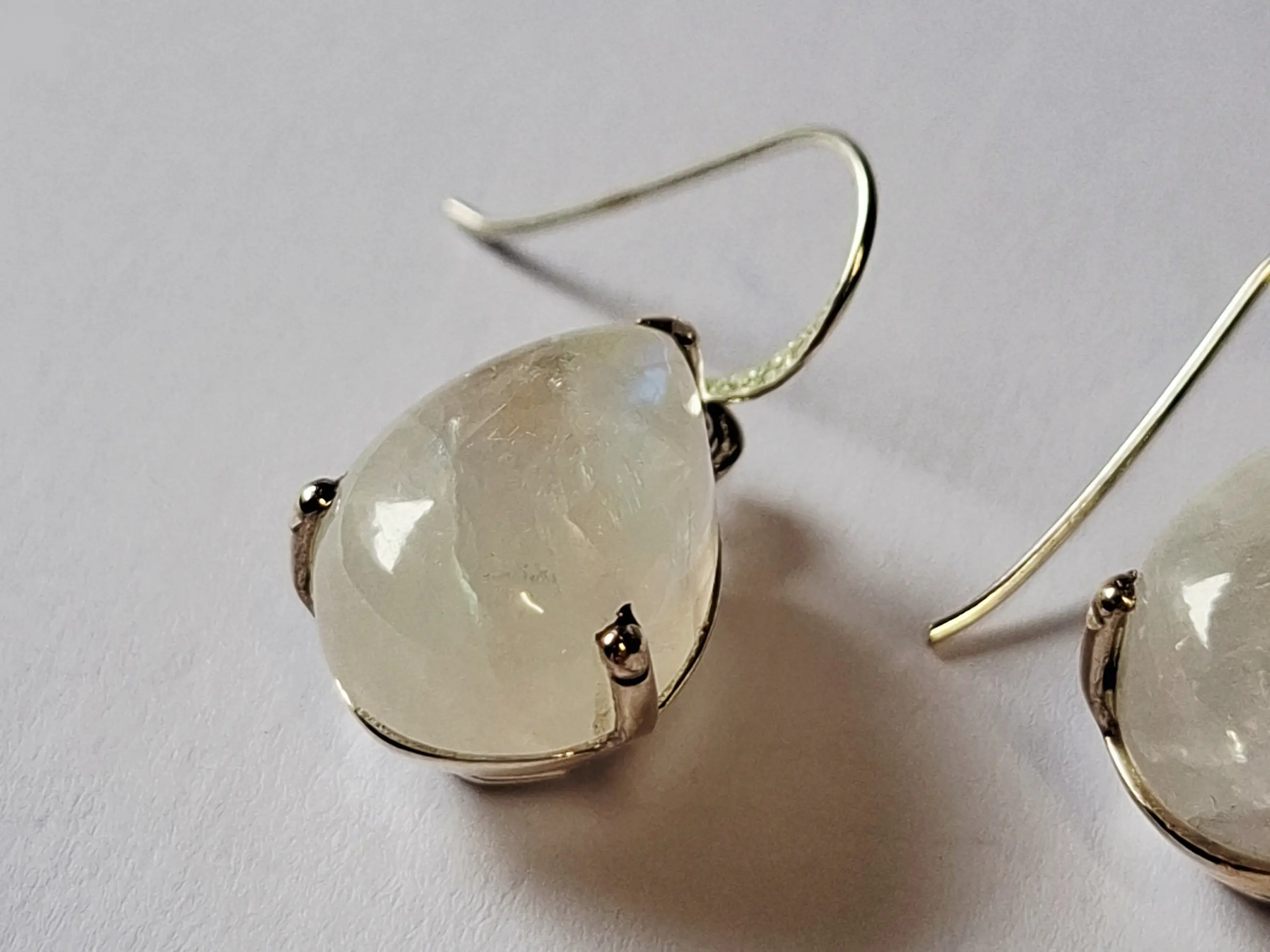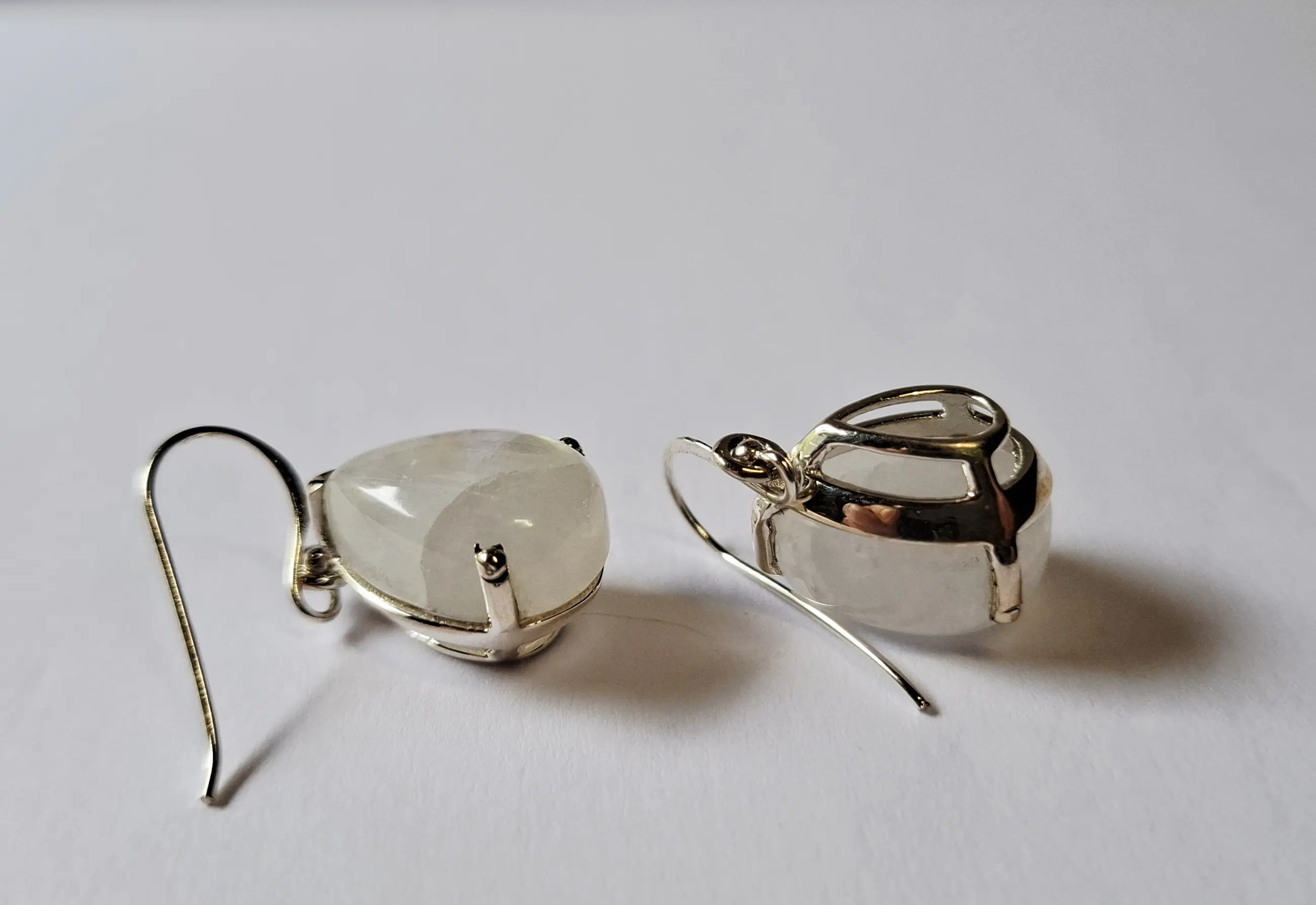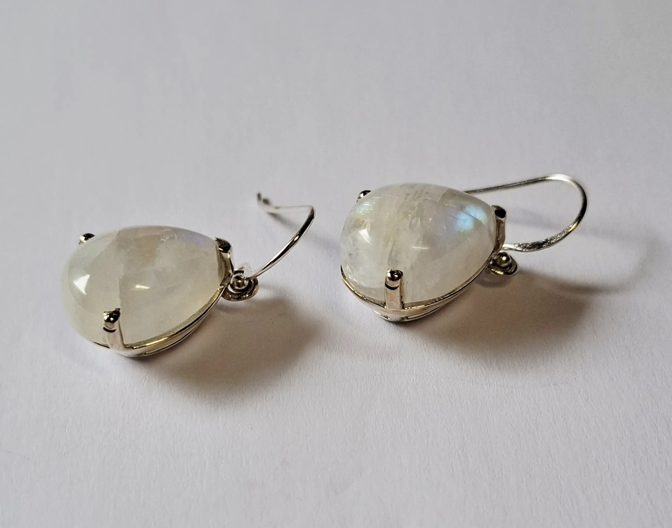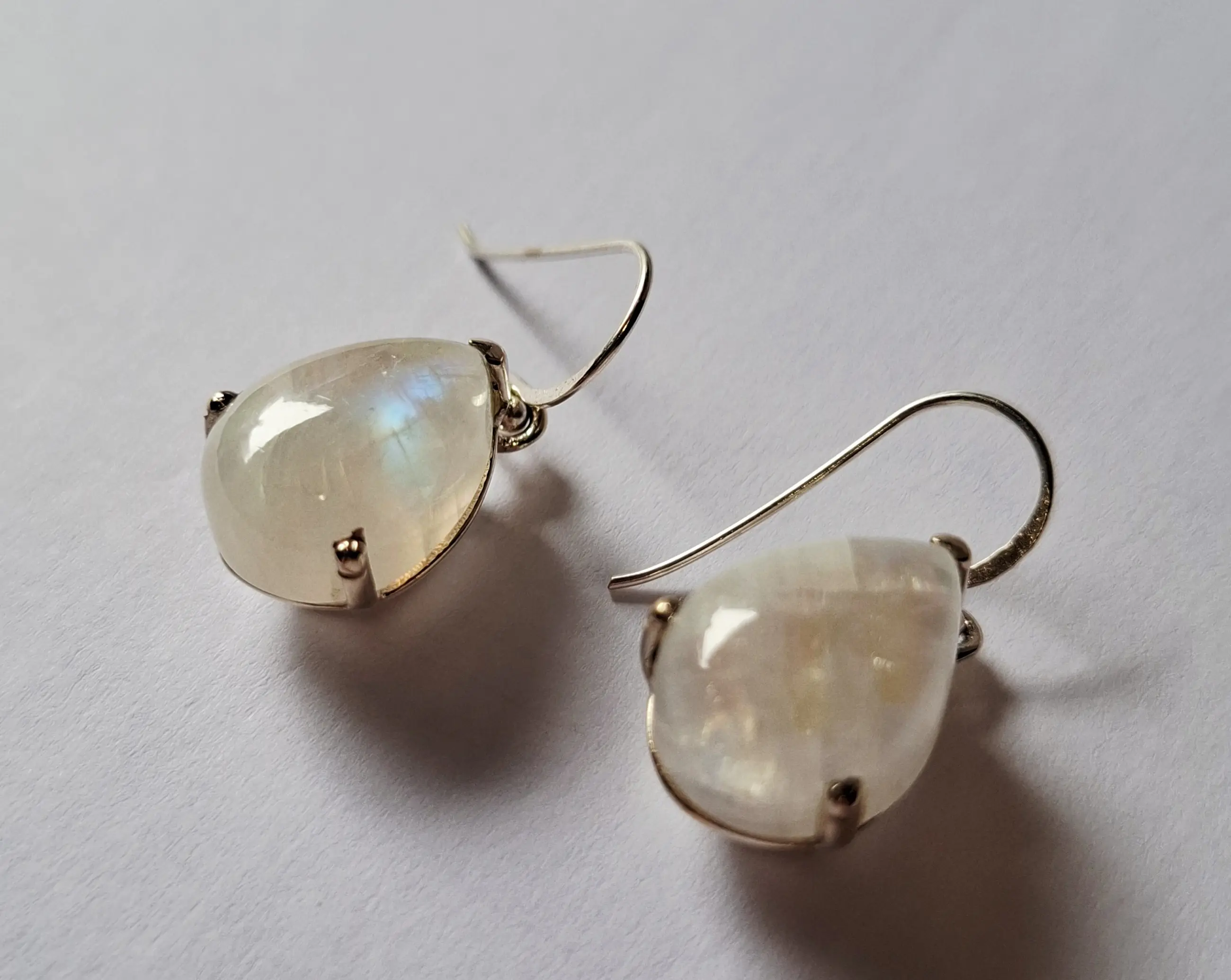 Nieuwe zilveren oorbellen met Regenboogmaansteen wordt ook weleens blauwe maansteen genoemd, als de iriserende kleur voornamelijk