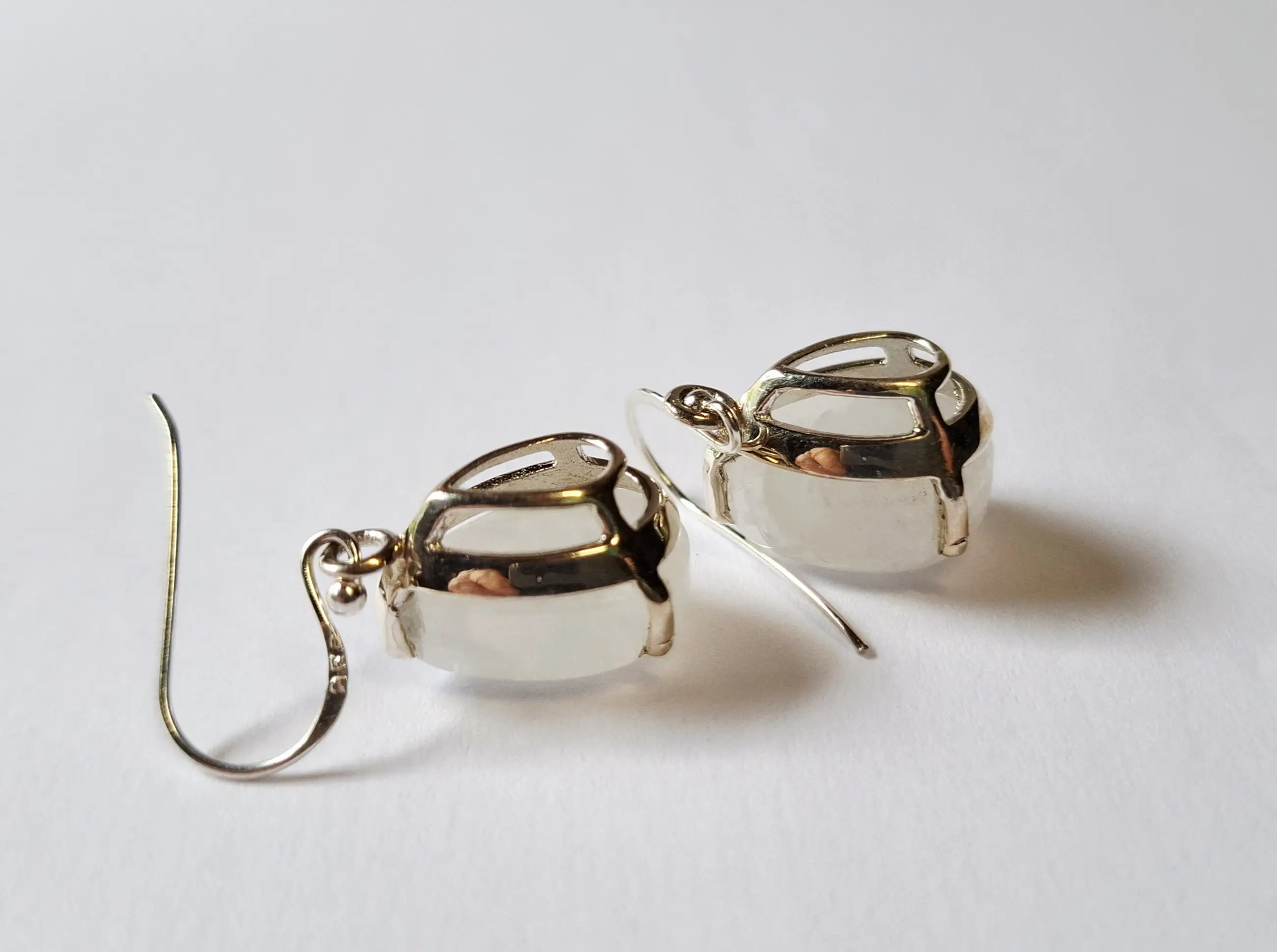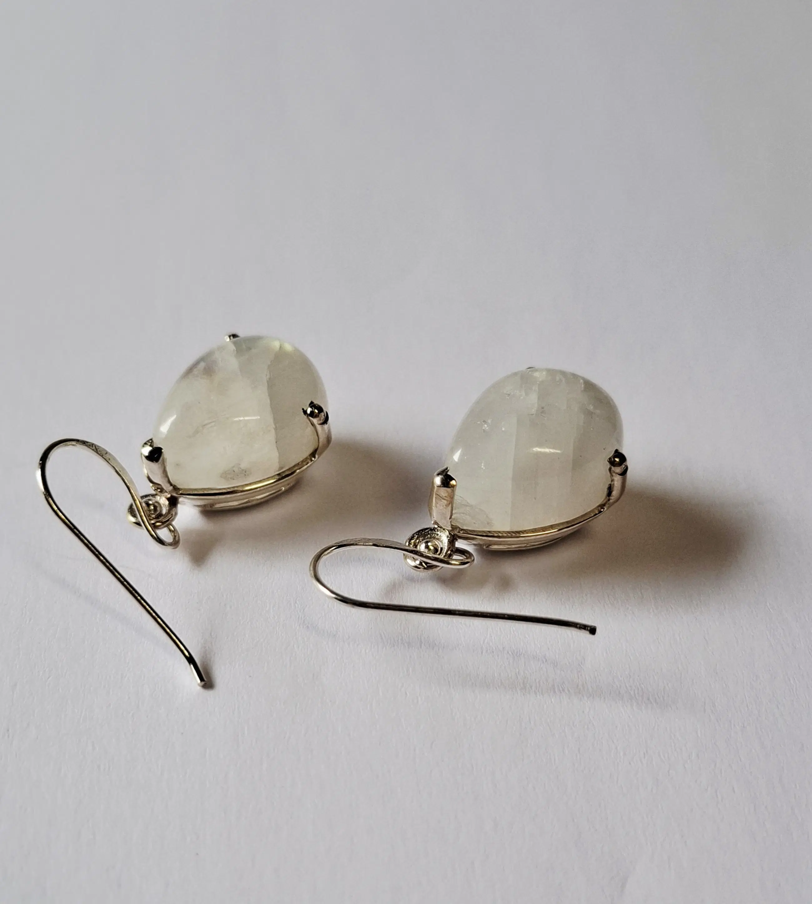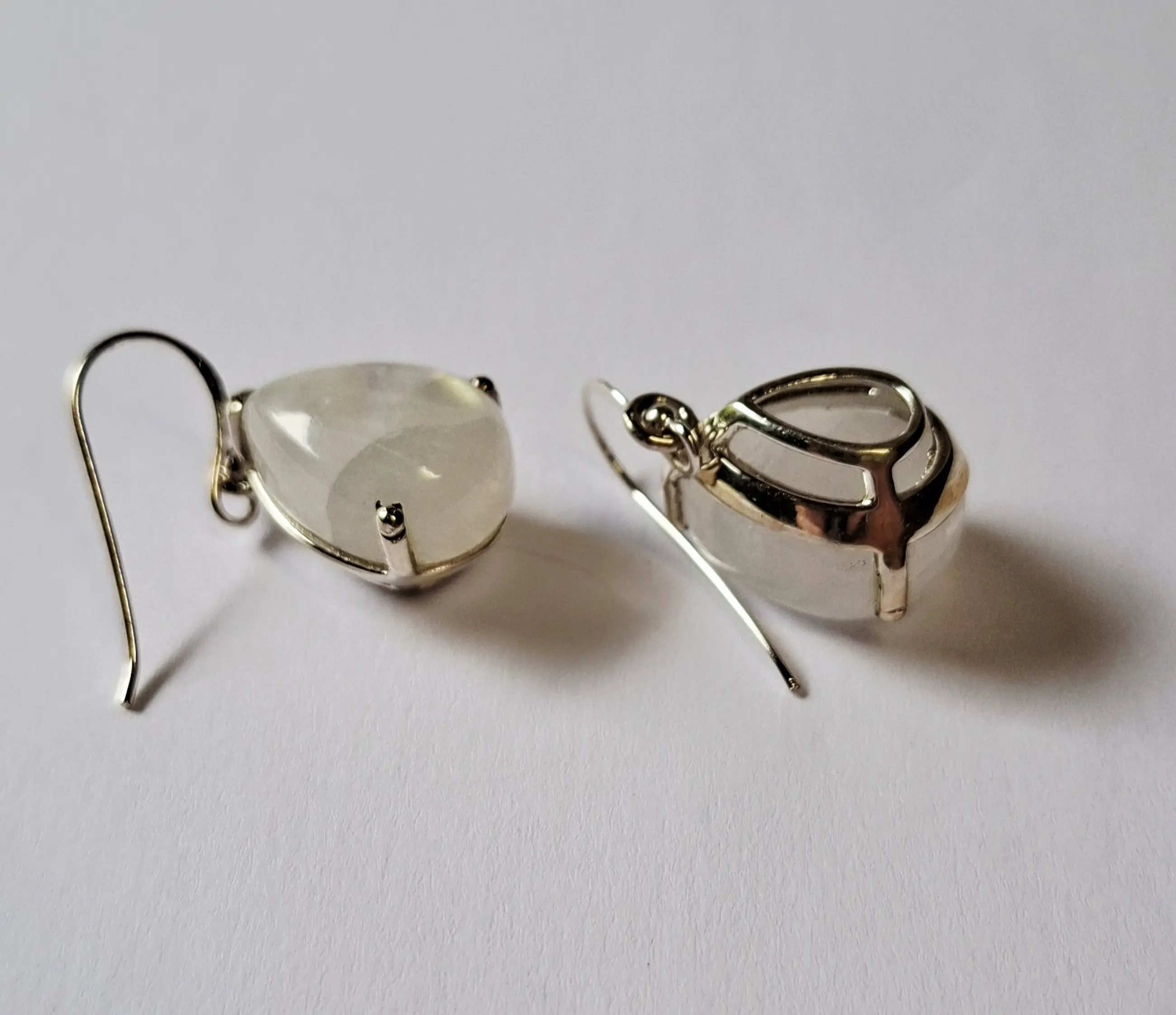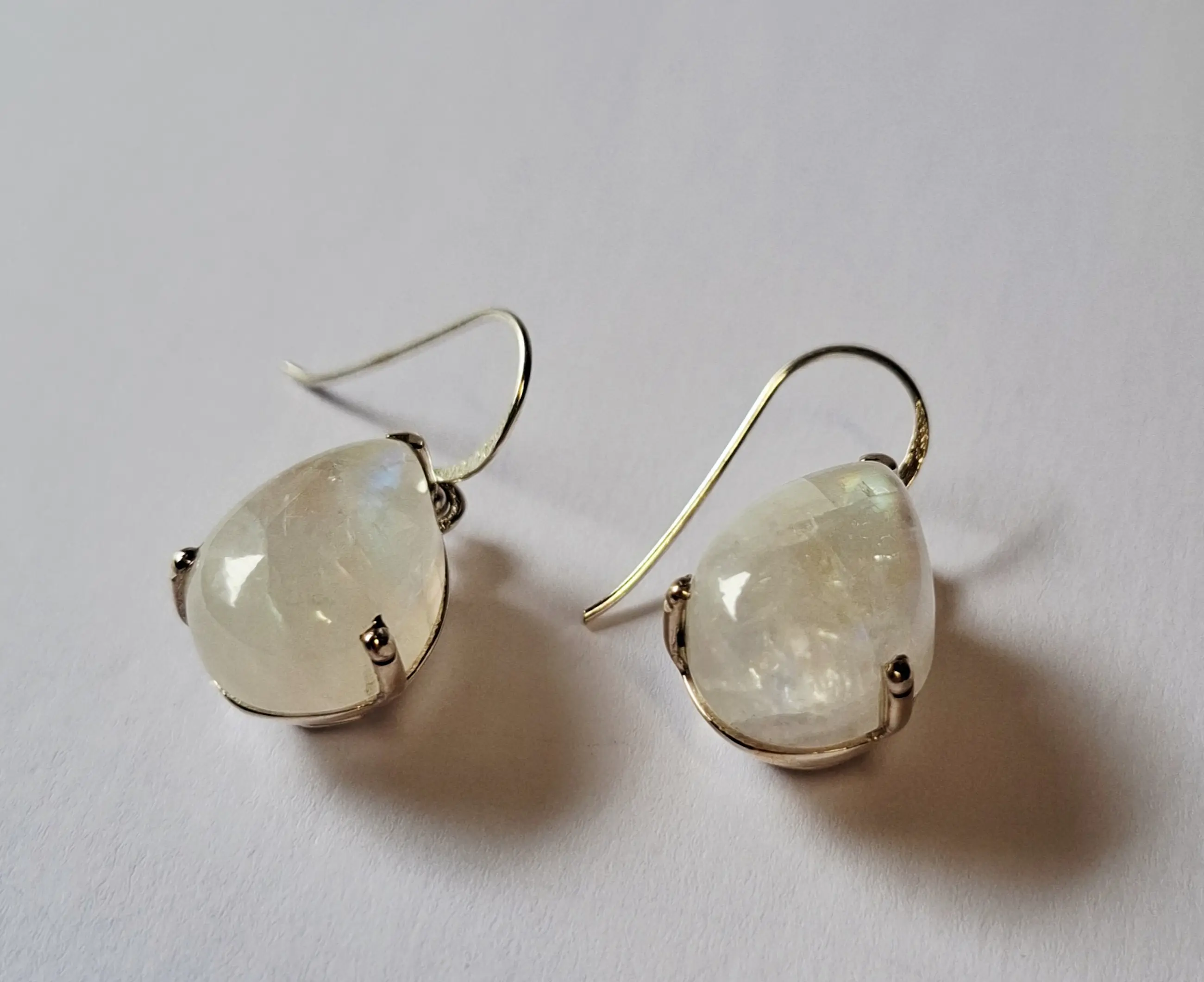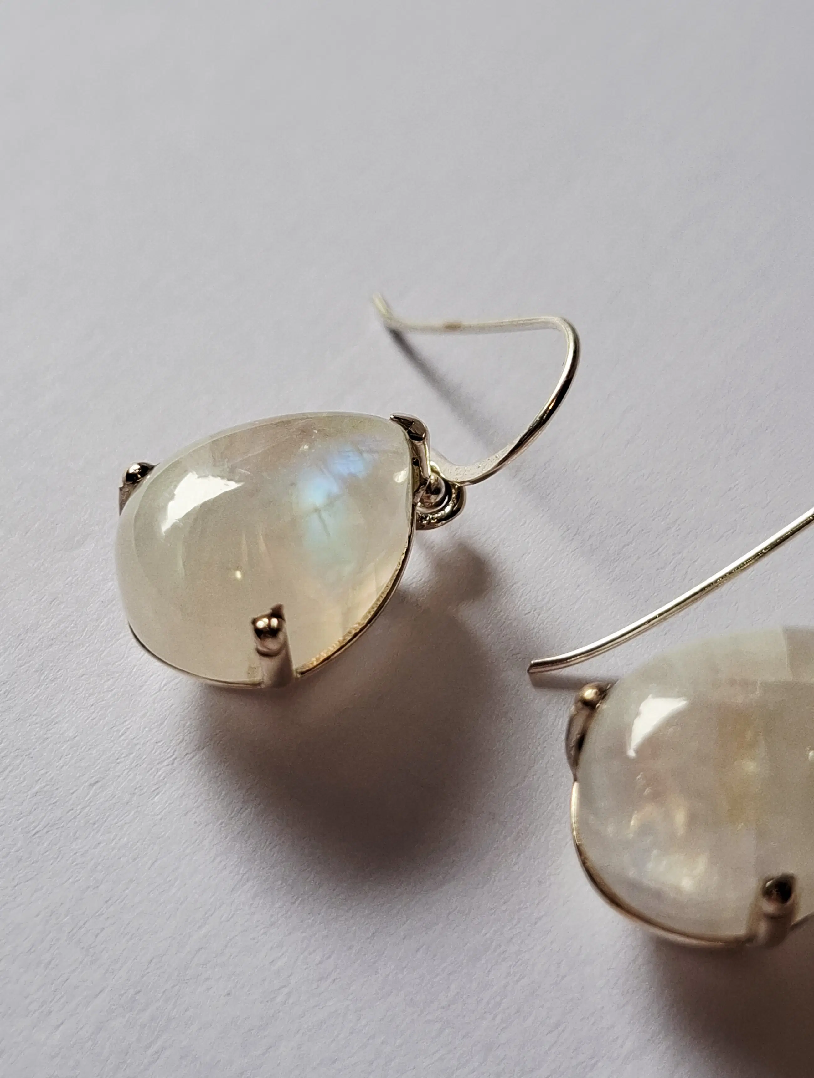 Nieuwe zilveren oorbellen met Regenboogmaansteen wordt ook weleens blauwe maansteen genoemd, als de iriserende kleur voornamelijk