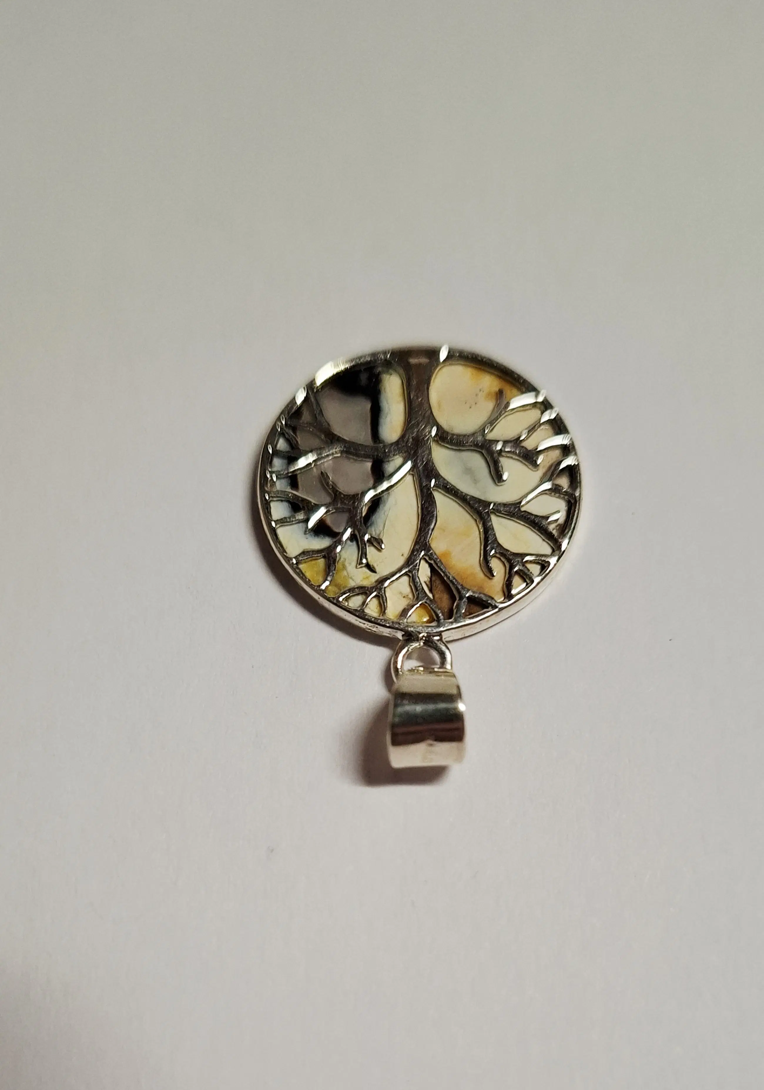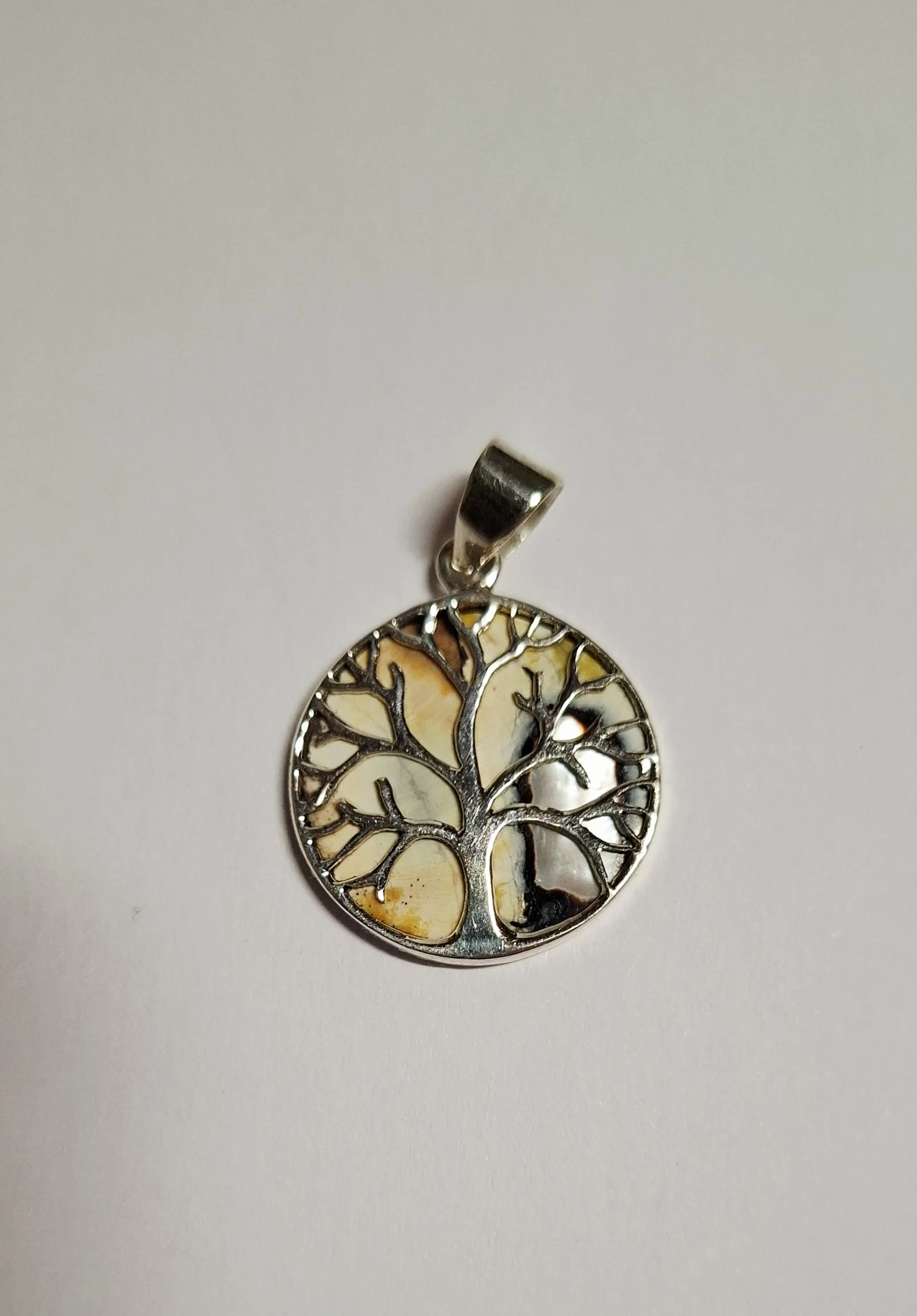 Nieuwe hanger met levensboom heeft een achterzijde twee kleurige agaat