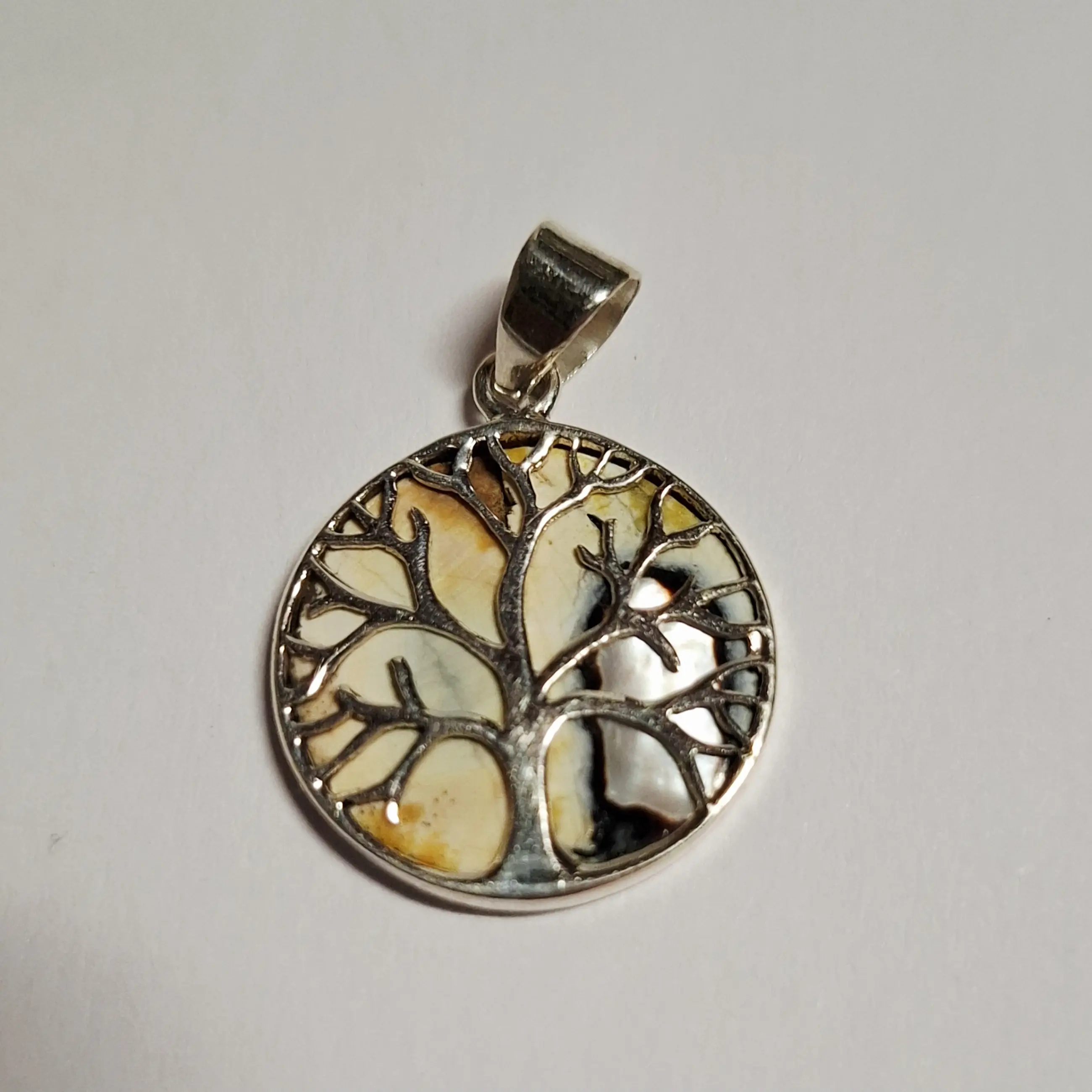 Nieuwe mooie hanger met een levensboom heeft een achterzijde van echte twee kleurige agaat Nieuwe mooie hanger met een levensboom heeft een achtergrond van echte agaat met meerdere kleuren in zich. Dat het echt handwerk is, aan de achterzijde van de schelp. Het is heel mooi gemaakt en een blijvend wonder van de natuur. agaat wordt in Botswana gevonden. Eigenlijk kan je deze hanger aan twee kanten dragen voorkant of achterkant .