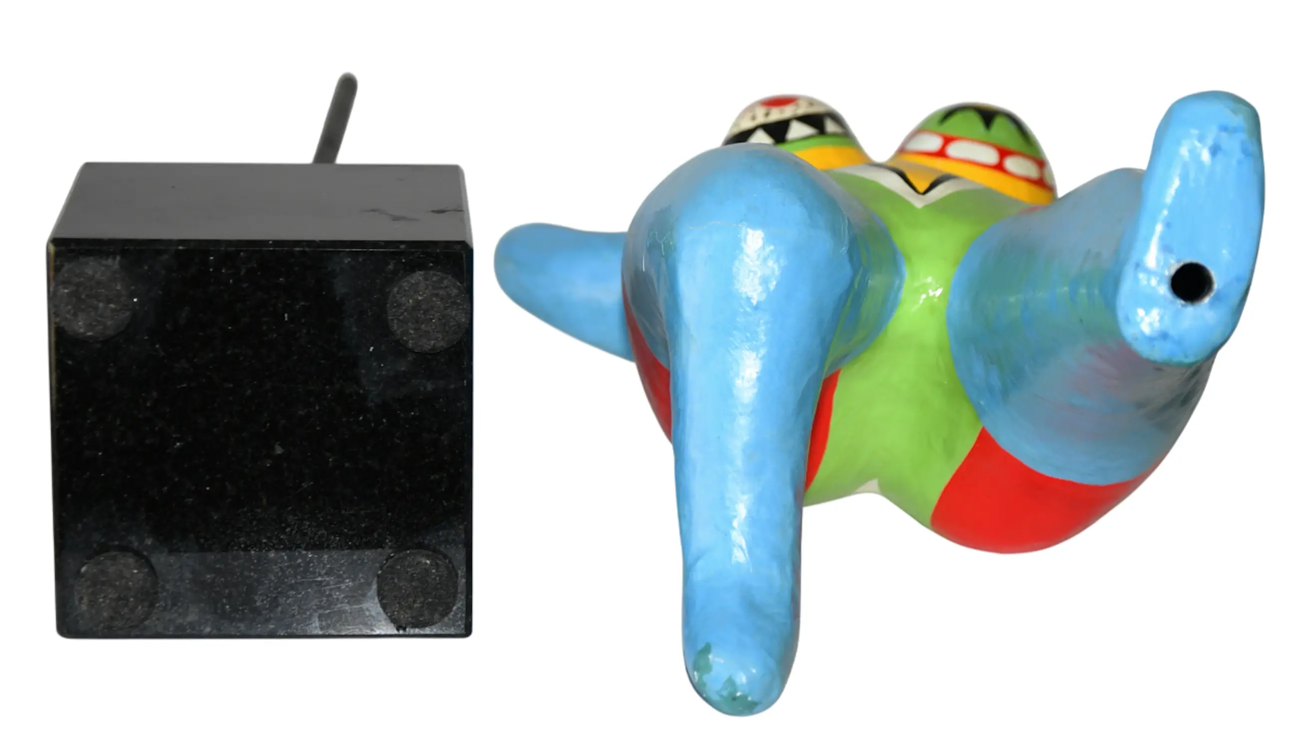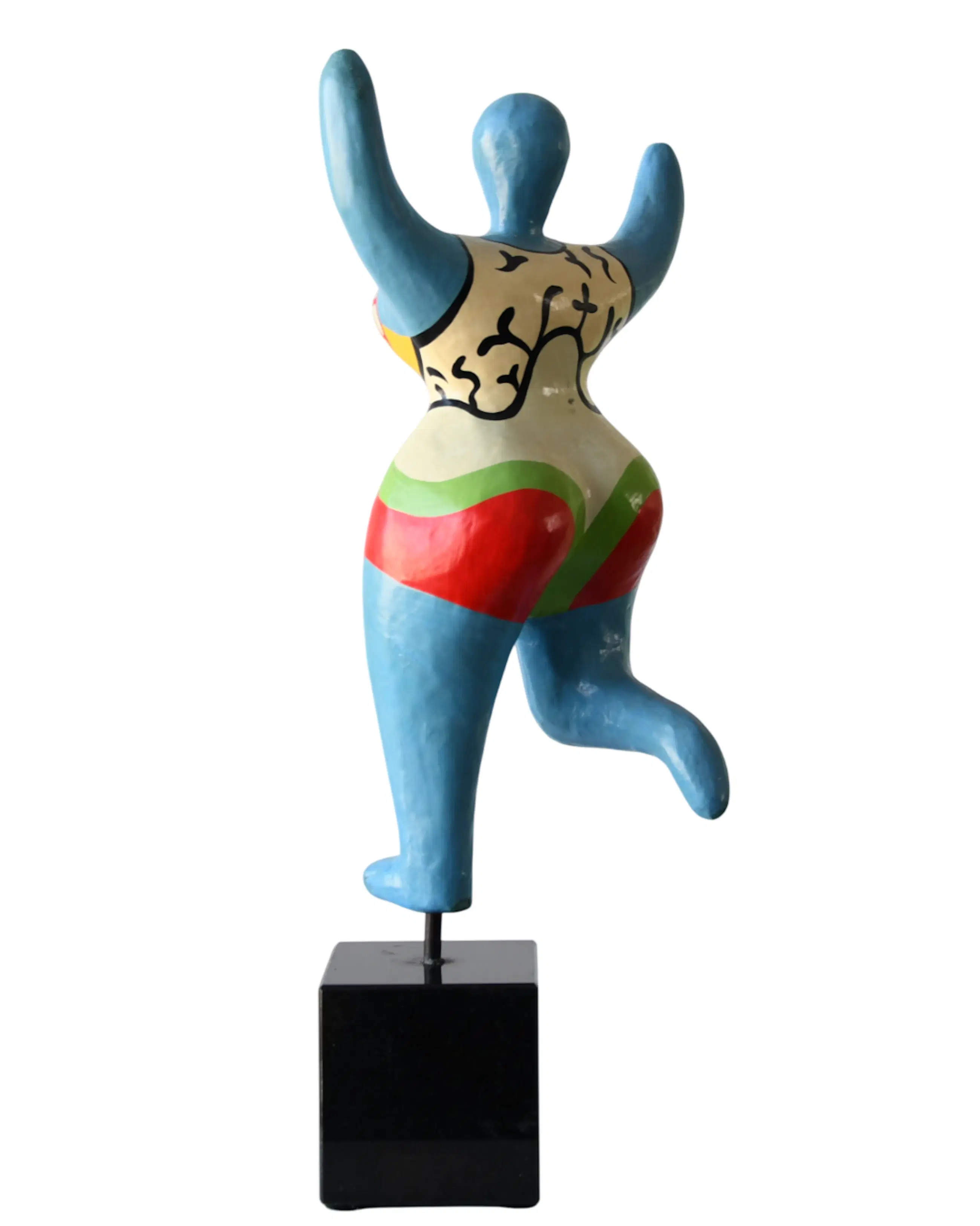 Deze ‘Nana’ sculptuur komt zeer waarschijnlijk van de expositie over Niki de Saint Phalle, welke werd gehouden van 5 december 1998 – 28 maart 1999 in Kunsthal Rotterdam.