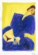 Nil Ausländer - Das BLAUE KLEID - WEIBLICHER AKT in EXTASE - OriginalÖlKreide & Aquarell 1998 handsigniert - Verkocht