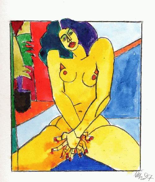 Nil Ausländer - Die SCHÖNE SUSA - AKT 1997 - Handsigniertes Original-Aquarell des BERLINers: nun in MeCkPoM gelandet - Verkocht