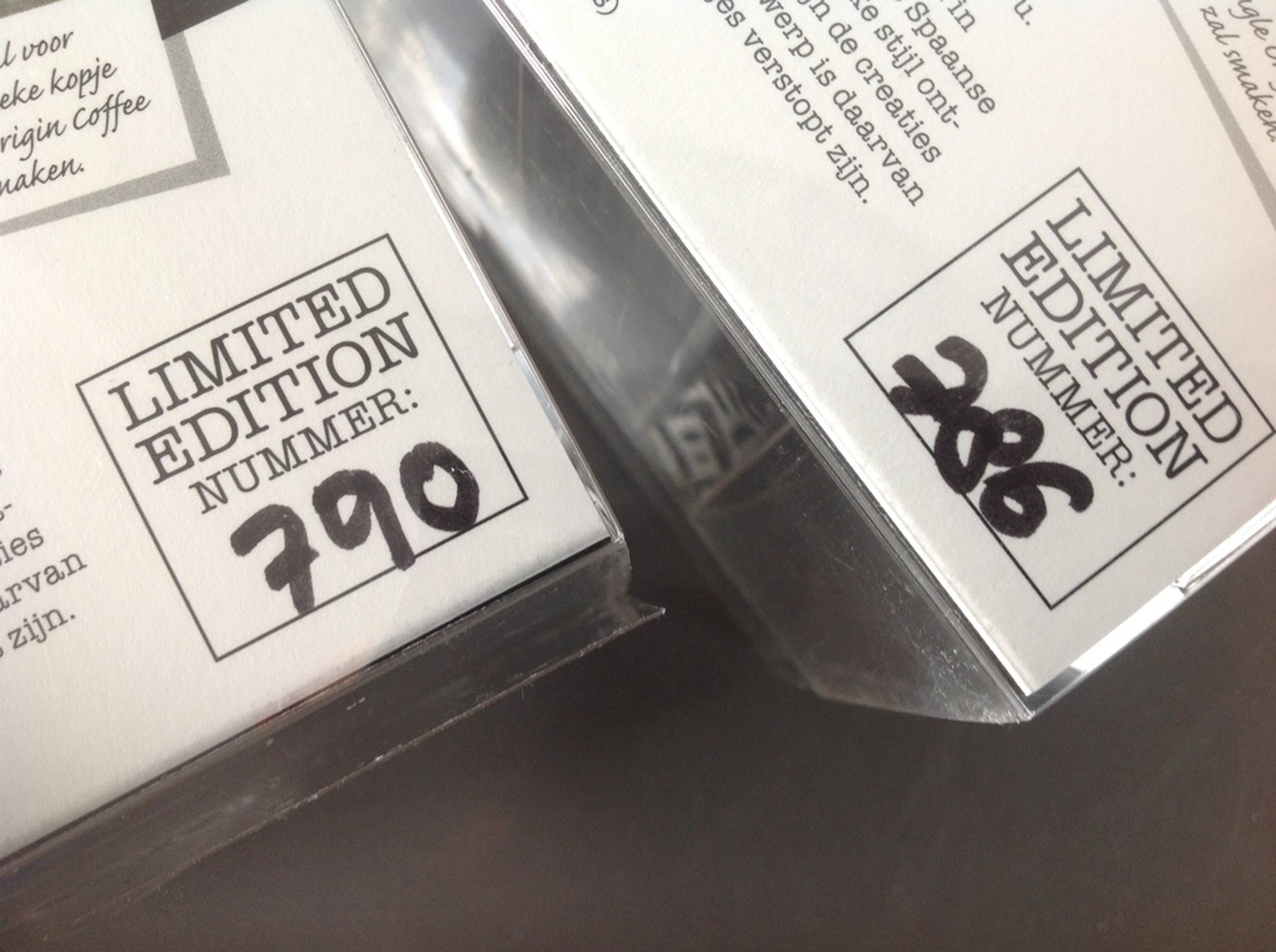 De twee ongebruikte espressokopjes zijn ontworpen door de kunstenares Nina Bru.
