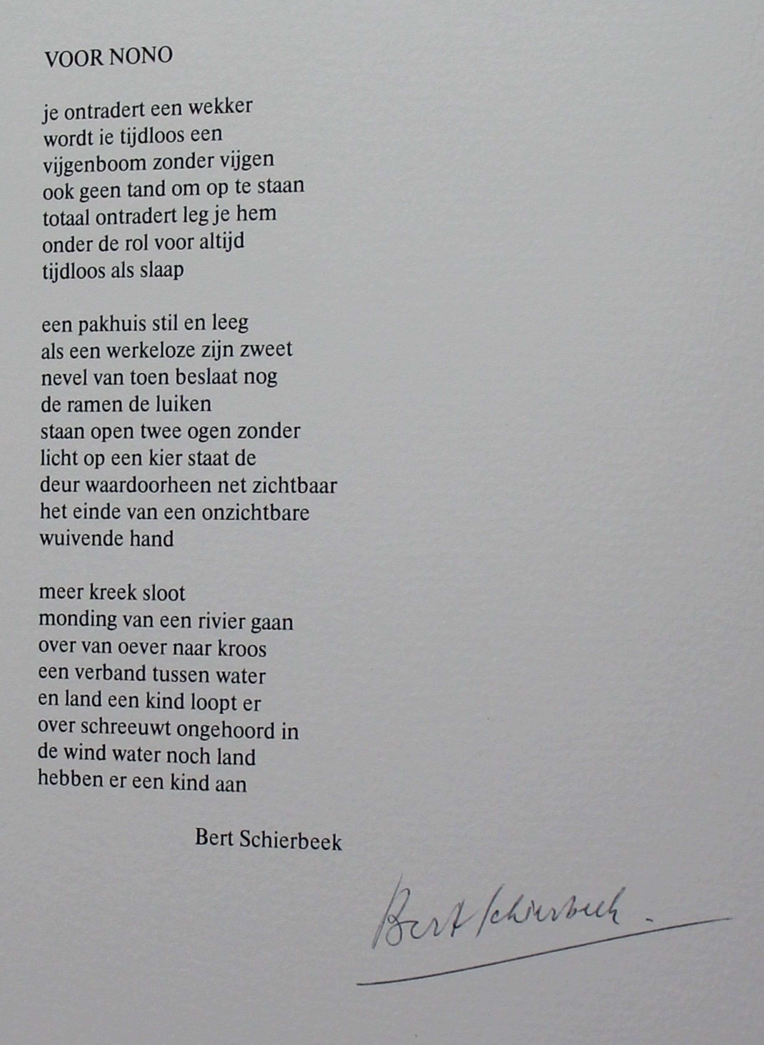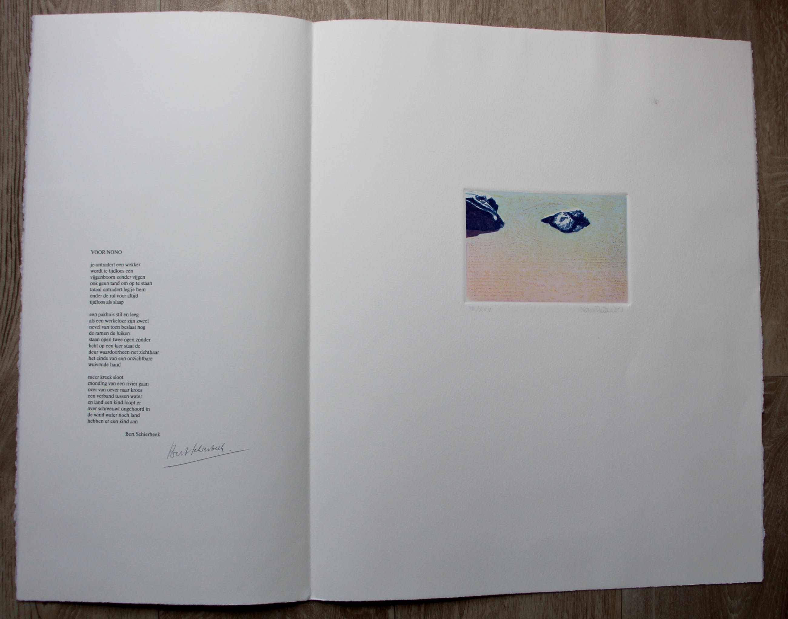 Mooie 5 kleuren ets van Nono Reinhold. Bij deze ets is een gedicht van Bert Schierbeek met de titel: "Voor Nono". Nummer: VII/XXV Afmetingen blad: h65 x b50 cm. Afmetingen ets: h9,5 x b14,5 cm. Gedicht en ets zijn gesigneerd. De authenticiteit van het, aangeboden, werk wordt volledig gegarandeerd. Een certificaat van echtheid kan, op aanvraag, worden gemaild.