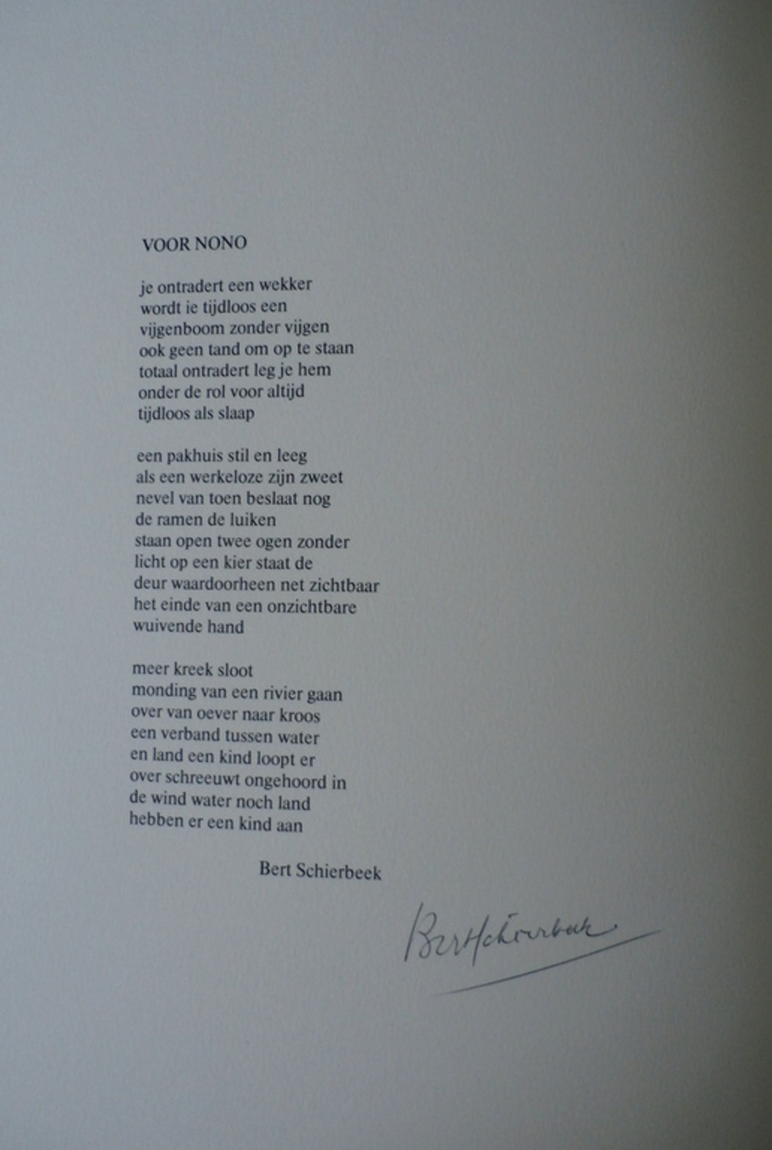 Mooie 5 kleurenets van Nono Reinhold. Bij deze ets is een gedivht van Bert Schierbeek met de titel: "Voor Nono". Gedicht en ets zijn gesigneerd. Nummer: XXII/XXV (Nummer kan verschillen i.v.m. het in bezit hebben van meerdere exemplaren). Afmetingen blad: h50 x b65 cm. Afmetingen ets: h9,5 x b14,5 cm.