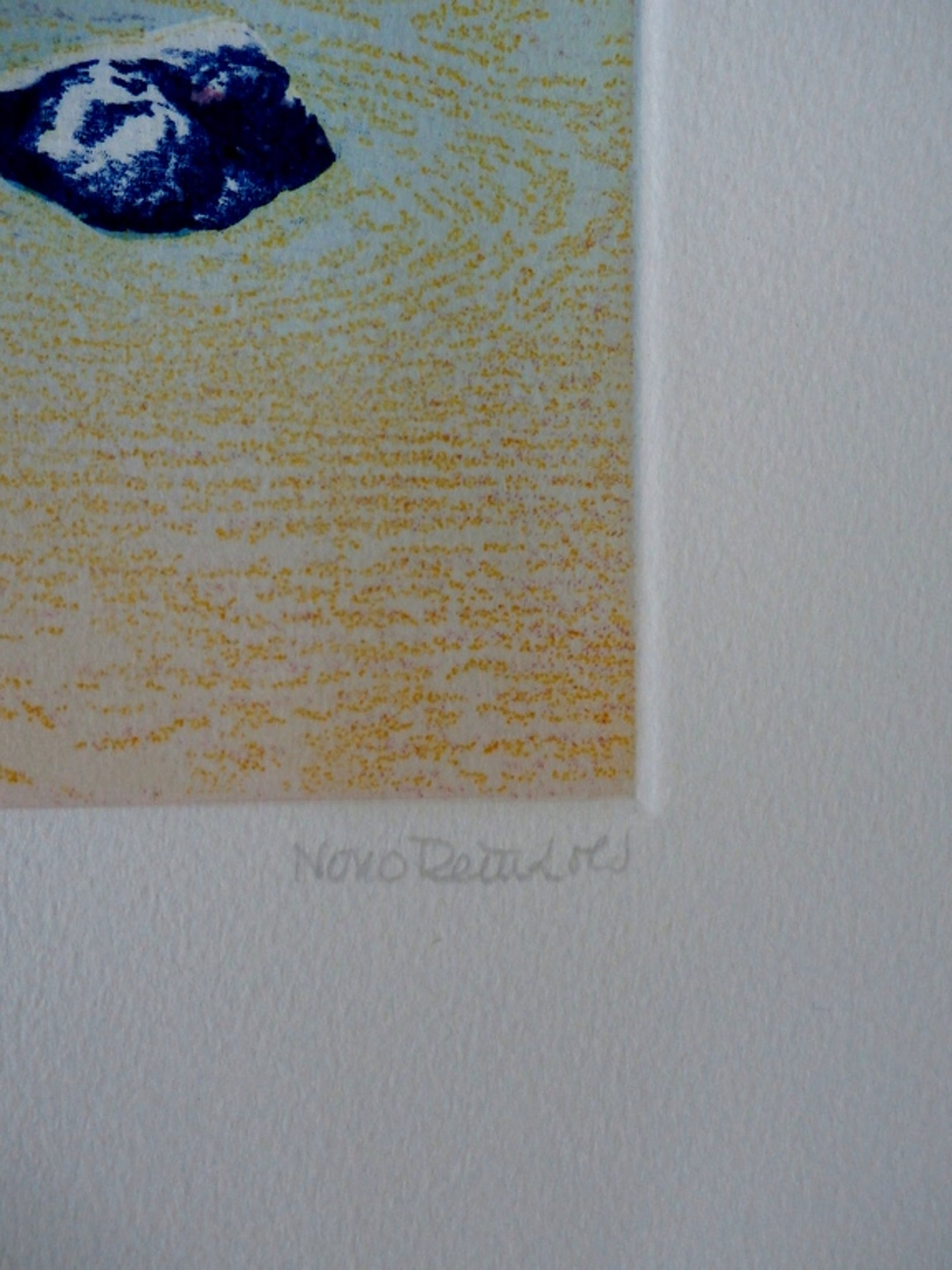Mooie 5 kleurenets van Nono Reinhold. Bij deze ets is een gedivht van Bert Schierbeek met de titel: "Voor Nono". Gedicht en ets zijn gesigneerd. Nummer: XXII/XXV (Nummer kan verschillen i.v.m. het in bezit hebben van meerdere exemplaren). Afmetingen blad: h50 x b65 cm. Afmetingen ets: h9,5 x b14,5 cm.