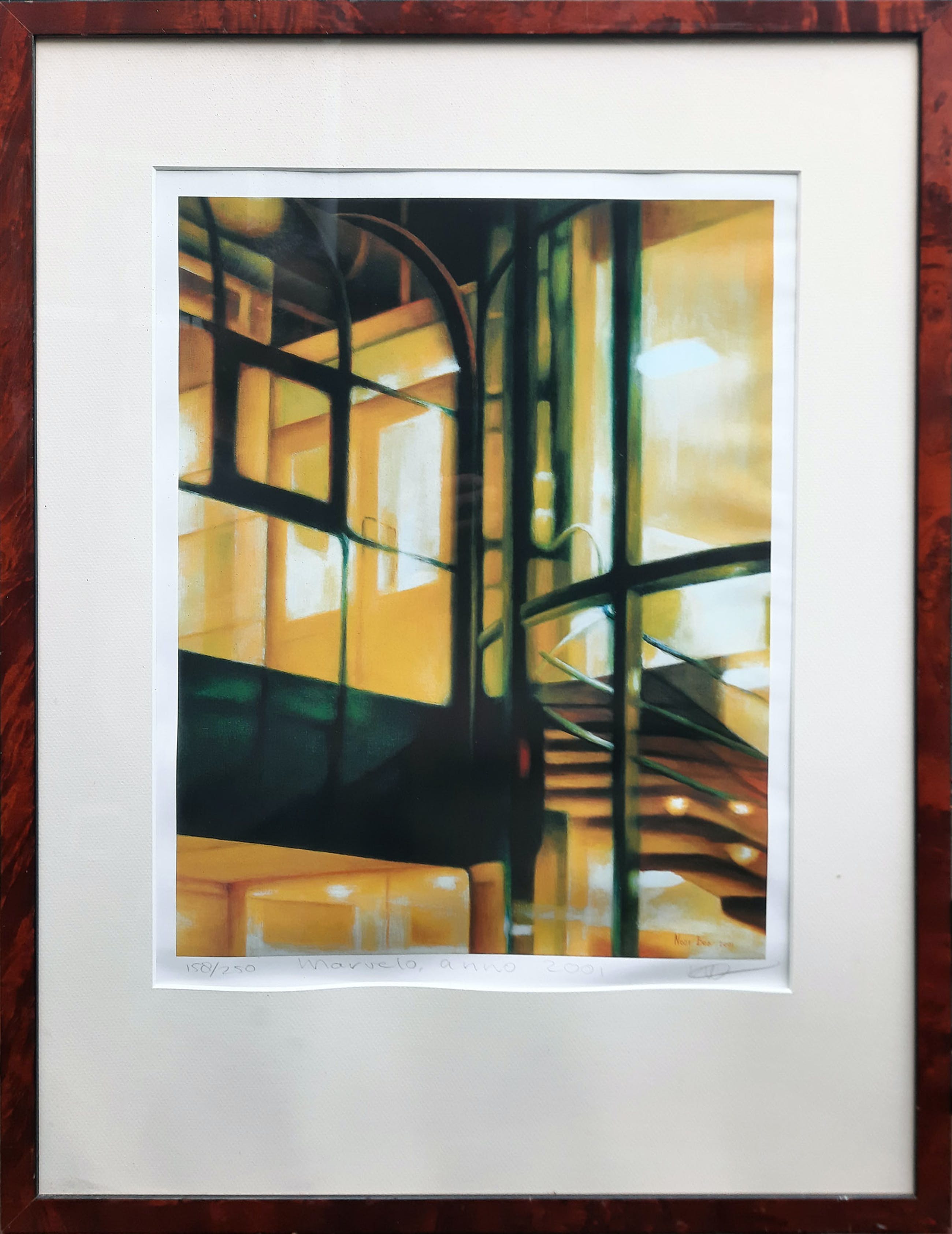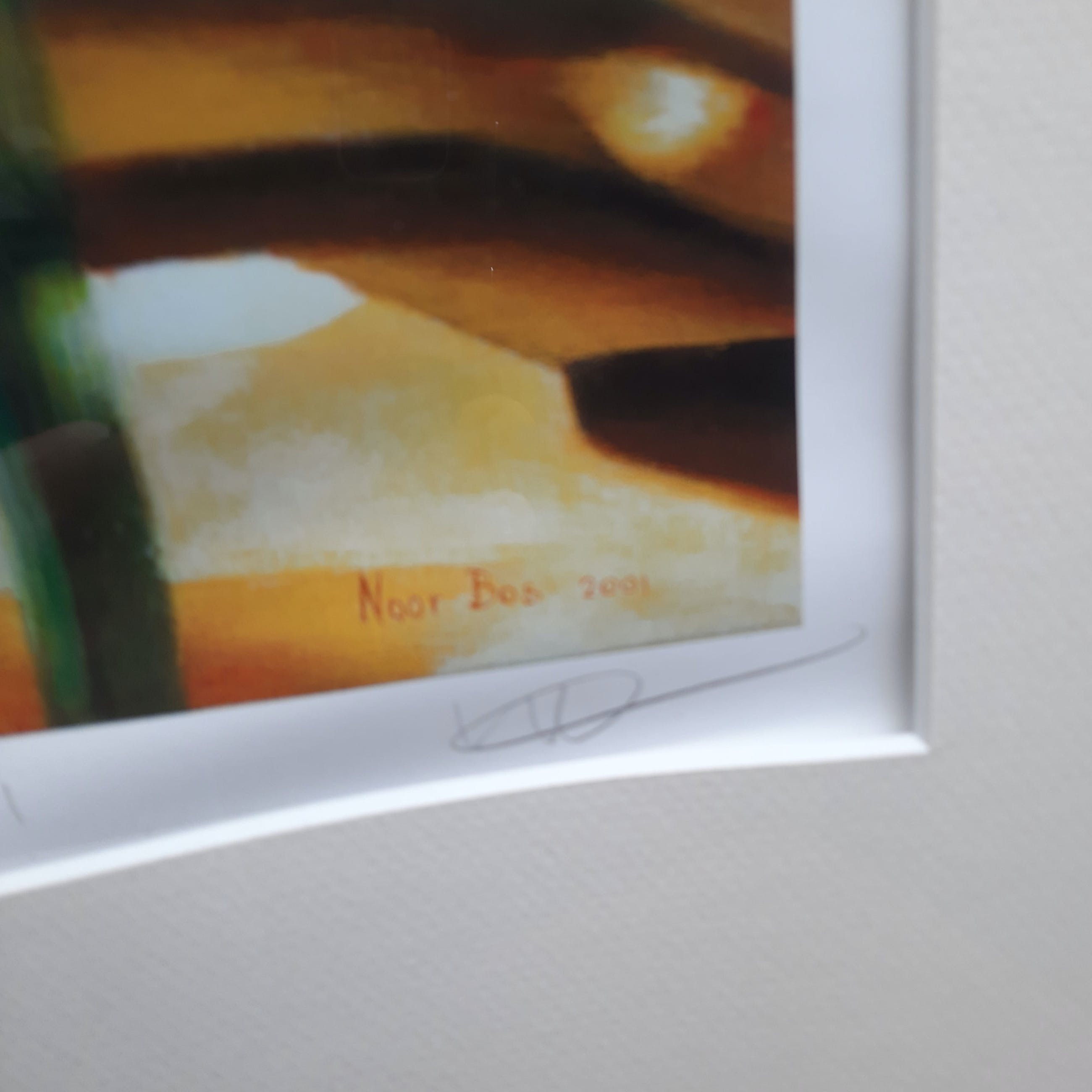 Wordt verzekerd verzonden. Risico verzending is voor koper. Afhalen in de galerie in Zaandam verdient de voorkeur. Het werk bekijken alvorens een bod te doen behoort ook tot de mogelijkheden. Noor Bos is een Zaanse kunstenaar met een atelier in de Parkstraat in Zaandam. Hij heeft dit werk gemaakt voor Marvelo in Zaandam. Een productiebedrijf van Ahold/ Albert Heijn.