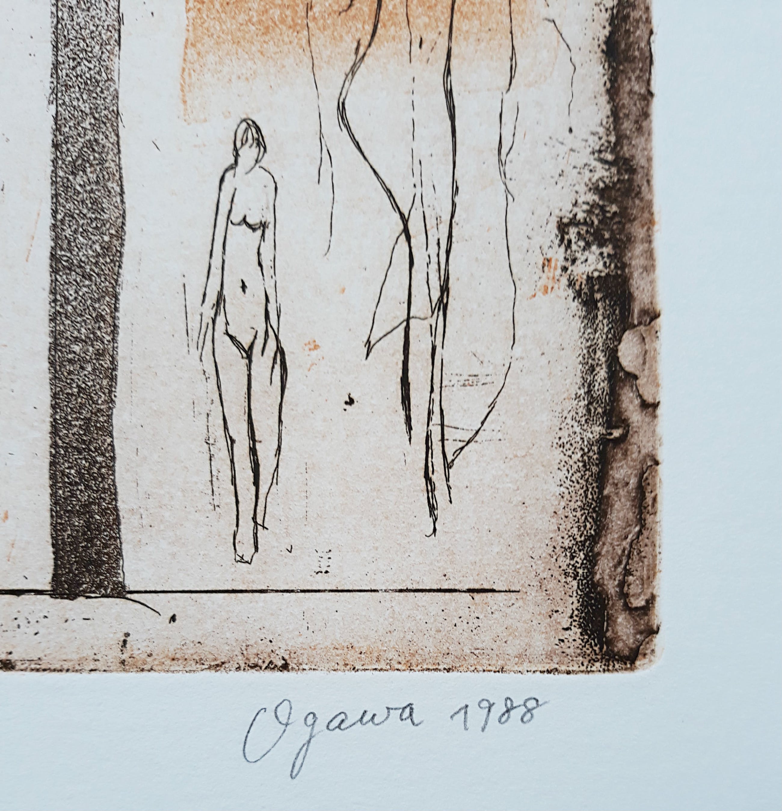 Zeer mooi naakt van de Japanse kunstenares Noriko Ogawa. Aquatint ets op stevig papier, met potlood gesigneerd, gedateerd (1988) en genummerd (83/130). In uitstekende conditie.