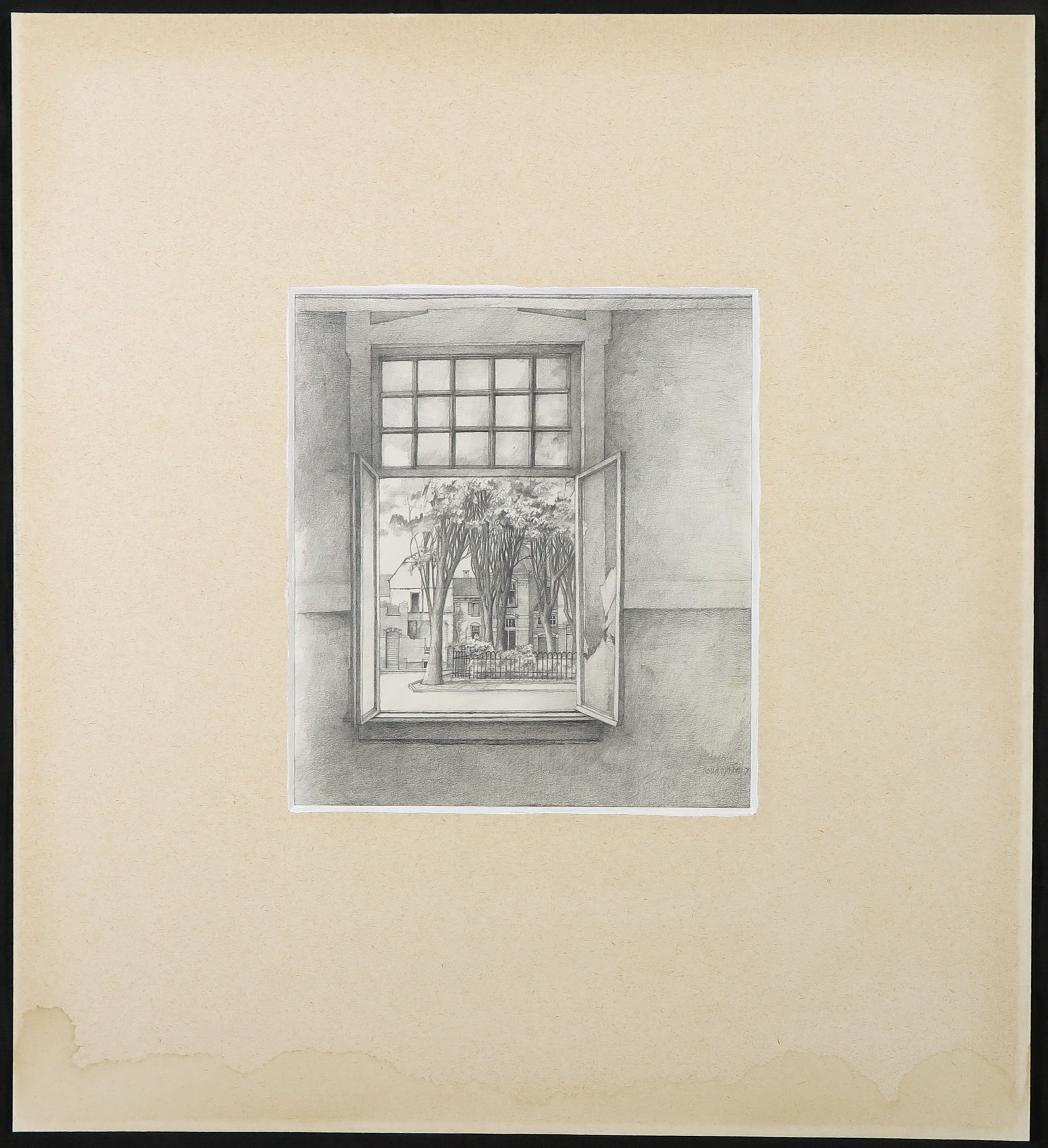 | Het werk zelf is in goede staat. Het passe-partout is vergeeld, heeft zeer veel foxing en langs de onderste rand bruine kringen door vocht. | |||