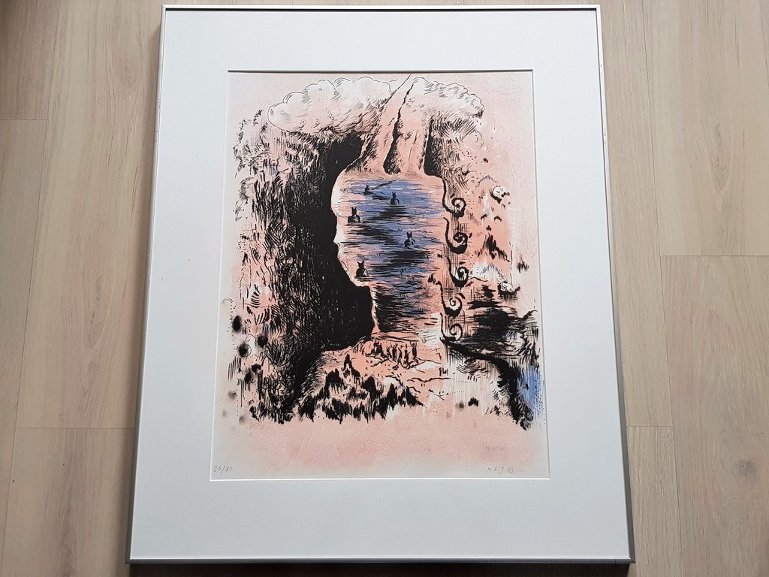 Nour-Edinne Jarram, gesigneerd en gedateerd 93. oplage, 26/50. Afm totaal: 85.5 x 70.5 cm. Beeldformaat: 63 x 48 cm. Inclusief; glasplaat, aluminumlijst en ophangmogelijkheid. Het verkeerd in perfecte staat. Kan ivm glasplaat en grote afmeting alleen opgehaald worden.