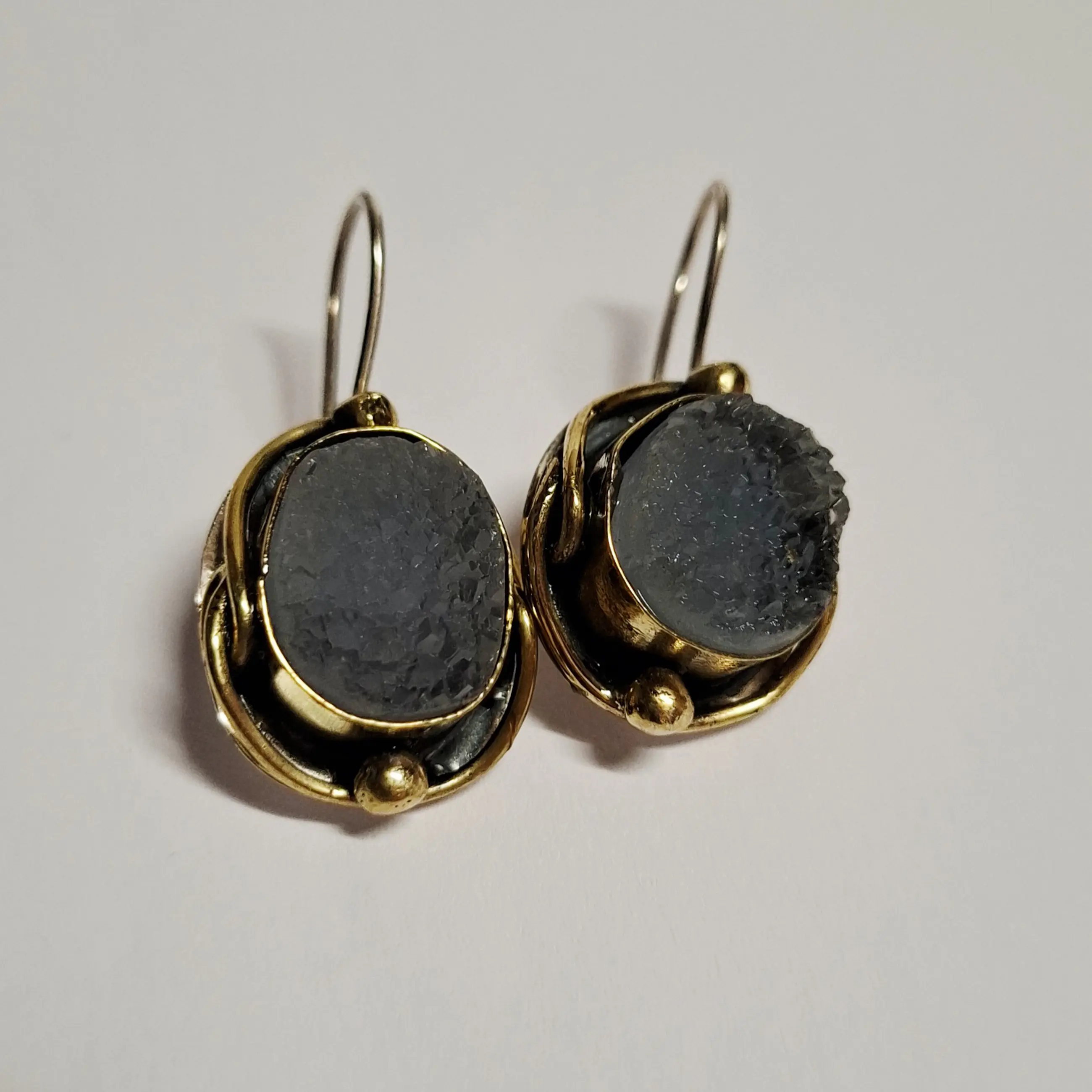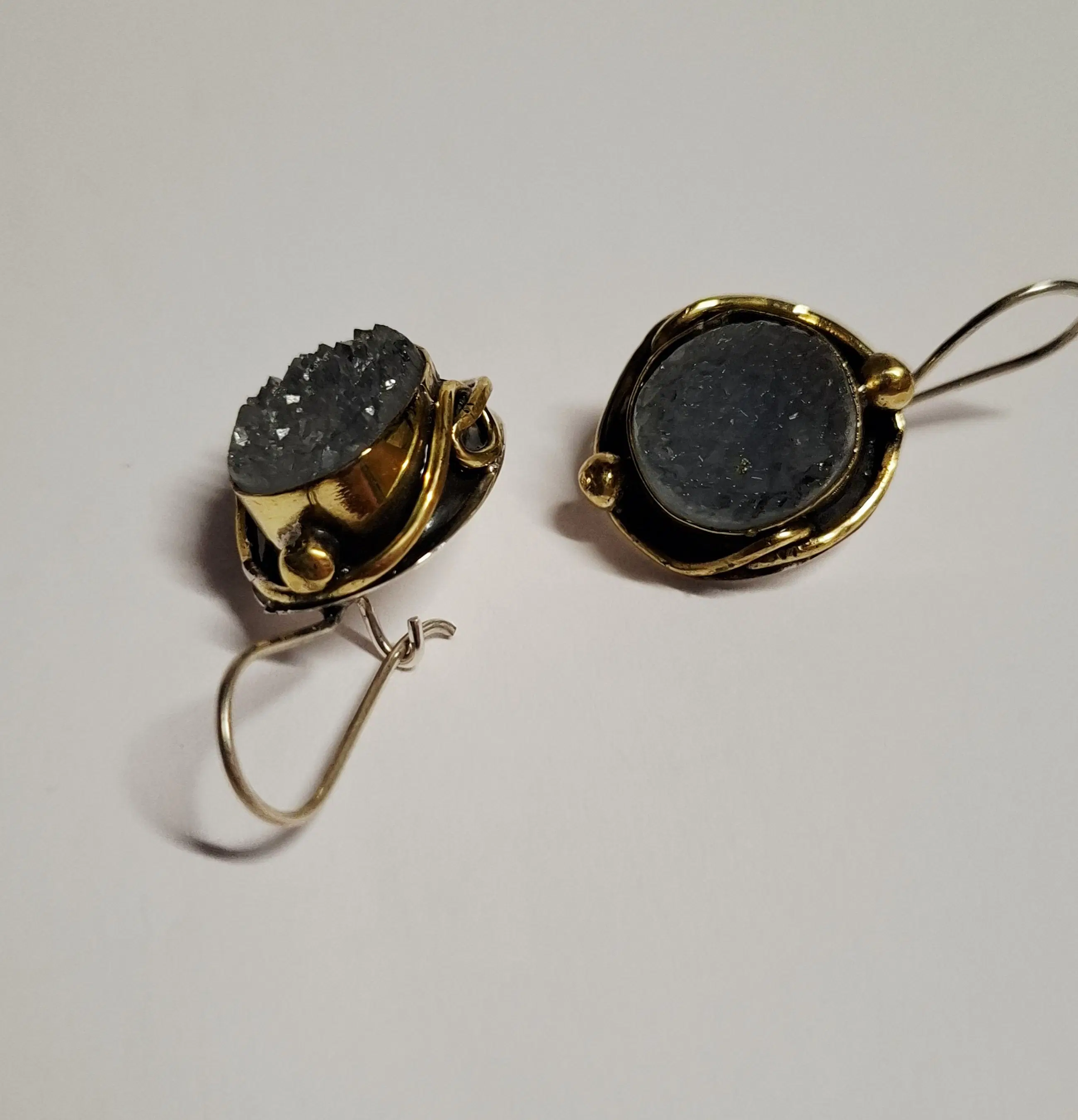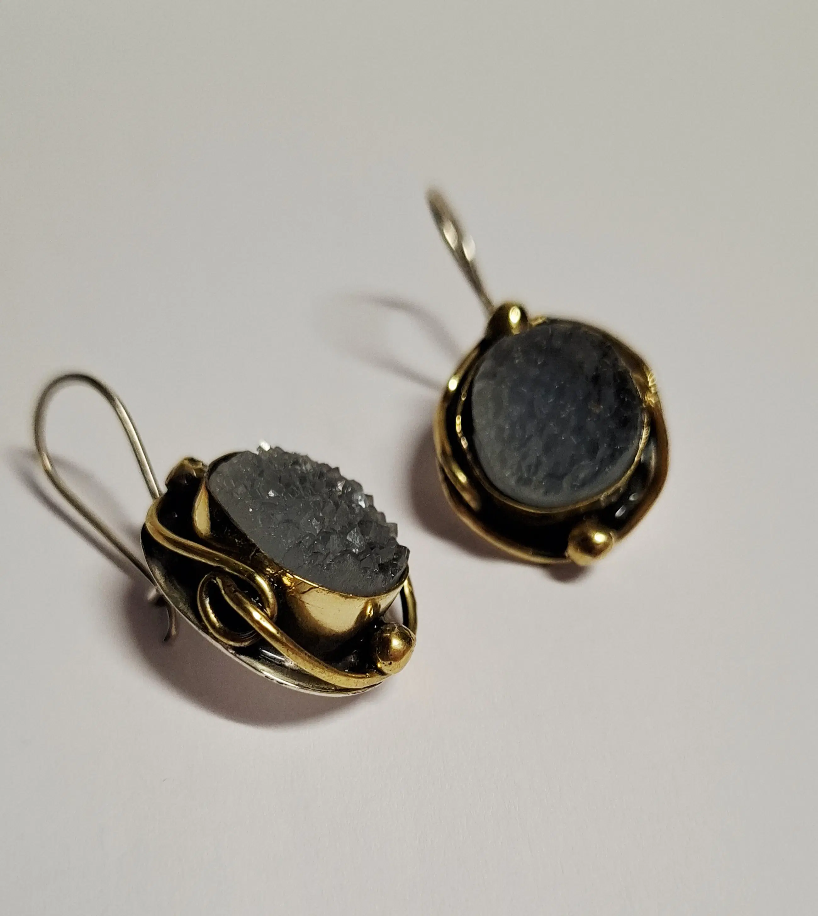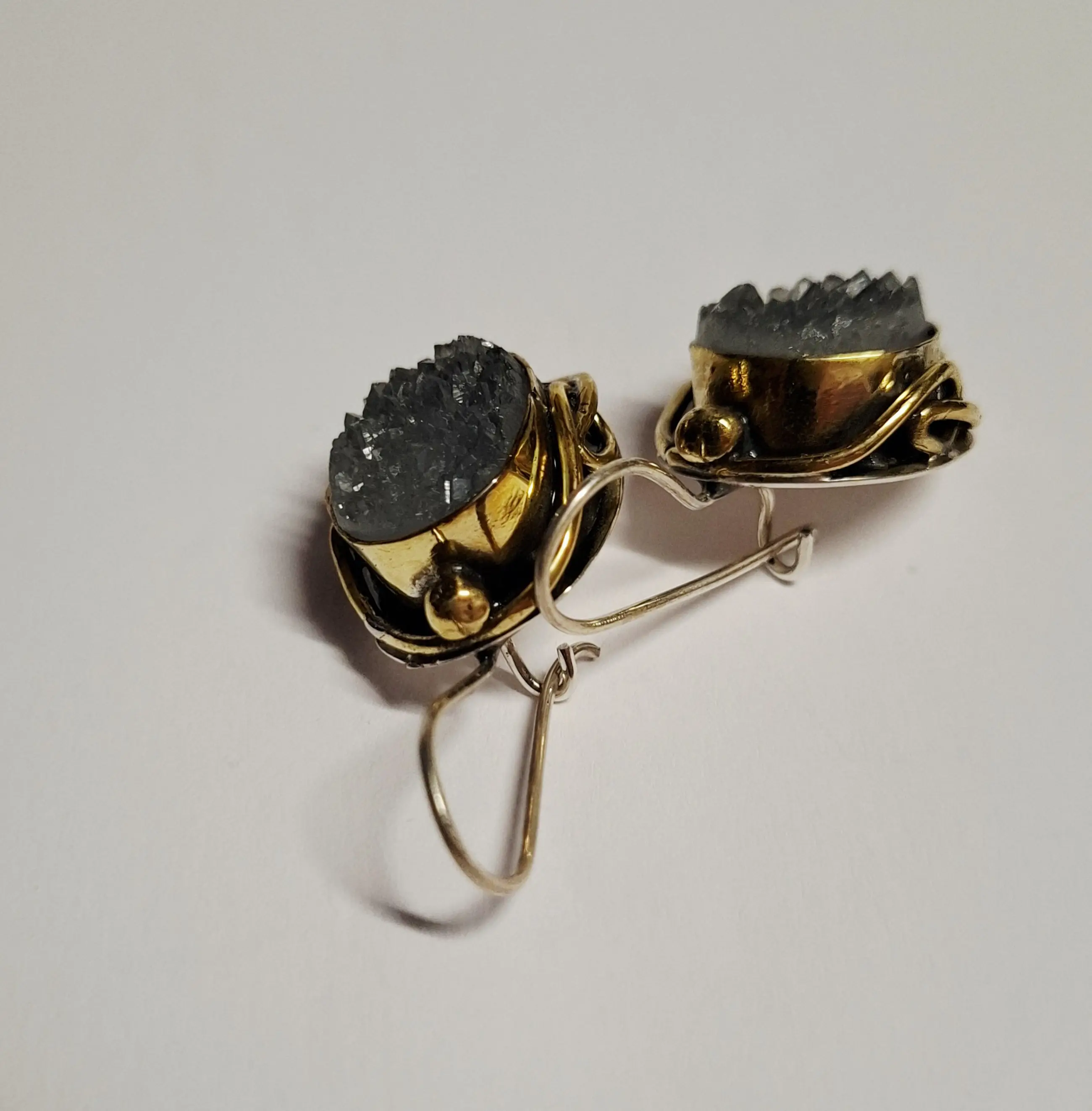 Nieuw 14 karaats op zilveren mooie oorbellen met Regenboog Amethist, een behandeld amethistkristal, staat bekend om zijn verhoogde vibratie en krachtige werking op het gebied van reiniging, bescherming en spirituele groei. De goud- of metaalbehandeling versterkt de natuurlijke eigenschappen van amethist, waardoor het een effectieve "aura cleaner" wordt en helpt bij het afweren van negatieve emoties en invloeden. circa 1990 Komt uit een prive Collectie nog nooit gedragen heeft altijd in een vitrine kastje gelegen eigenlijk is het nog nieuw voor een hanger uit 1990. Word goed verpakt en verzekerd verzonden met track en trace
