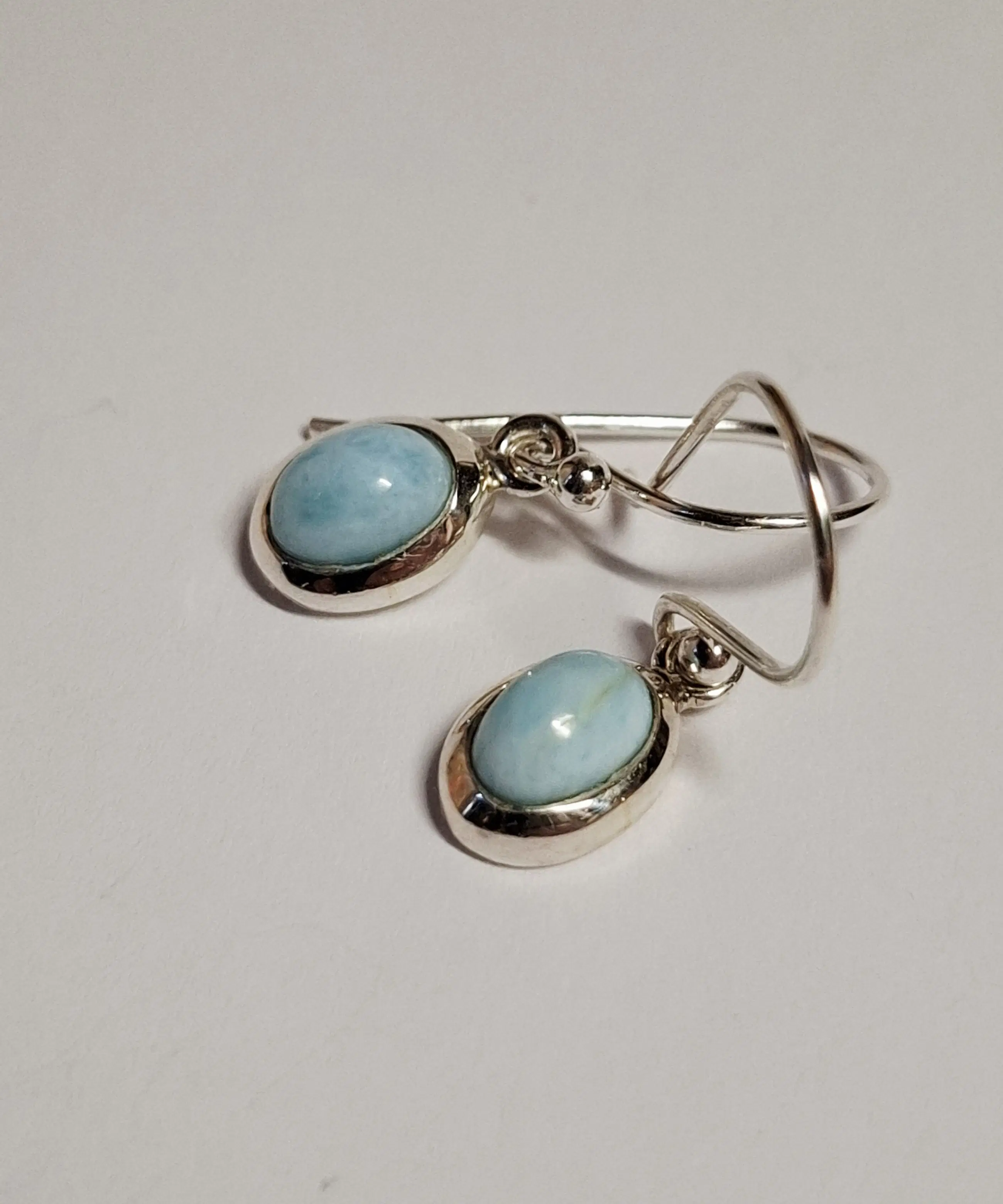 nieuw fijne zilveren oorbellen, elk ingelegd met een mooie geslepen larimar