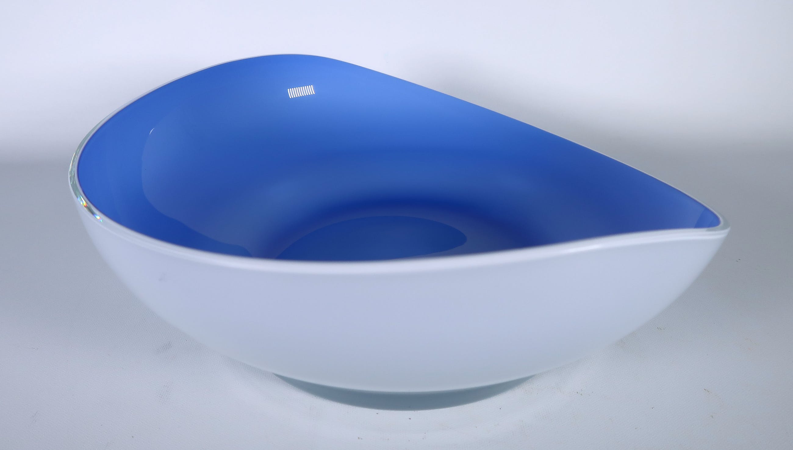 | De blauwe schaal heeft een klein chipje in de rand. | |||