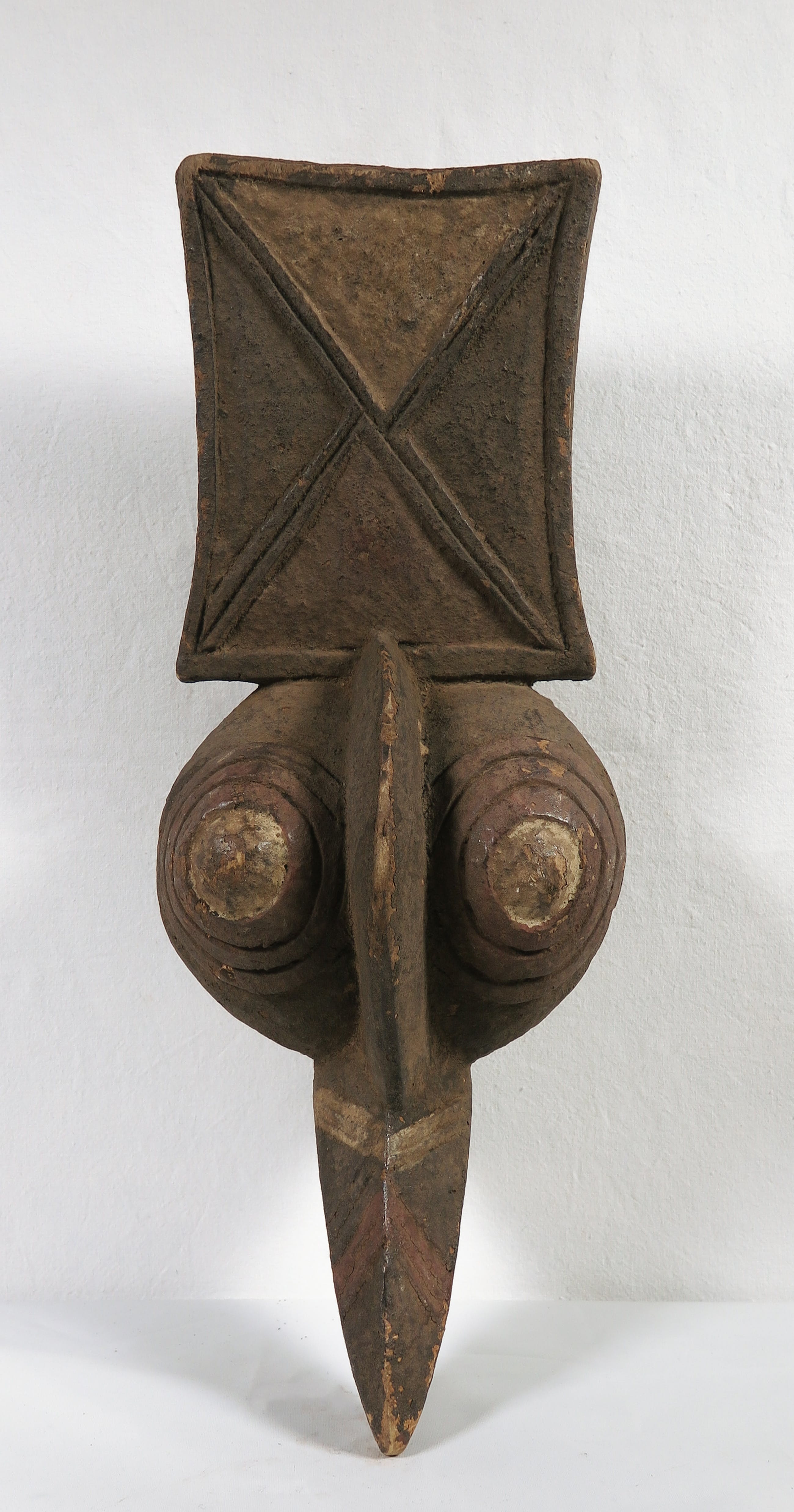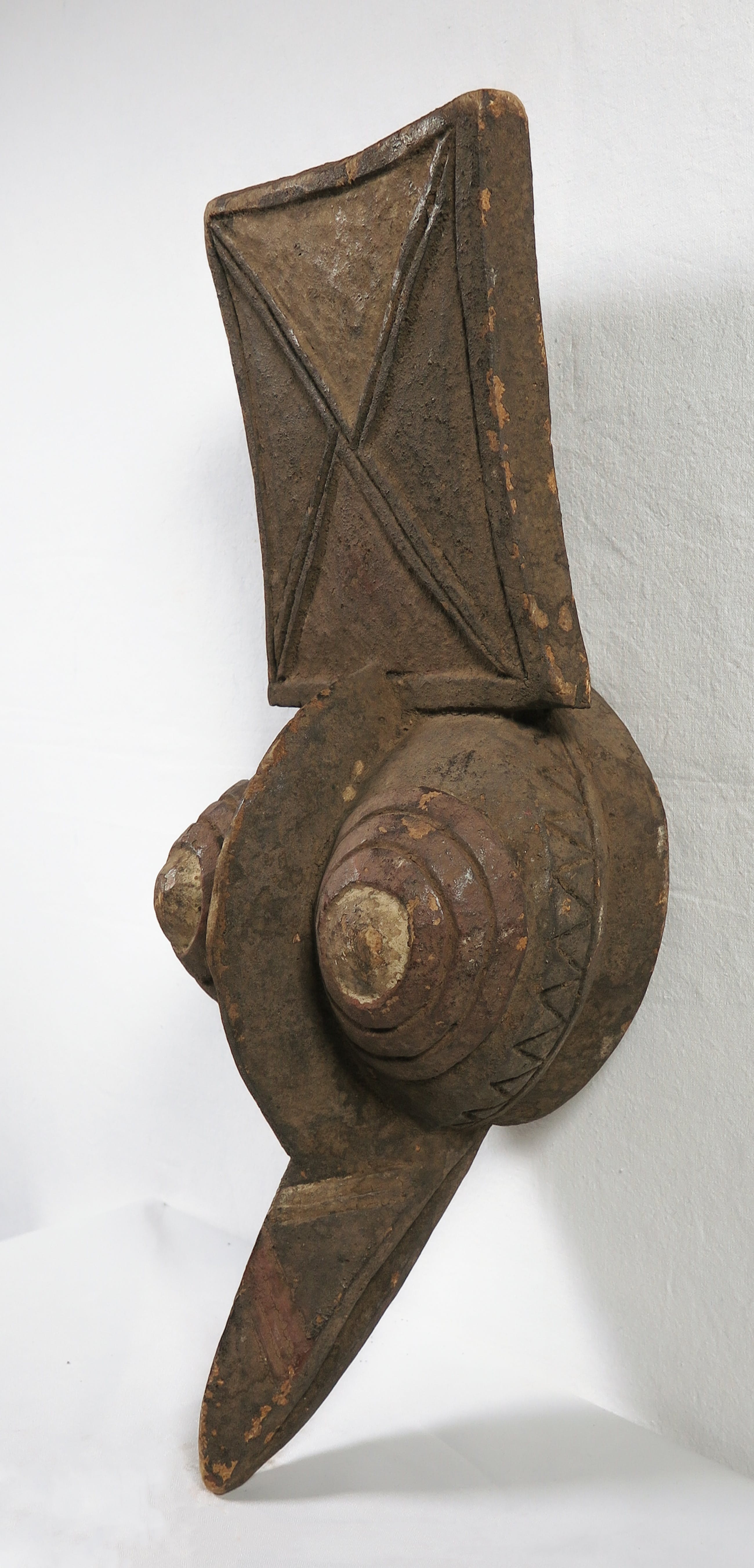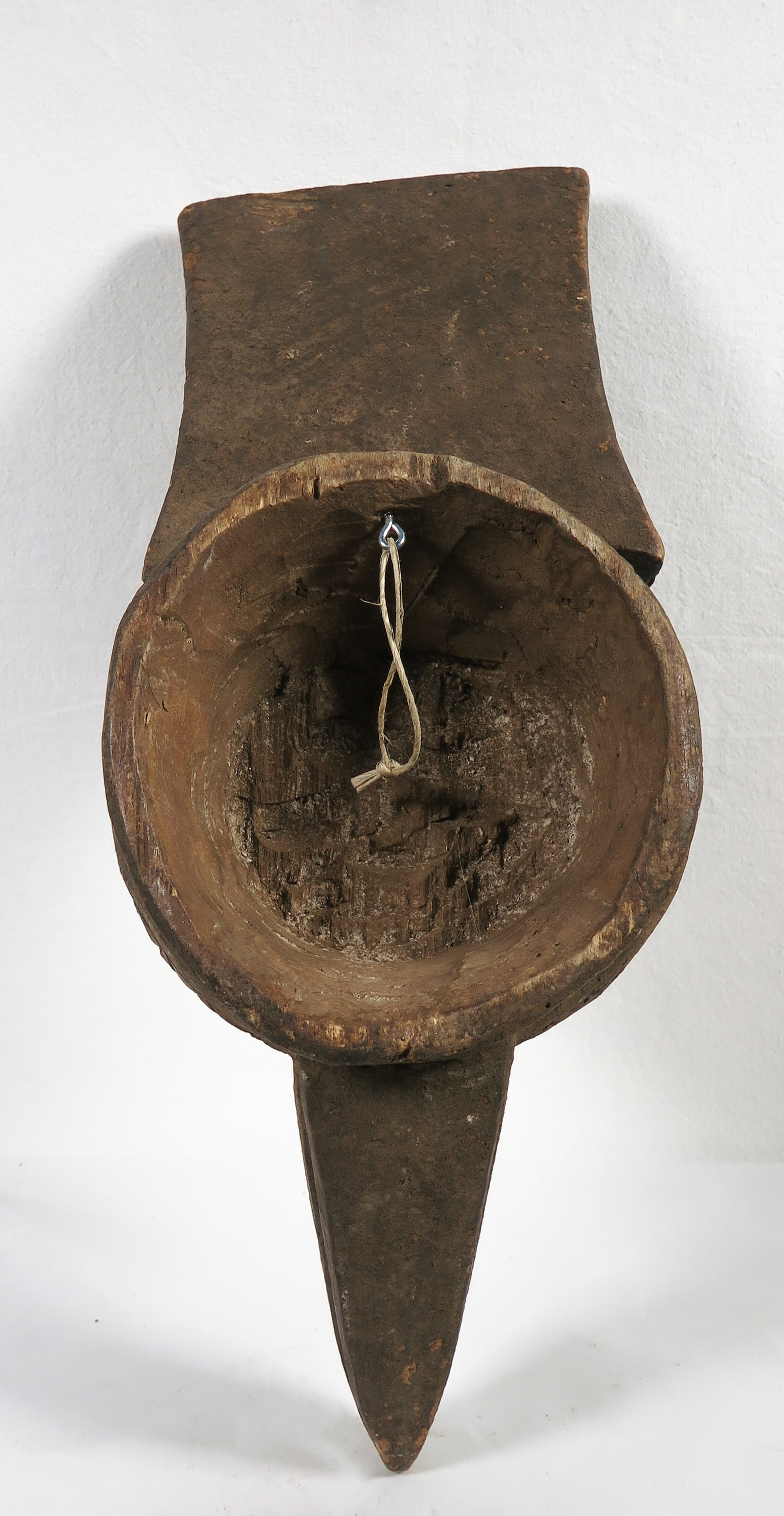 Houten gestoken vogel opzetmasker met vierkante kroon, van de Nunuma stam.