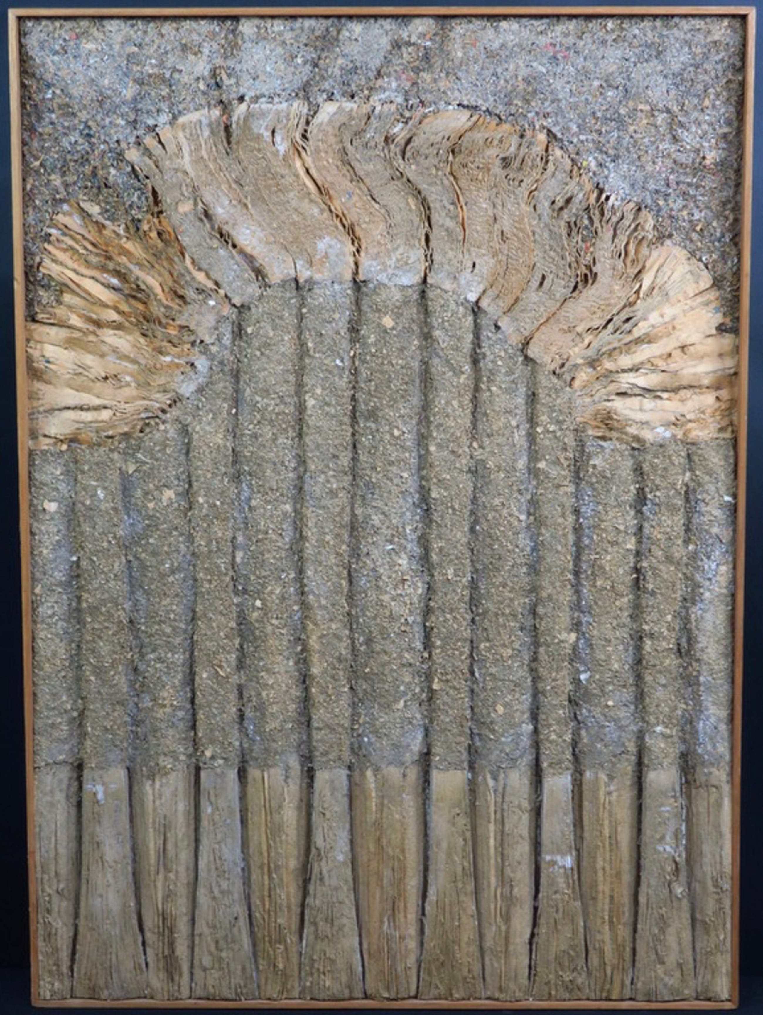 Mooi, letterlijk zwaar werk van de Turks/Nederlandse beeldhouwer Nur Tarim. Het werk is volledig opgebouwd uit oude telefoongidsen, waarmee een soort sculpturaal reliëf is gemaakt, die misschien doet denken aan een boomenrij. De telefoongidsen zijn in repen gescheurd en in een baklijst geschikt, de lijst is verder opgevuld met versnipperd/verpulverd papier uit telefoongidsen, gemengd met lijm.