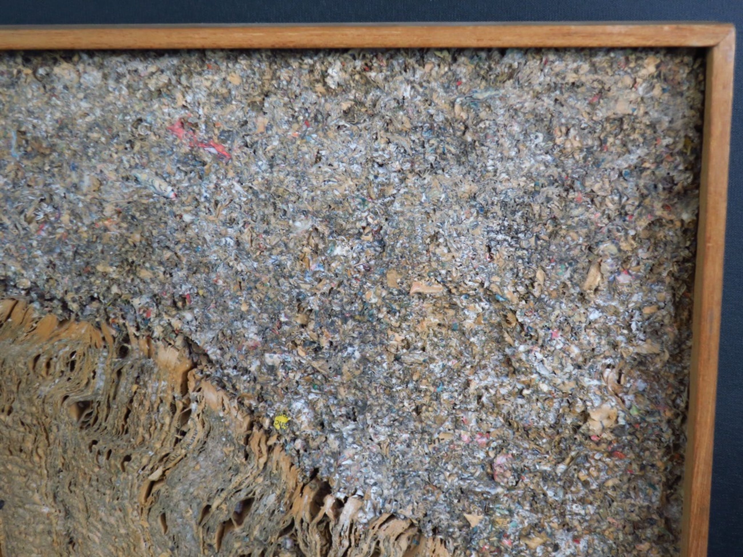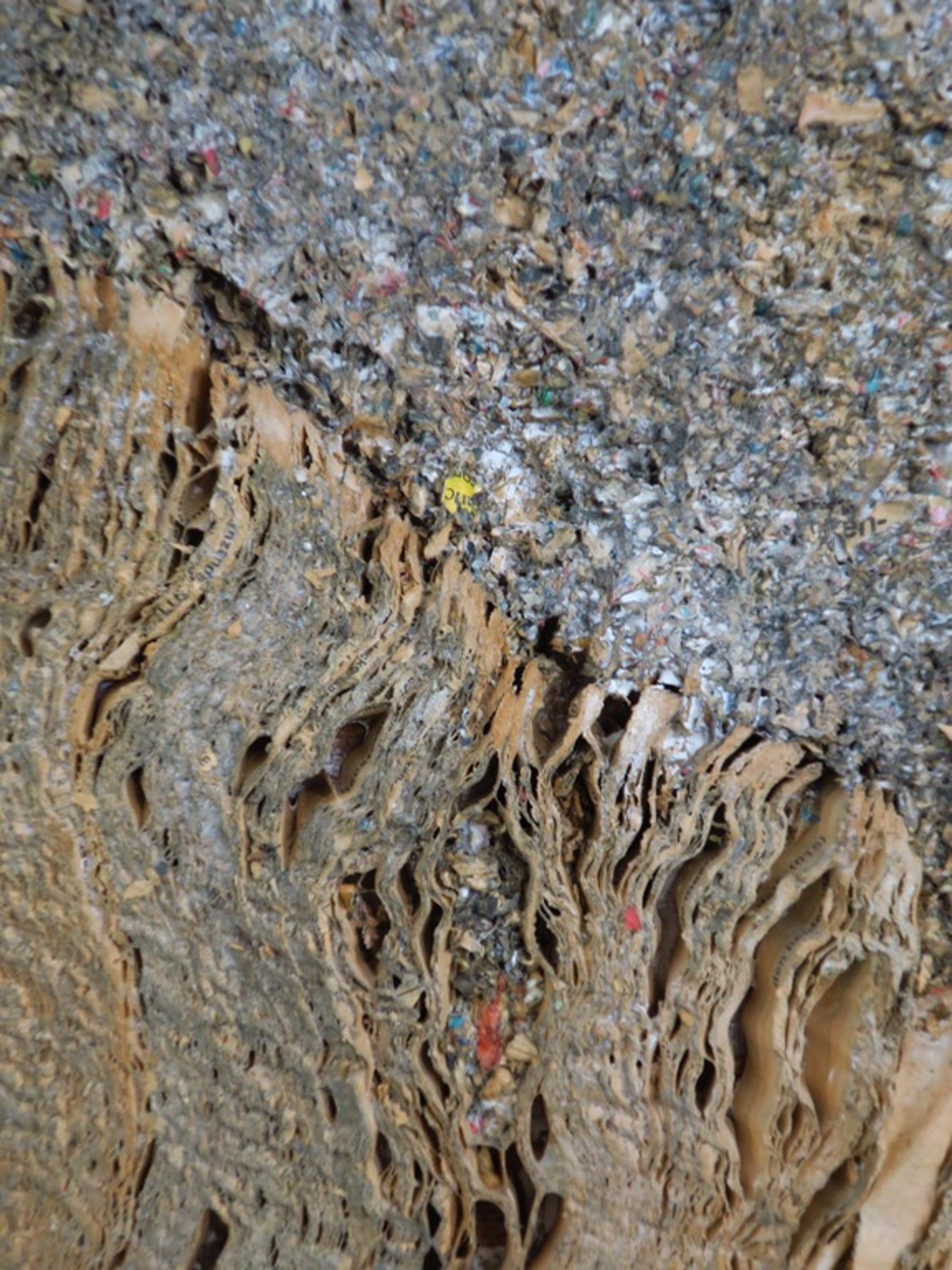 Materiaal: Gemengde techniek, o.a. papier(pulp), lijm in baklijst geschikt.