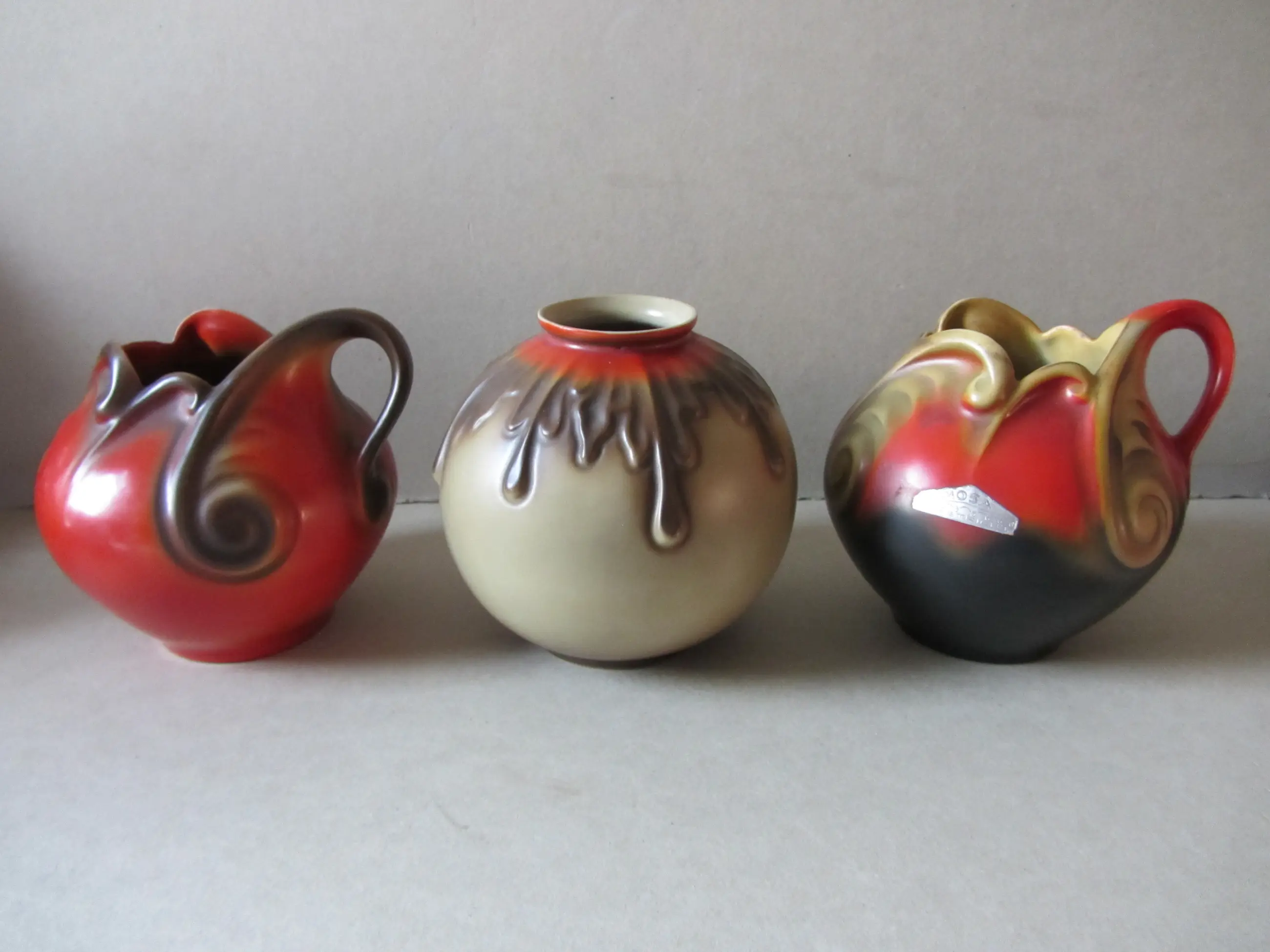 2 kannen en een vaas van Mosa Maastricht, geproduceerd in de jaren 30. In zeer goede staat.