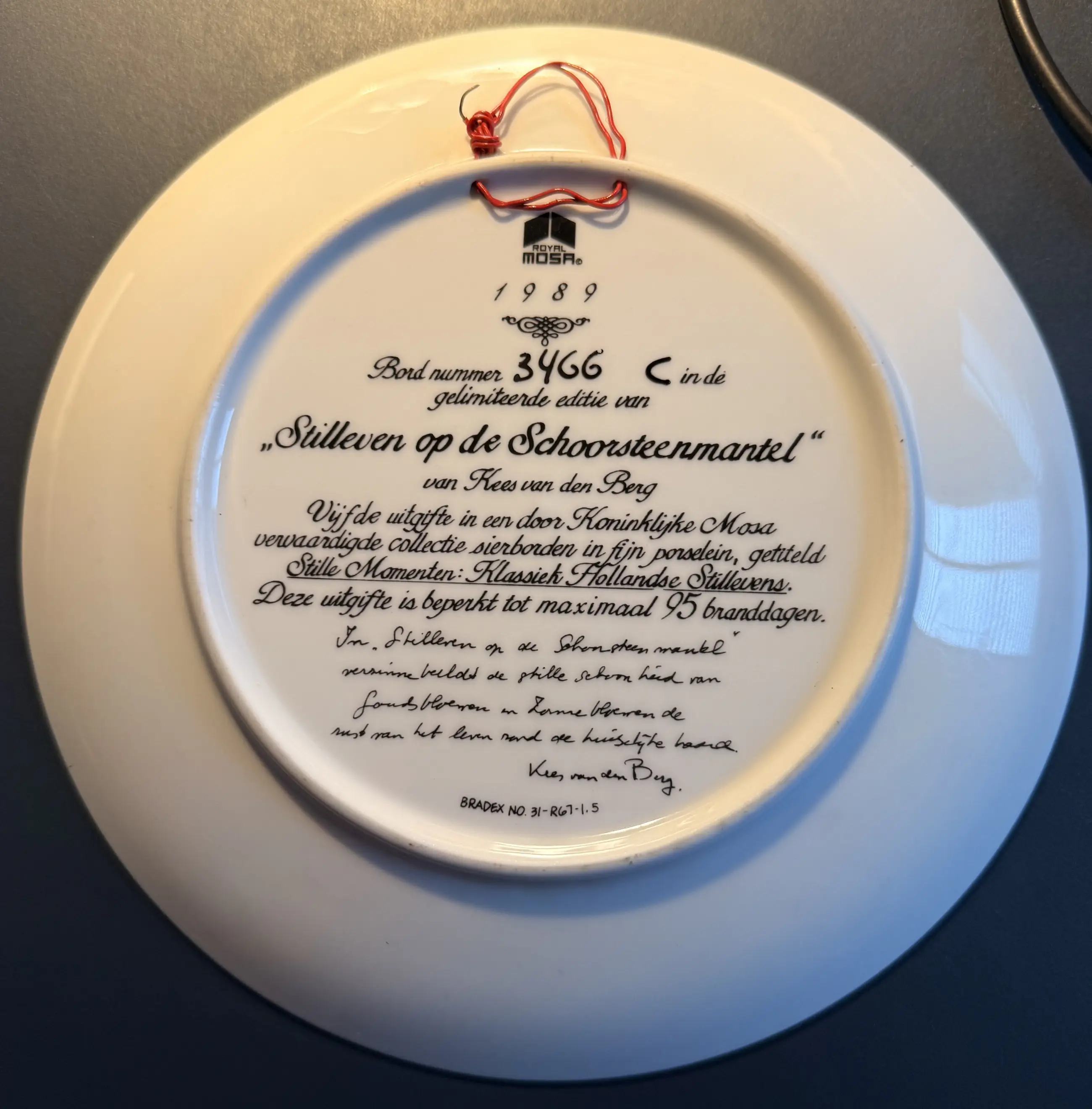 Gelimiteerde Editie van Stilleven op de Schoorsteenmantel - Kees van den Berg Bordnr: 3466 C - Vijfde Uitgifte (1989)