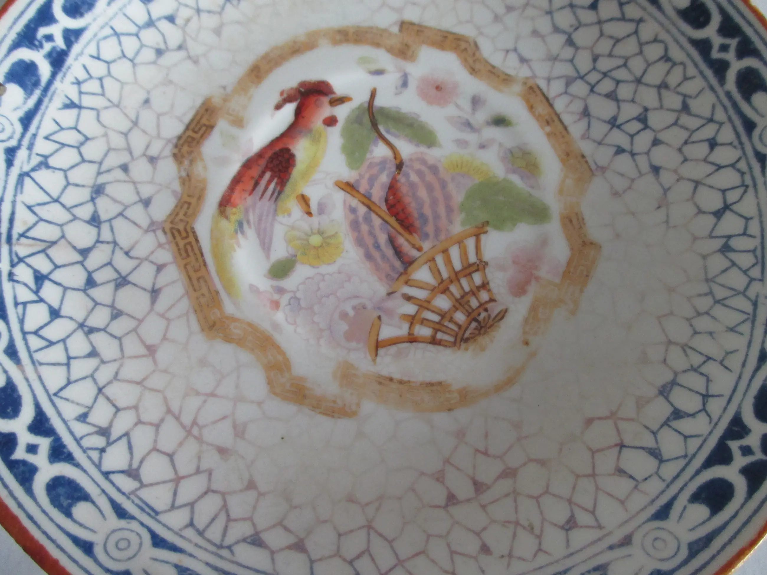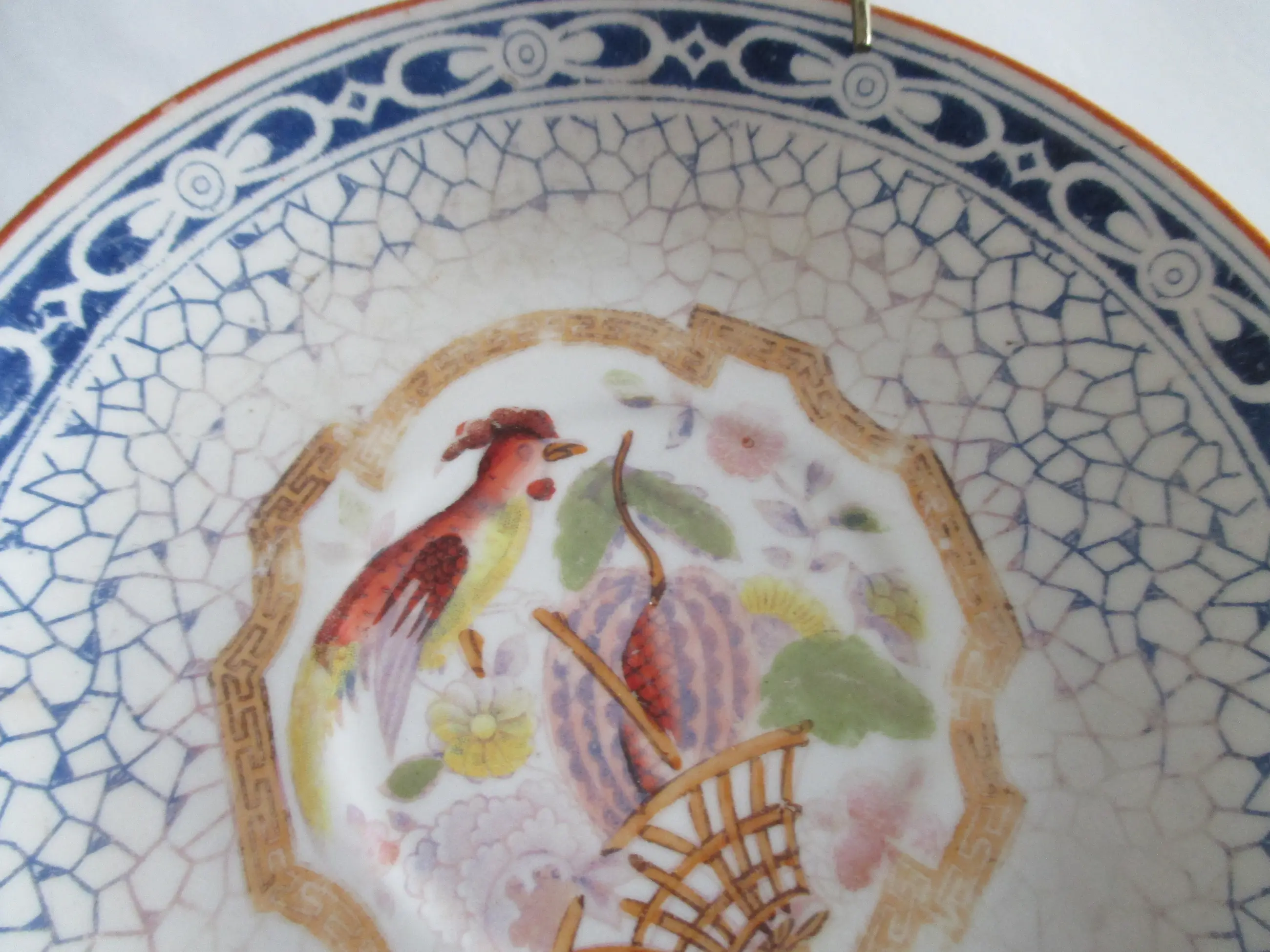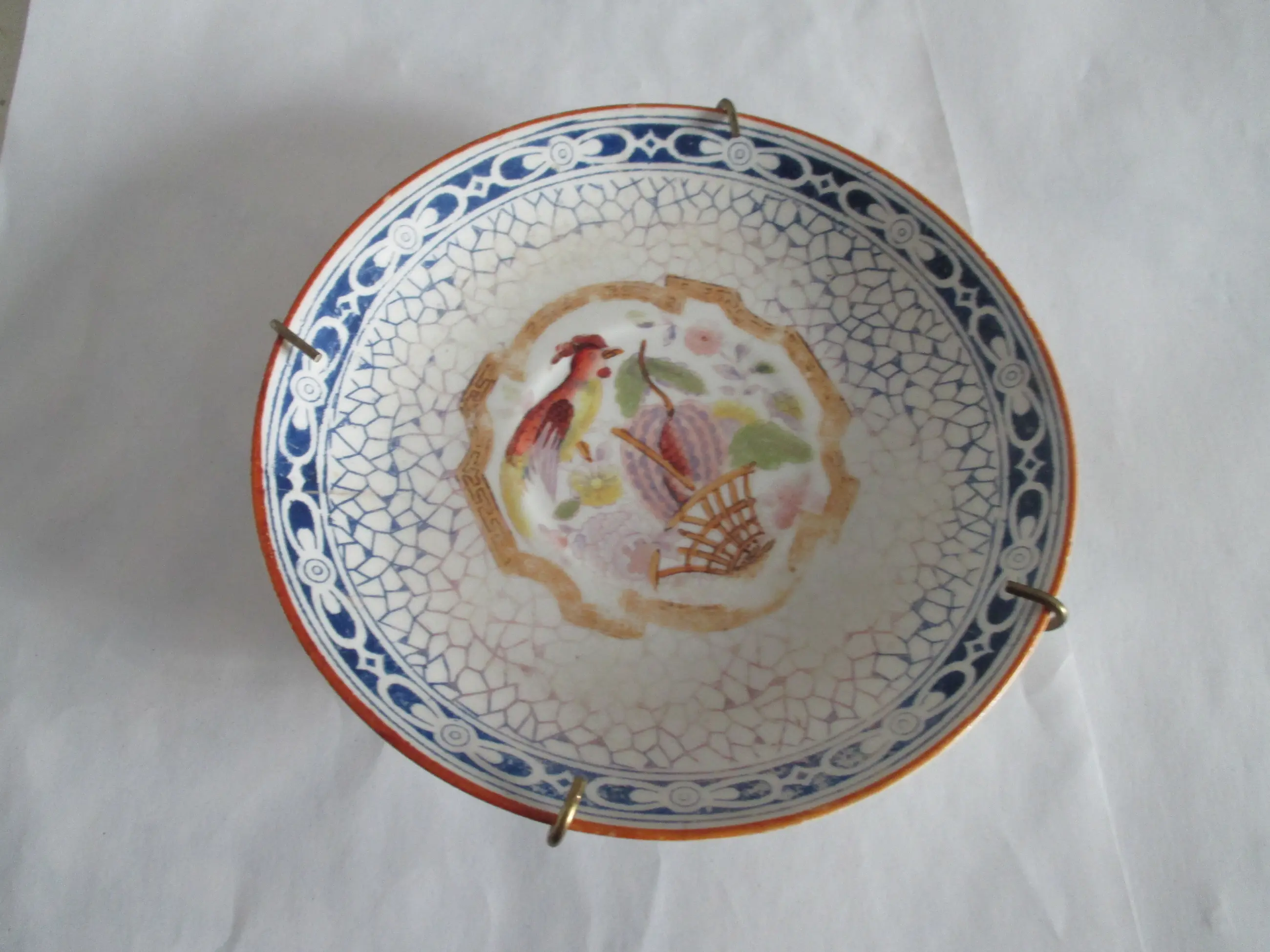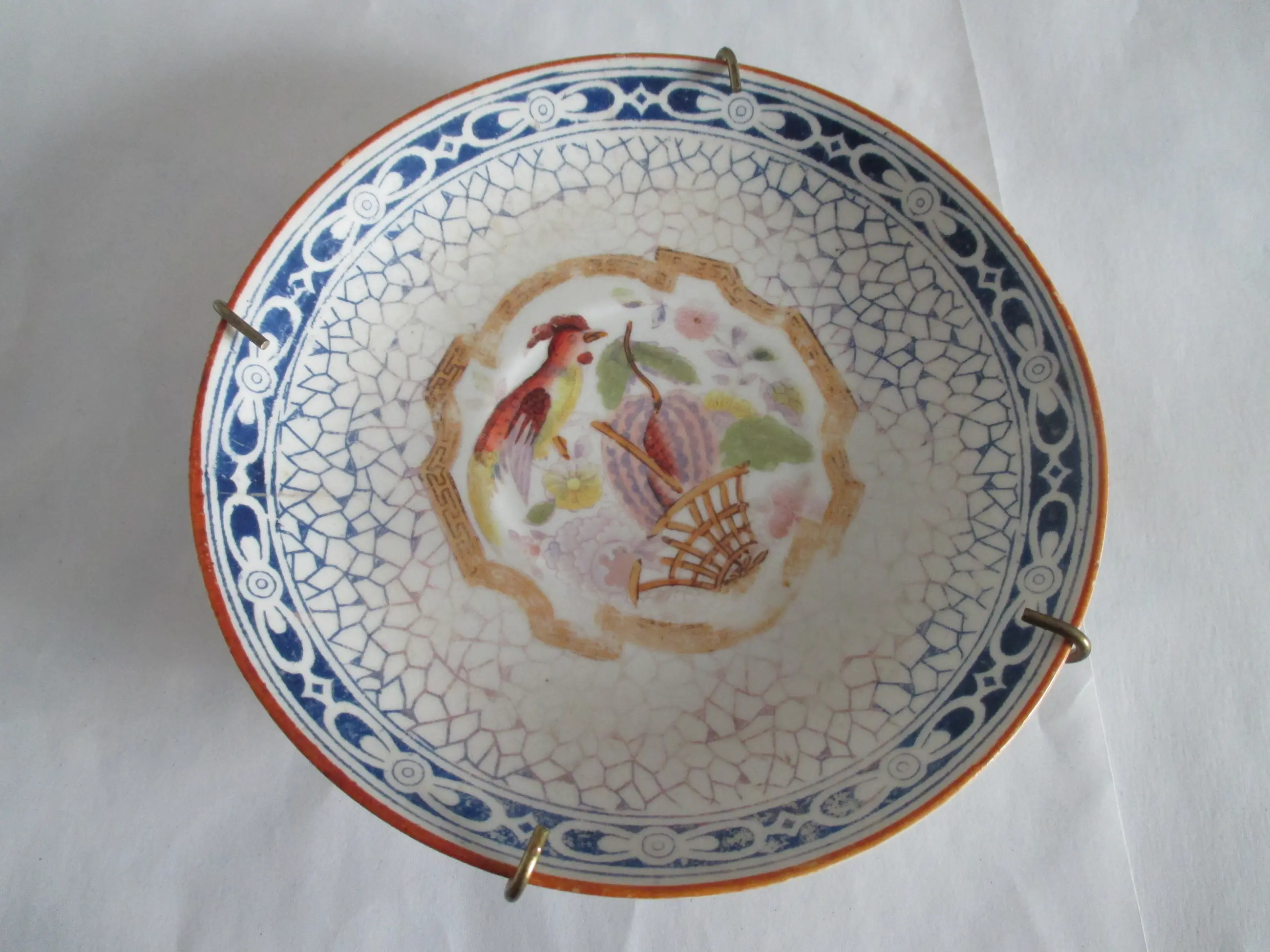 Wandbordje Louis Regout Mosa Maastricht, porselein, decor 601. Motief paradijsvogel.