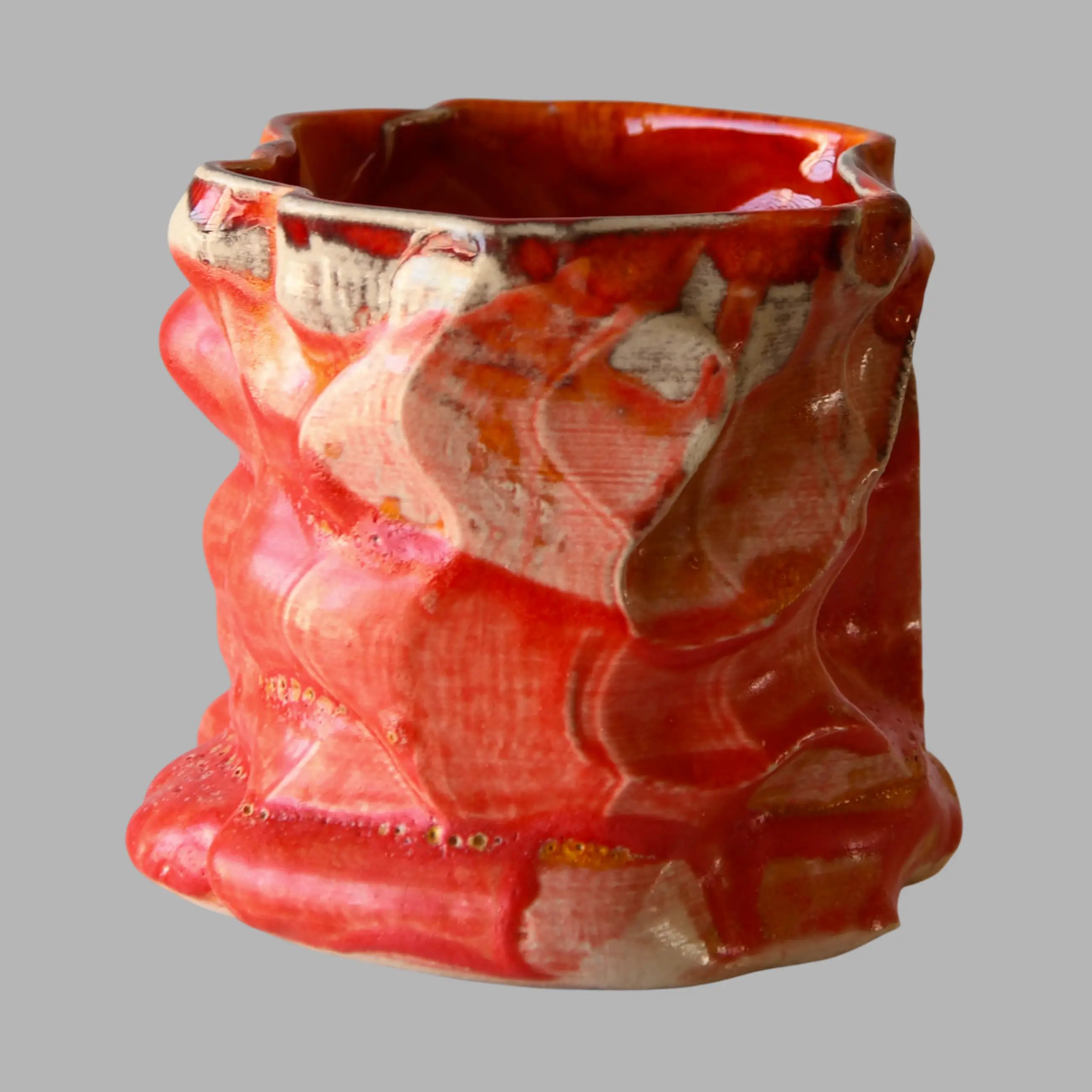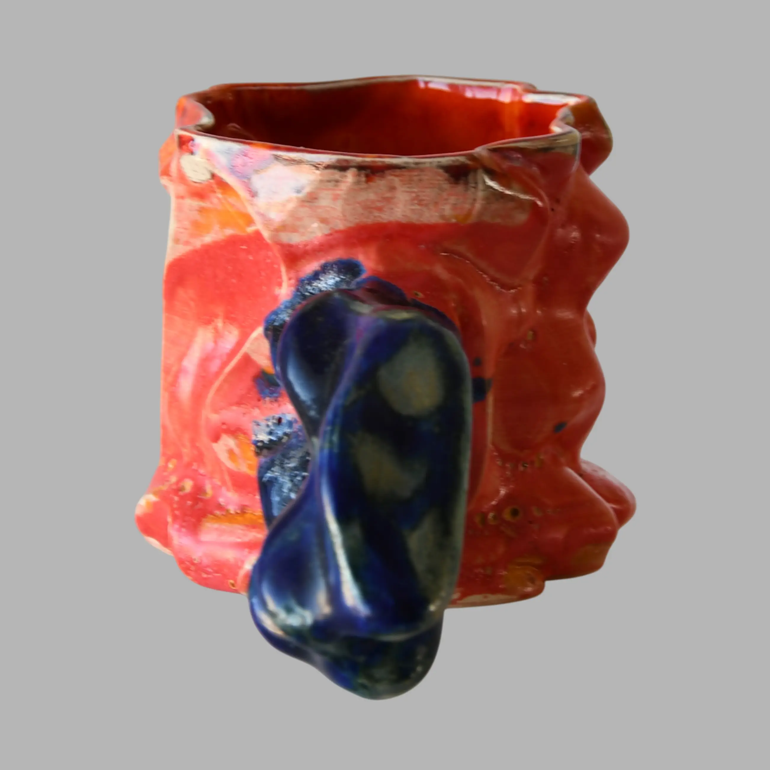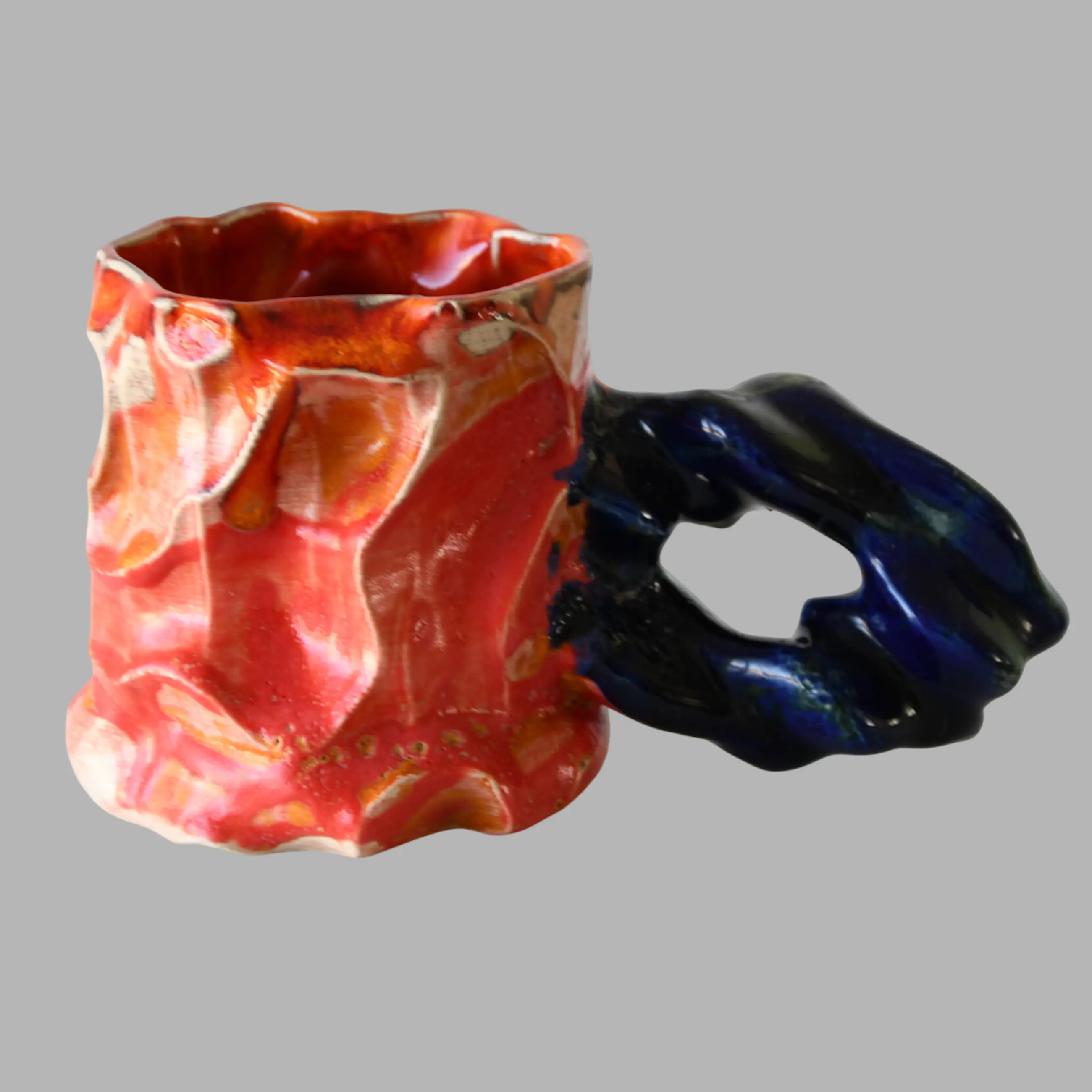 Een unica sculpturale 3D keramieken beker van de kunstenaar Octave Rimbert-Rivière (1988), geboren in Frankrijk. Hij combineert glitch-esthetiek met de Japanse porselein traditie.
