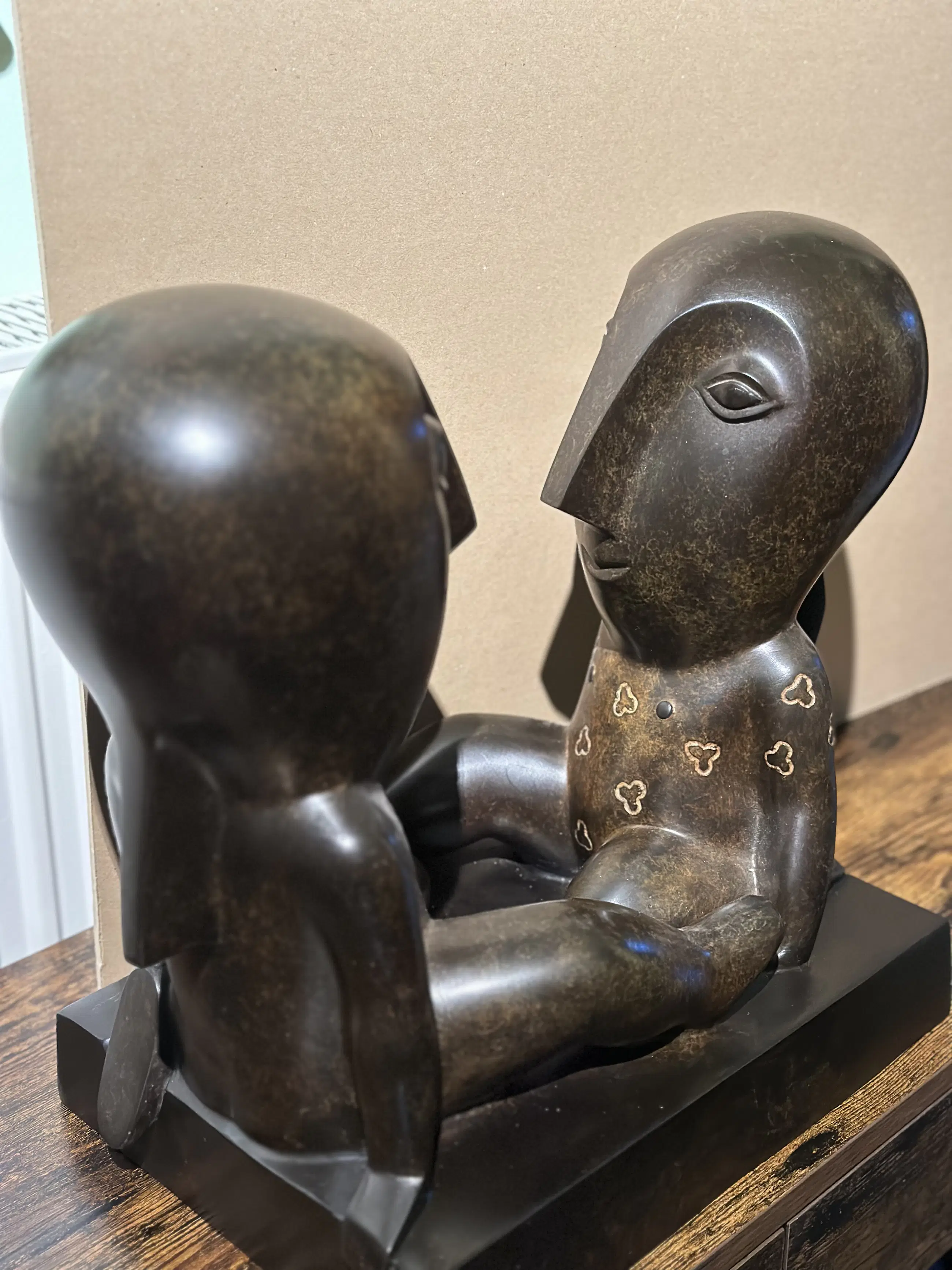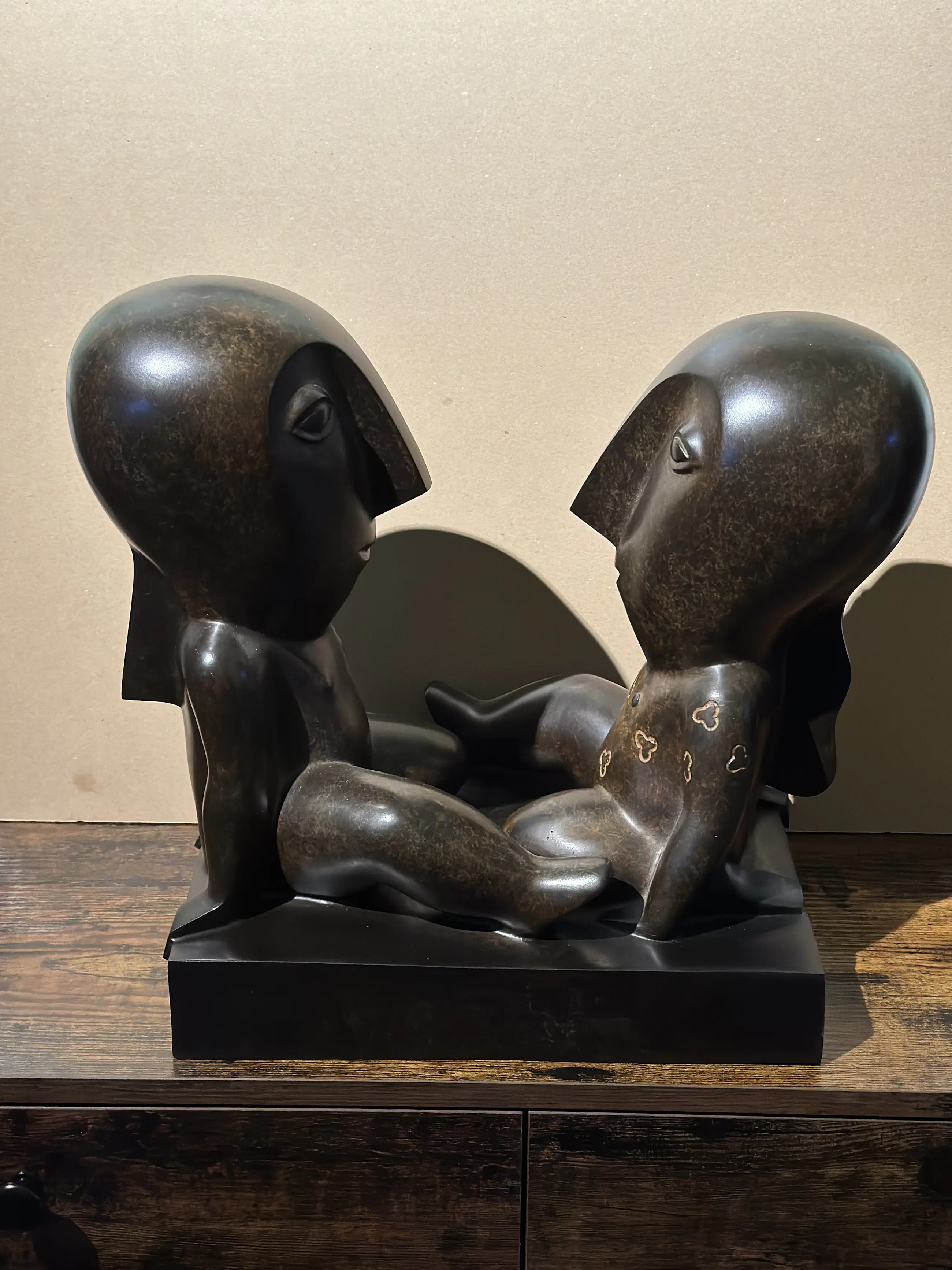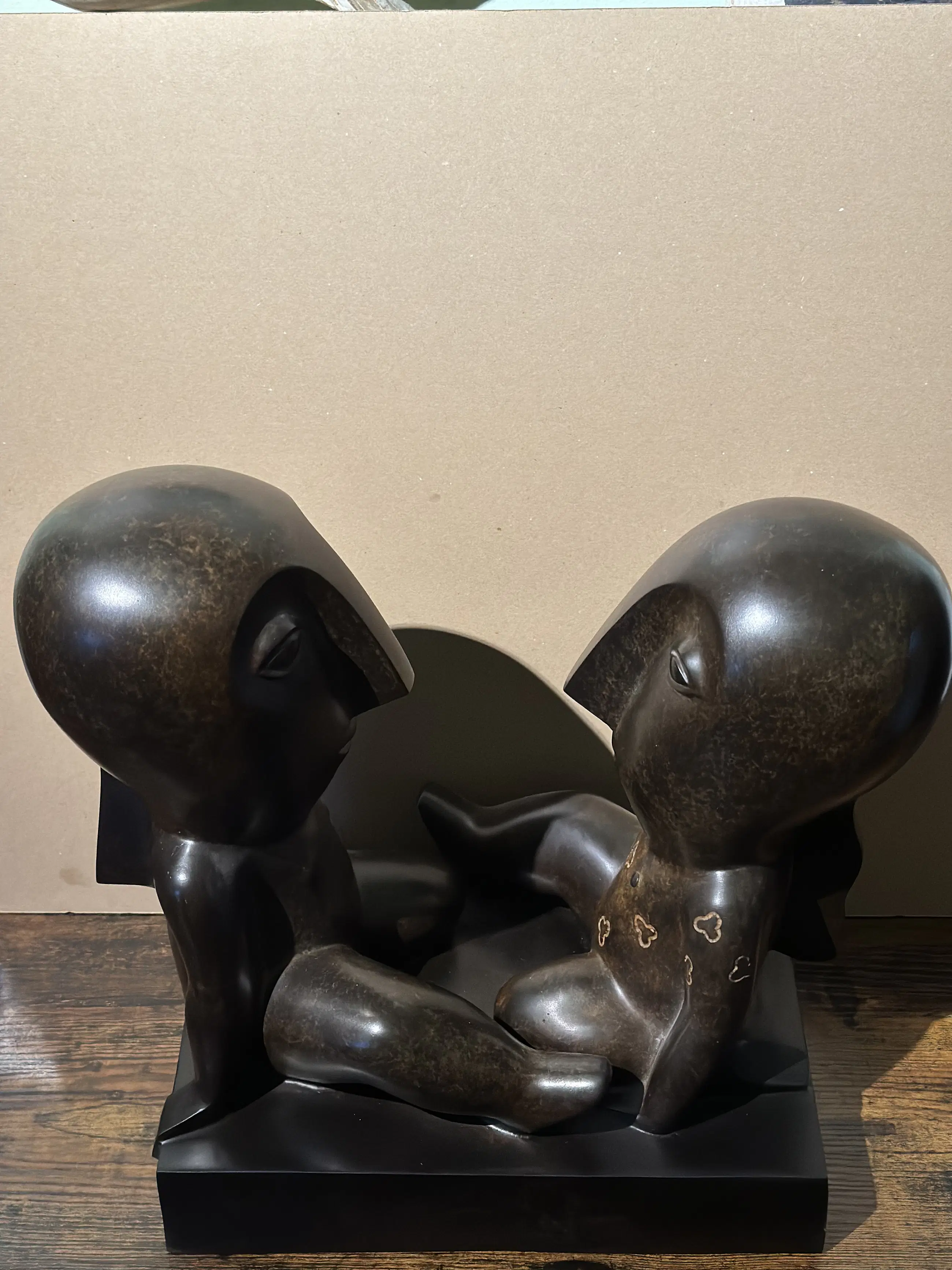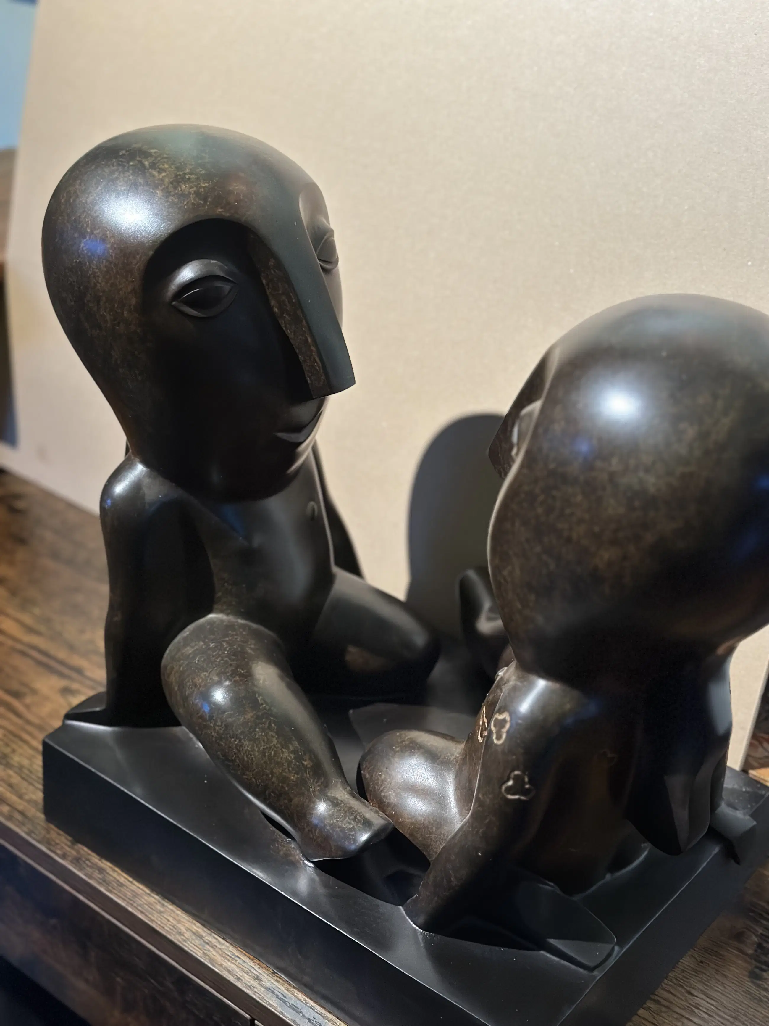 Echtheidscertificaat aanwezig + aankoopfactuur t.w.v. € 7900. Odile Kinart werd in 1945 in Belgisch Limburg geboren en volgde een sculptuuropleiding aan de kunstacademie van Genk. Haar speciale belangstelling voor letterkunde uitte zij als taalleerkracht in het middelbaar onderwijs. De voeling met poëzie kon enkel nog meer expressie vinden in beeldende kunsts. Precolumbiaanse en Afrikaanse culturen hebben Odile Kinart diep geïnspireerd. Vanaf 1990 werd deze Vlaamse artieste bekend door haar creaties in keramiek. Sinds 1995 verkiest de kunstenares brons als beeldend materiaal. Later werkte ze ook met glas en polyester en sedert kort ook met staal.