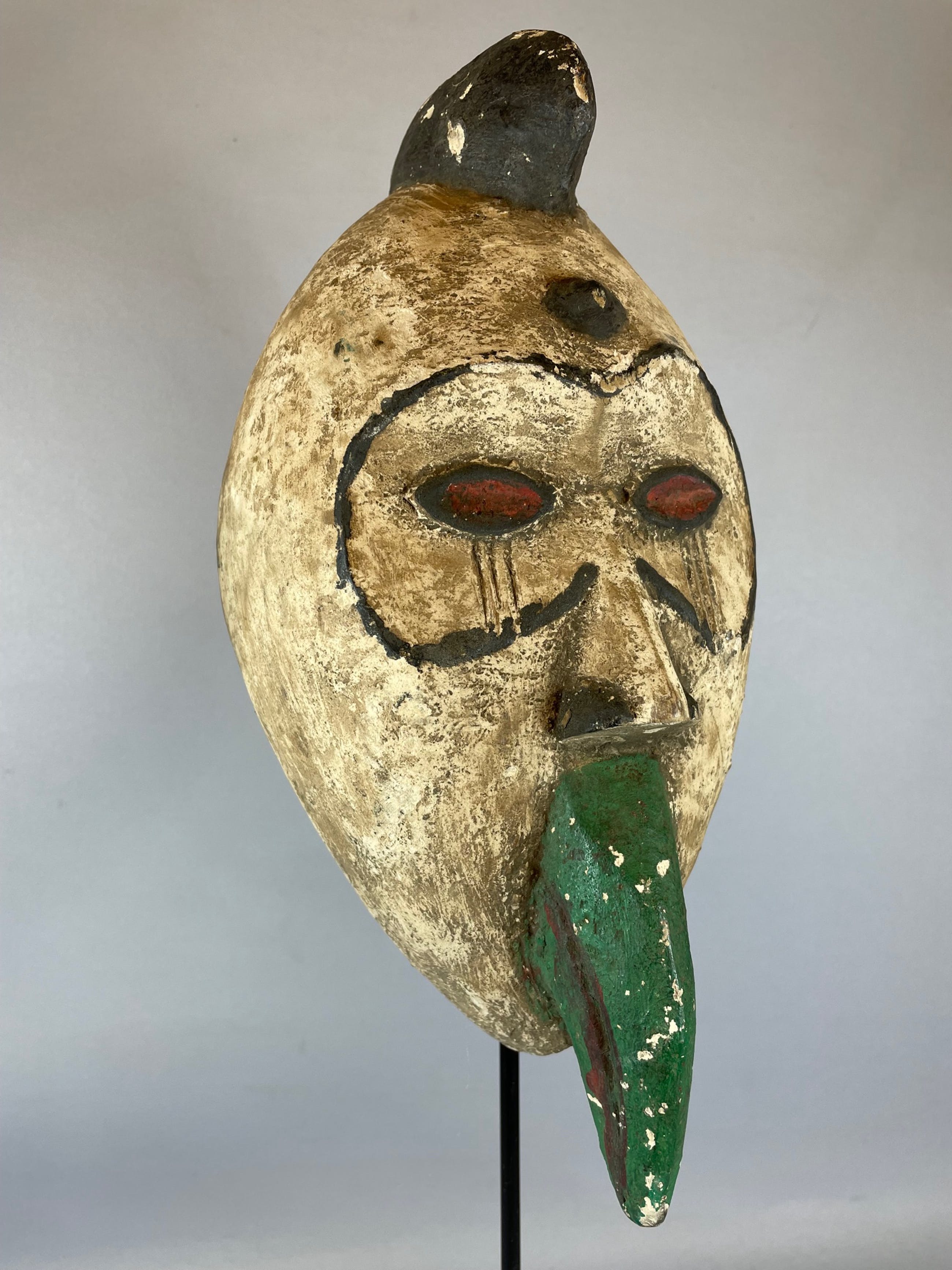 The Ogoni live to the east of the Niger delta, in a fertile area rich in petroleum resources. Despite the efforts of Christian missionaries, they have retained a vital, regionally varied masquerading activity that is in part deeply rooted in their own tradition and in part adopted from neighboring ethnic groups such as the Ibibio or Ijo. Ogoni mask dances serve a great variety of functions, which, depending on the region, can extend from pure entertainment to participation in funeral services and harvest festivals, all the way to the implementation of judicial verdicts. The masks of wild animals are danced, acrobatically, on the occasion of agrarian rituals.