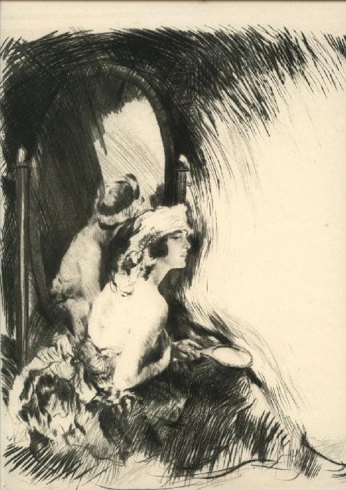 O.J. Bauer - Carl Josef Bauer Frau vor dem Spiegel Radierung nicht signiert