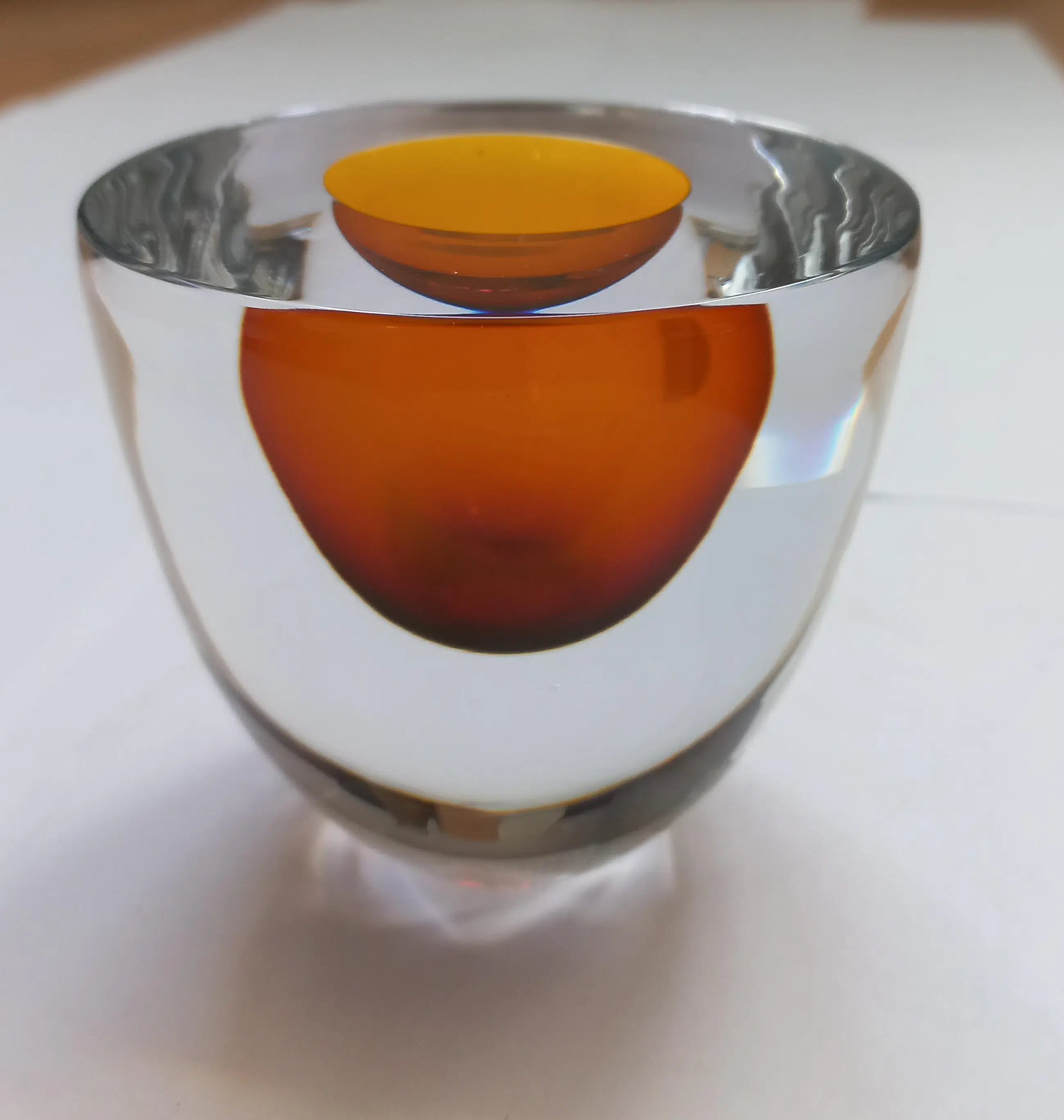 Amberkleurige multiple Oplage 5/10 Hoogte 8,8 cm, diameter 8,5 cm Met echtheidscertificaat.