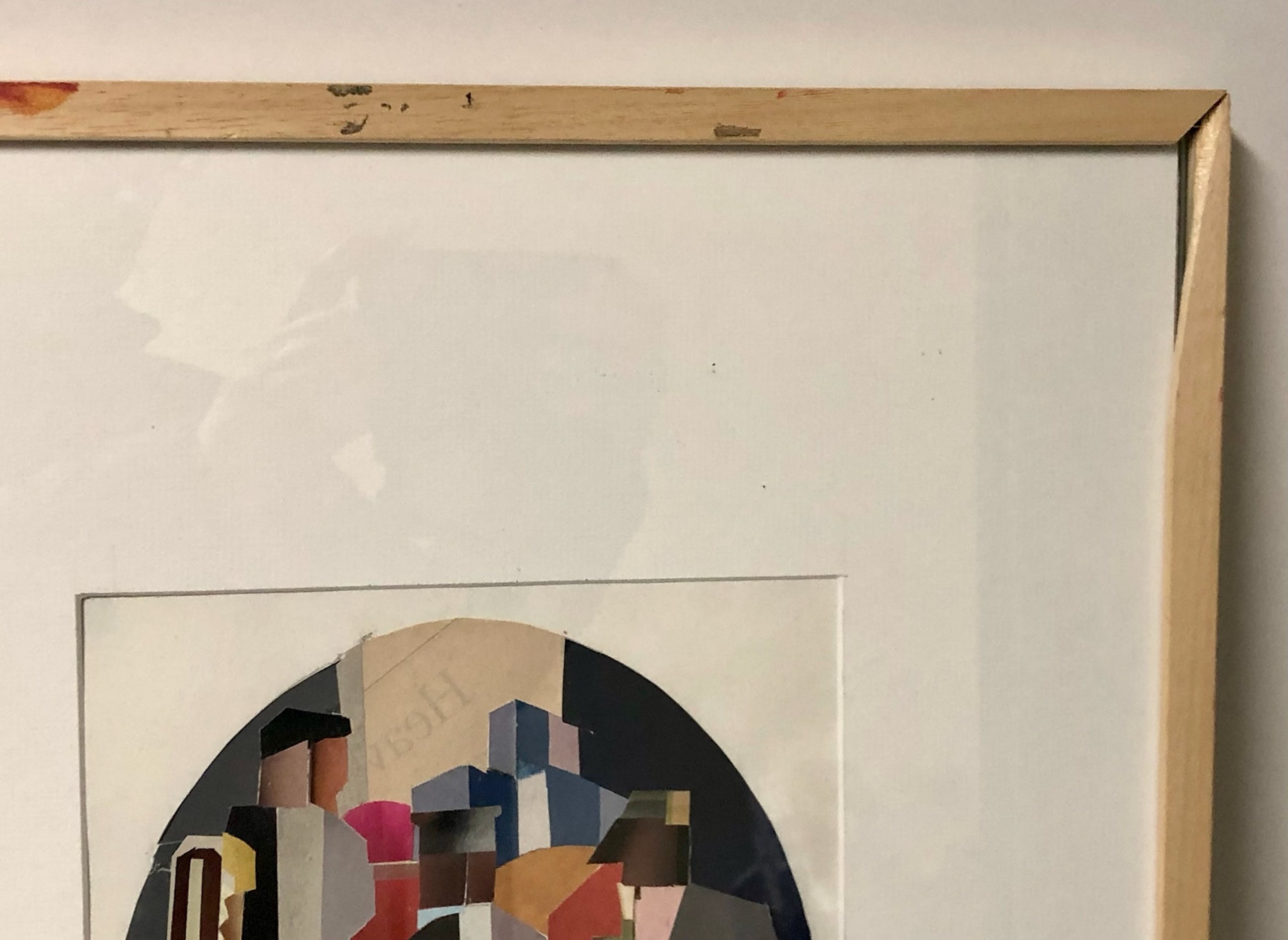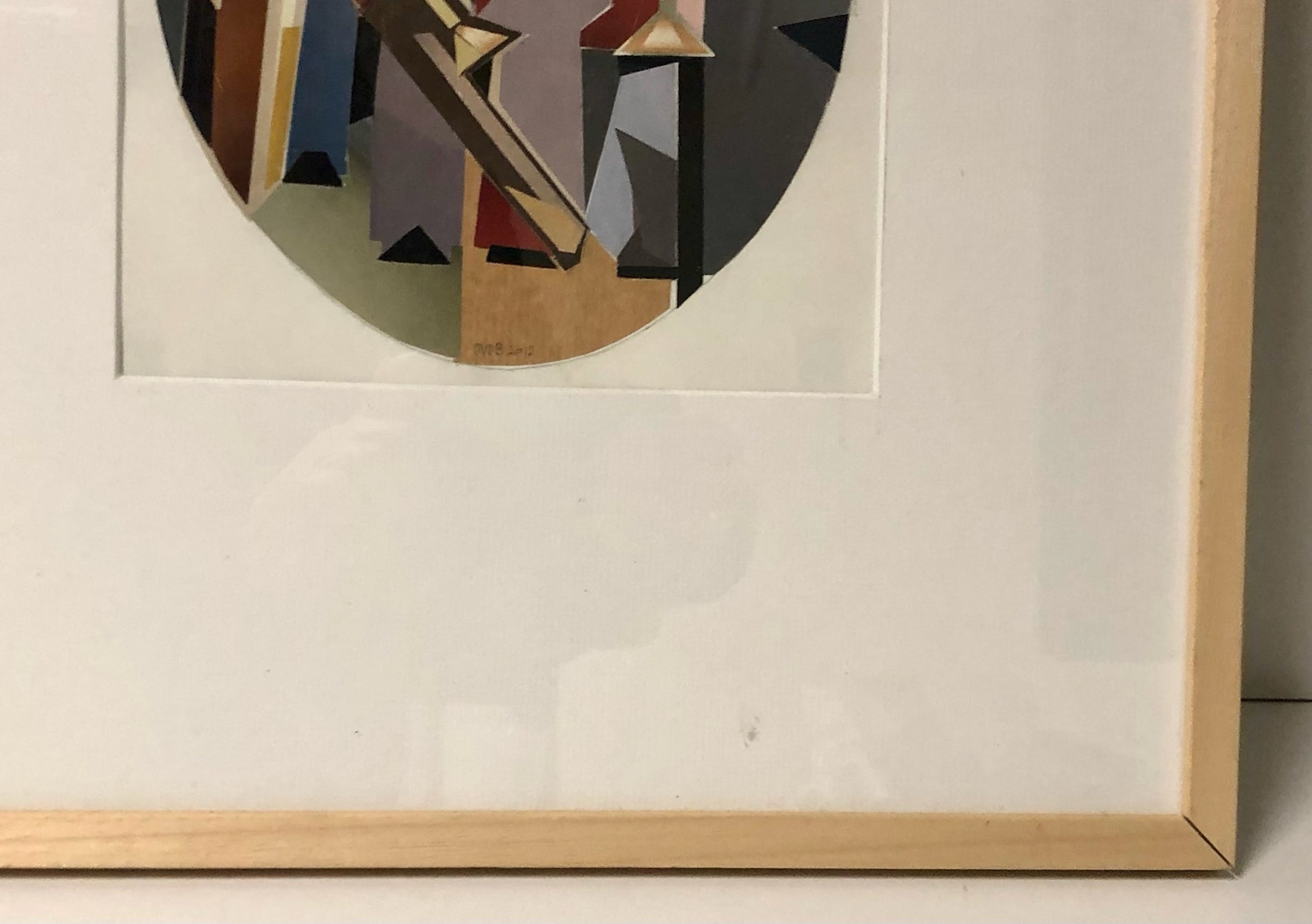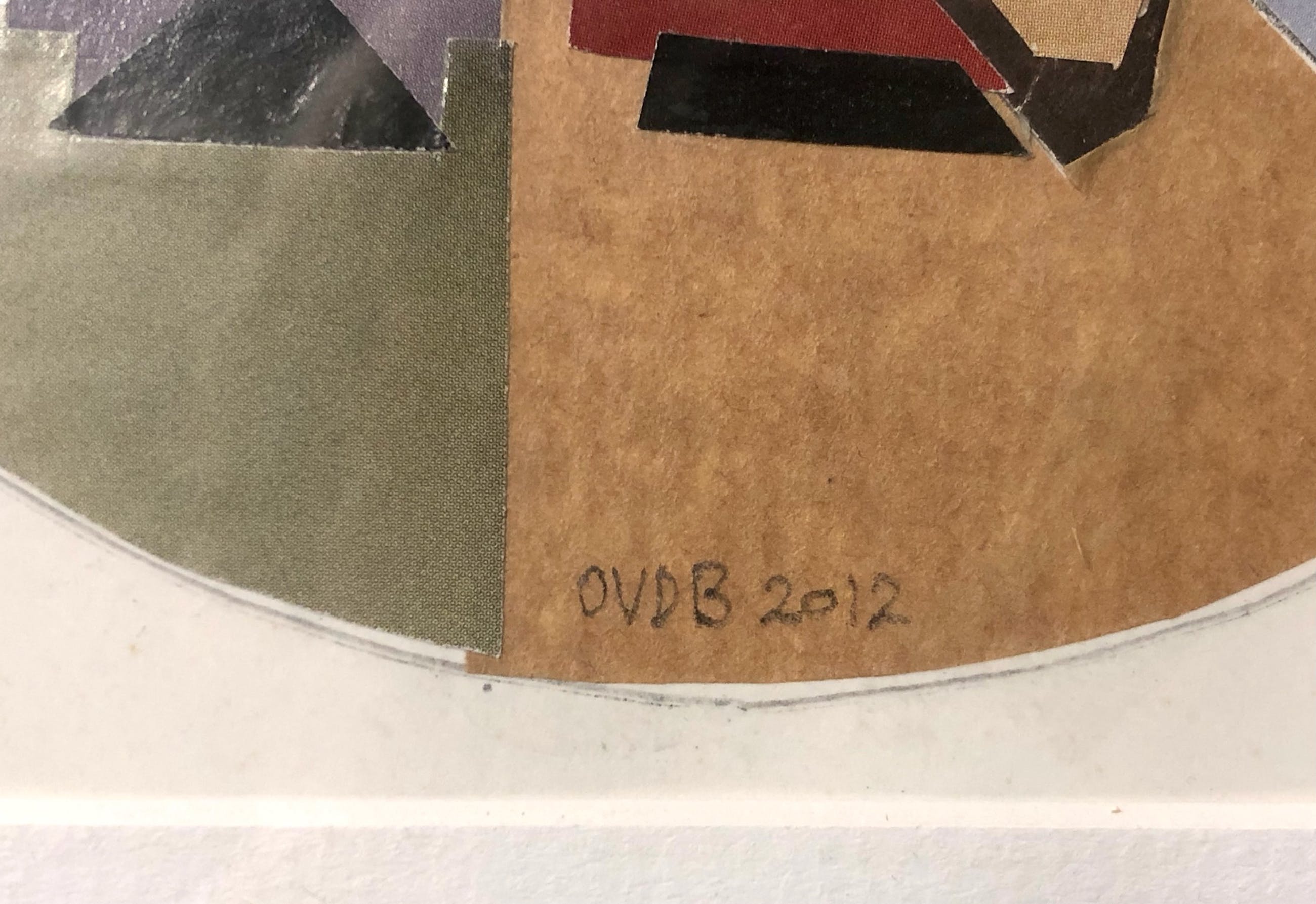 Fraaie collage uit 2012 van de Amsterdamse kunstenaar Olaf van der Beek. Het gaat om een papiercollage geplakt op een papieren ondergrond.