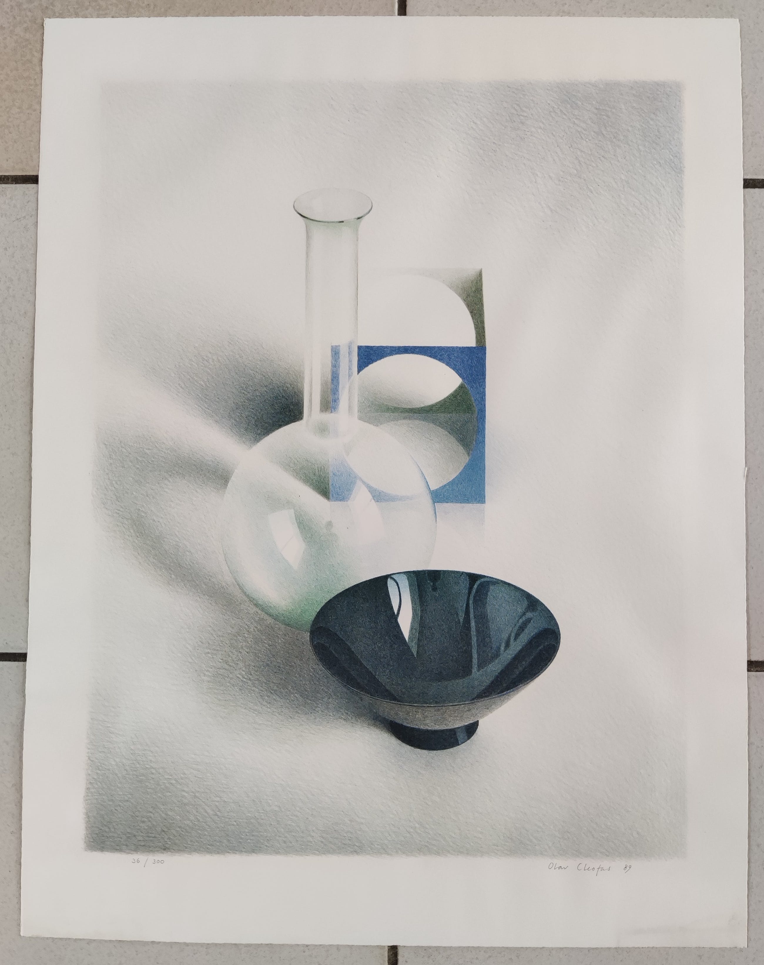 Kleurenlitho. Potlood gesigneerd en gedateerd '89 rechtsonder. Genummerd 36/300 linksonder. Beeldmaat 54x41 cm. Bladmaat 65x50 cm. Losbladig. Olav Cleofas van Overbeek werd geboren te Amersfoort op 30 mei 1946. Opleiding aan de Gerrit Rietveld Academie te Amsterdam 1963-1967 - richting vrije grafiek. Leerling van Ap Sok, Henk Broer, Lex Metz en T.J.H. Loontjes. Werkte in 1987 in Thun (Zwitserland) aan een 3-tal litho's in het atelier van Ernst Hanke. Lid van Fryske Kultuerried. Aquarellist, Graficus en schilder van landschap (als genre), portret en stilleven. Tevens restaurator.
