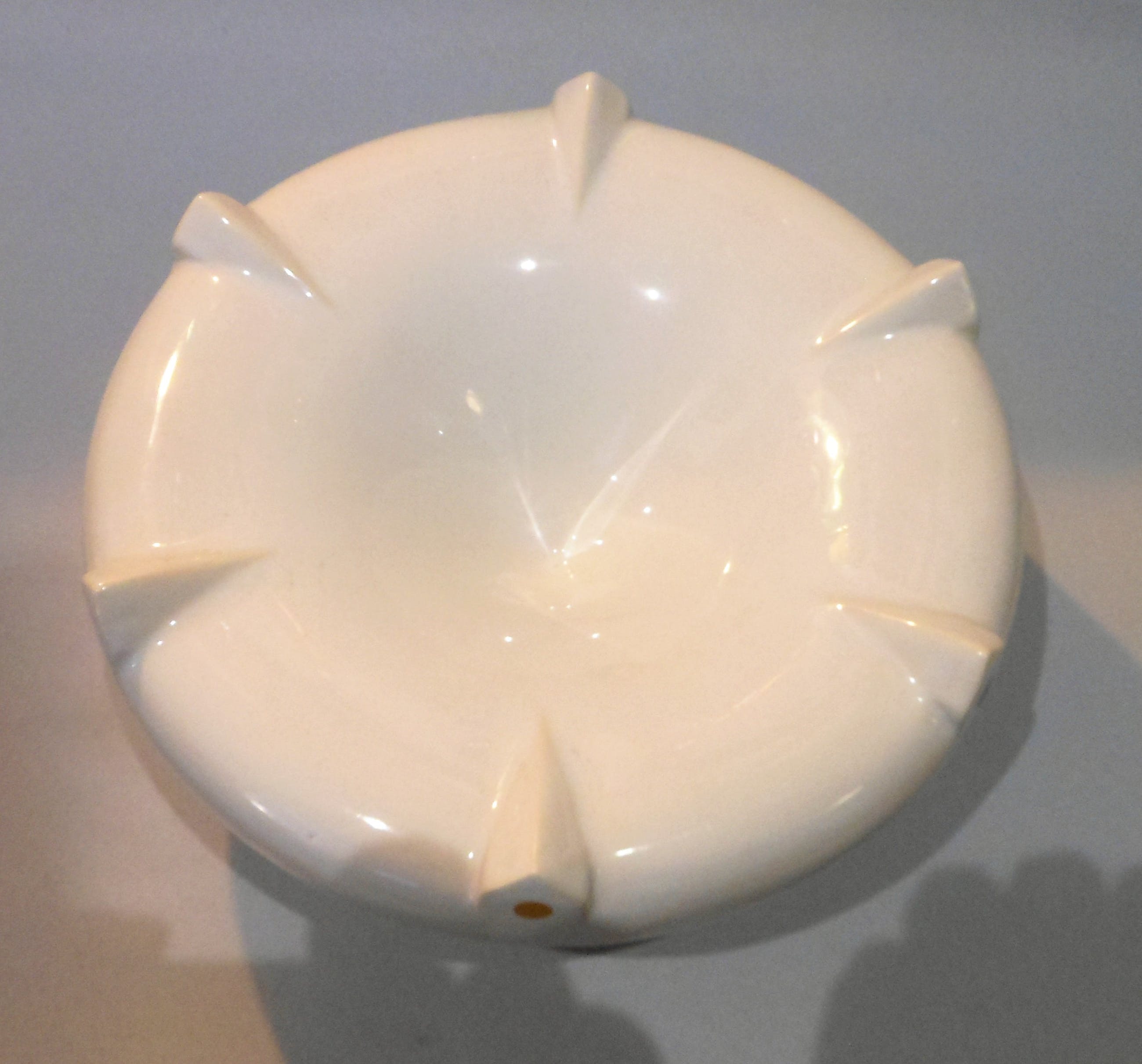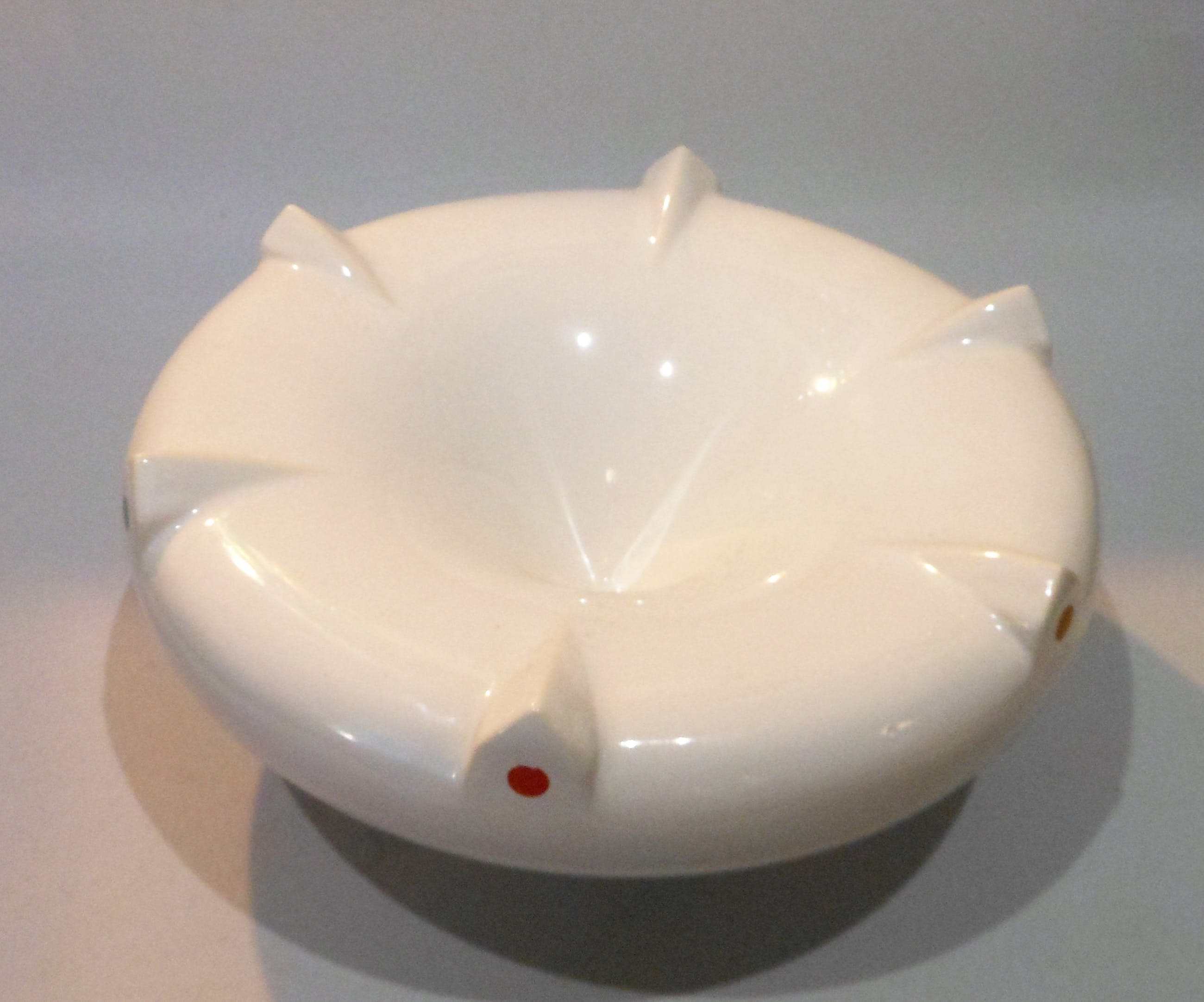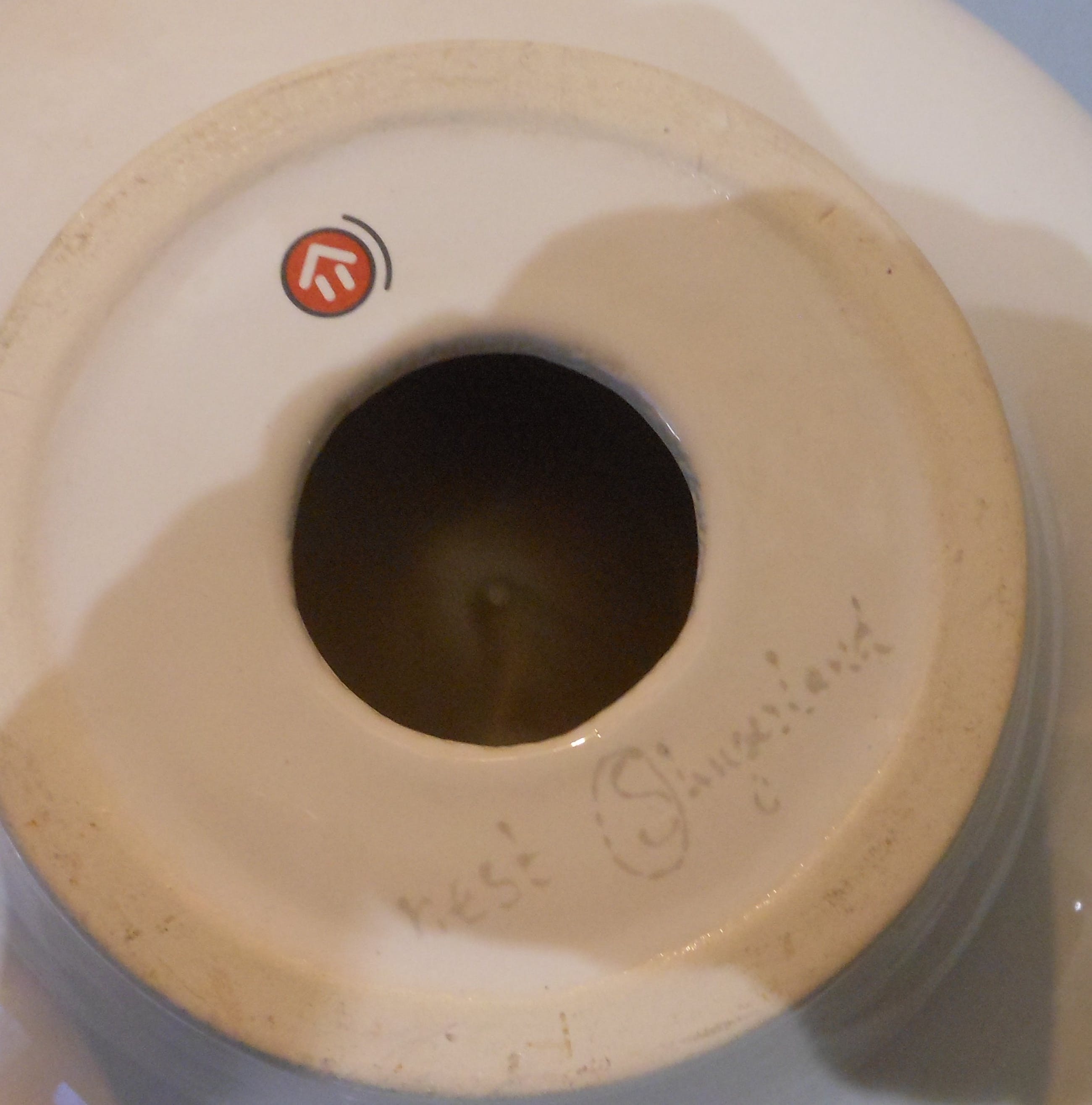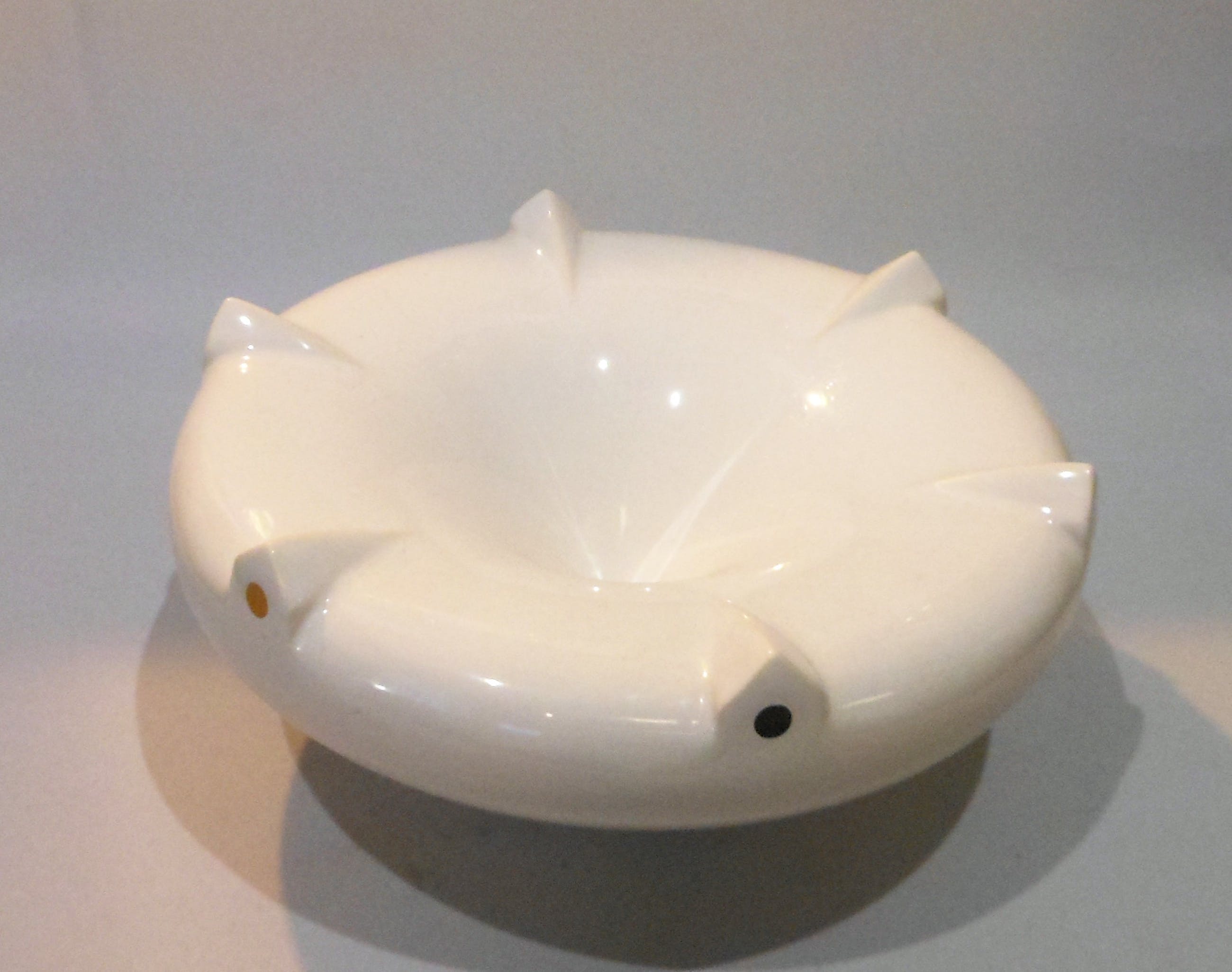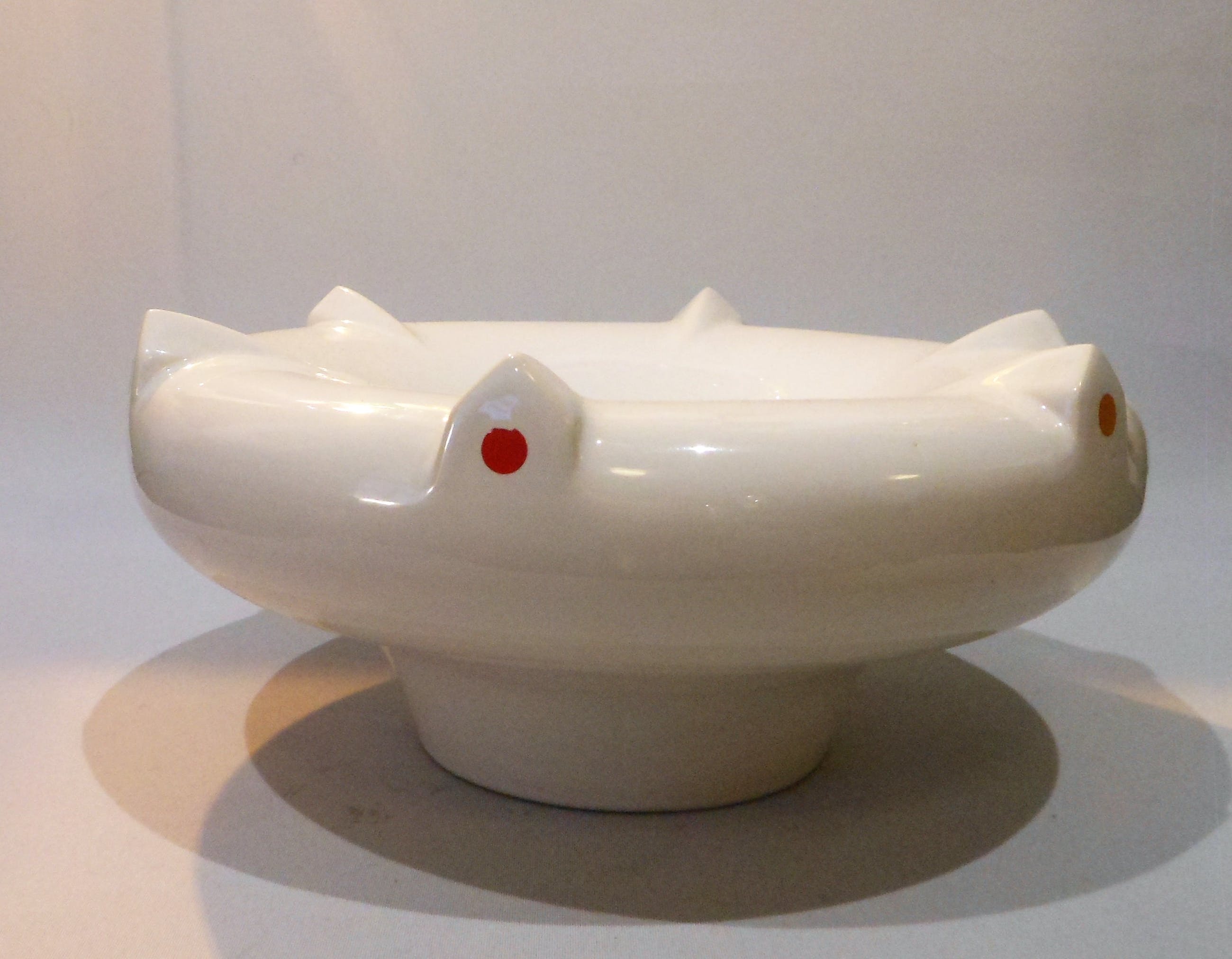 Mooie schaal uit de serie Bebouwde Kom. Gesigneerd aan de onderkant, met 6 verschillende kleuren huisjes. Minder vaak voortkomende hoge uitvoering.