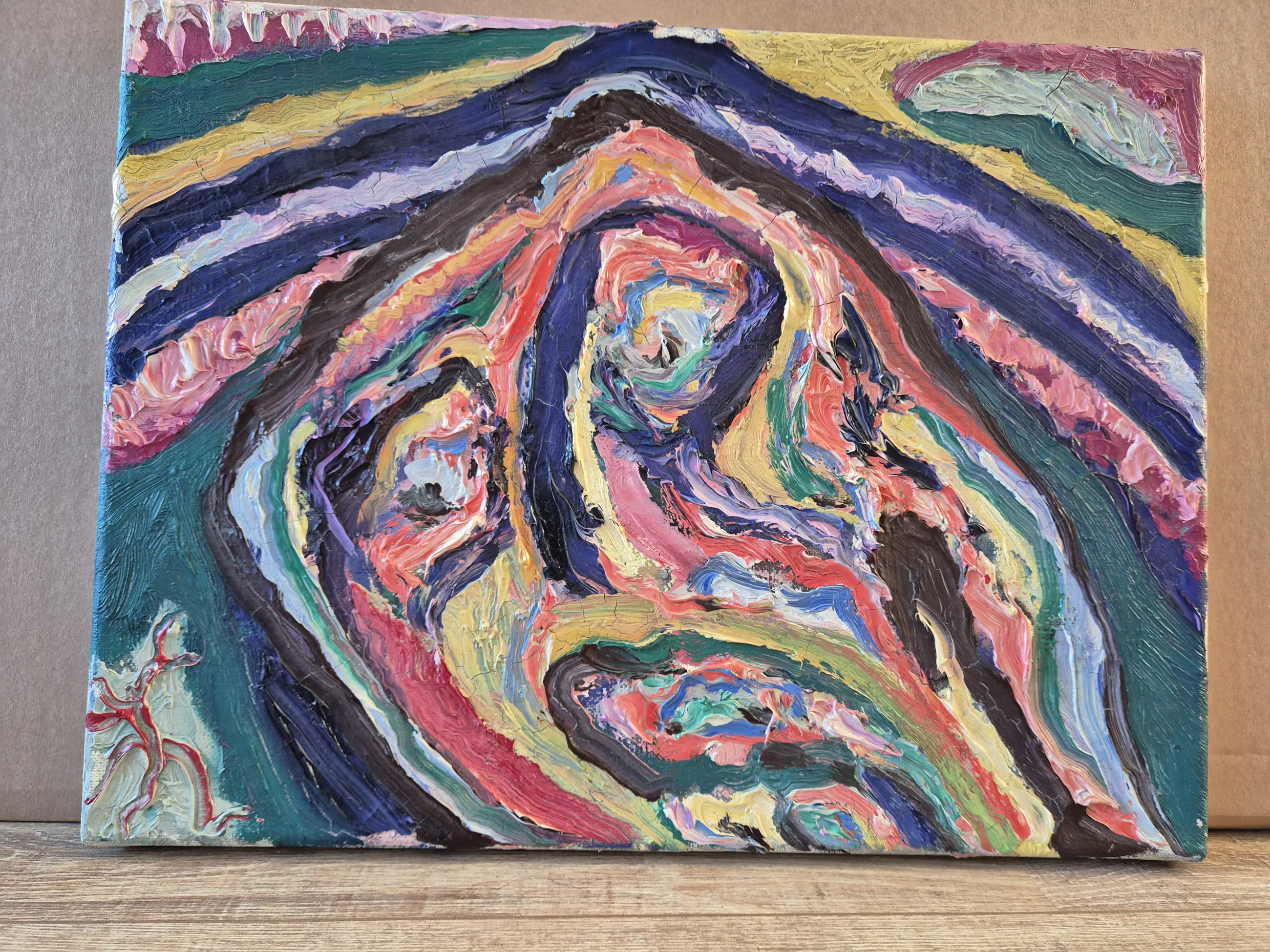 Veelkleurig fraai werk van Olav Vorsel uit zijn beginjaren (jaren '80). Het werk kan opgehaald of door mij gebracht worden.