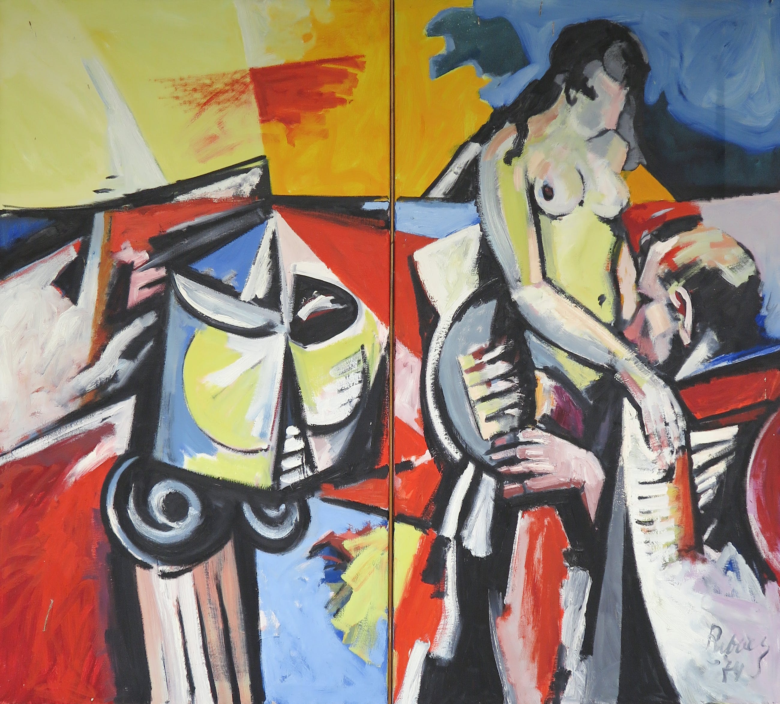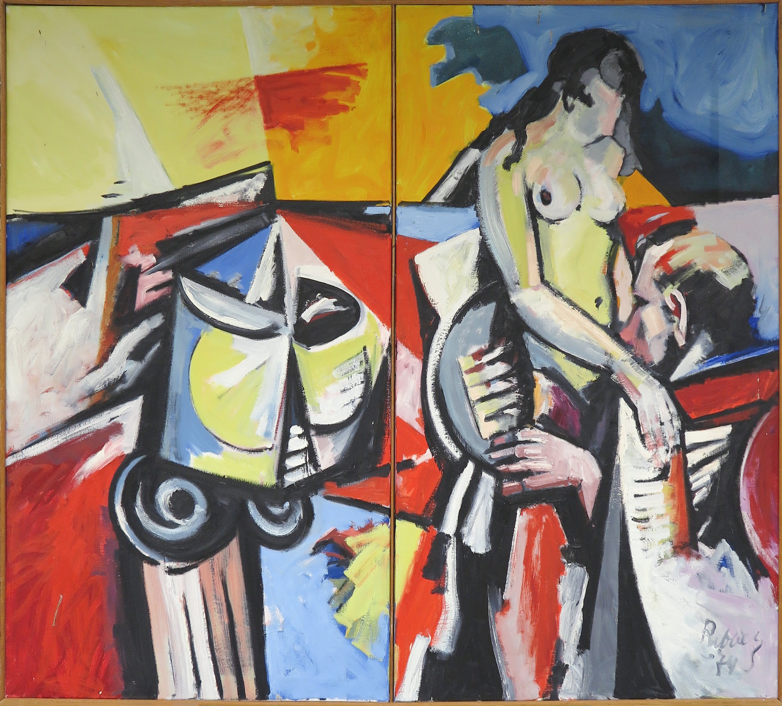Oorspronkelijk geschilderd als twee-luik, maar samen ingelijst.