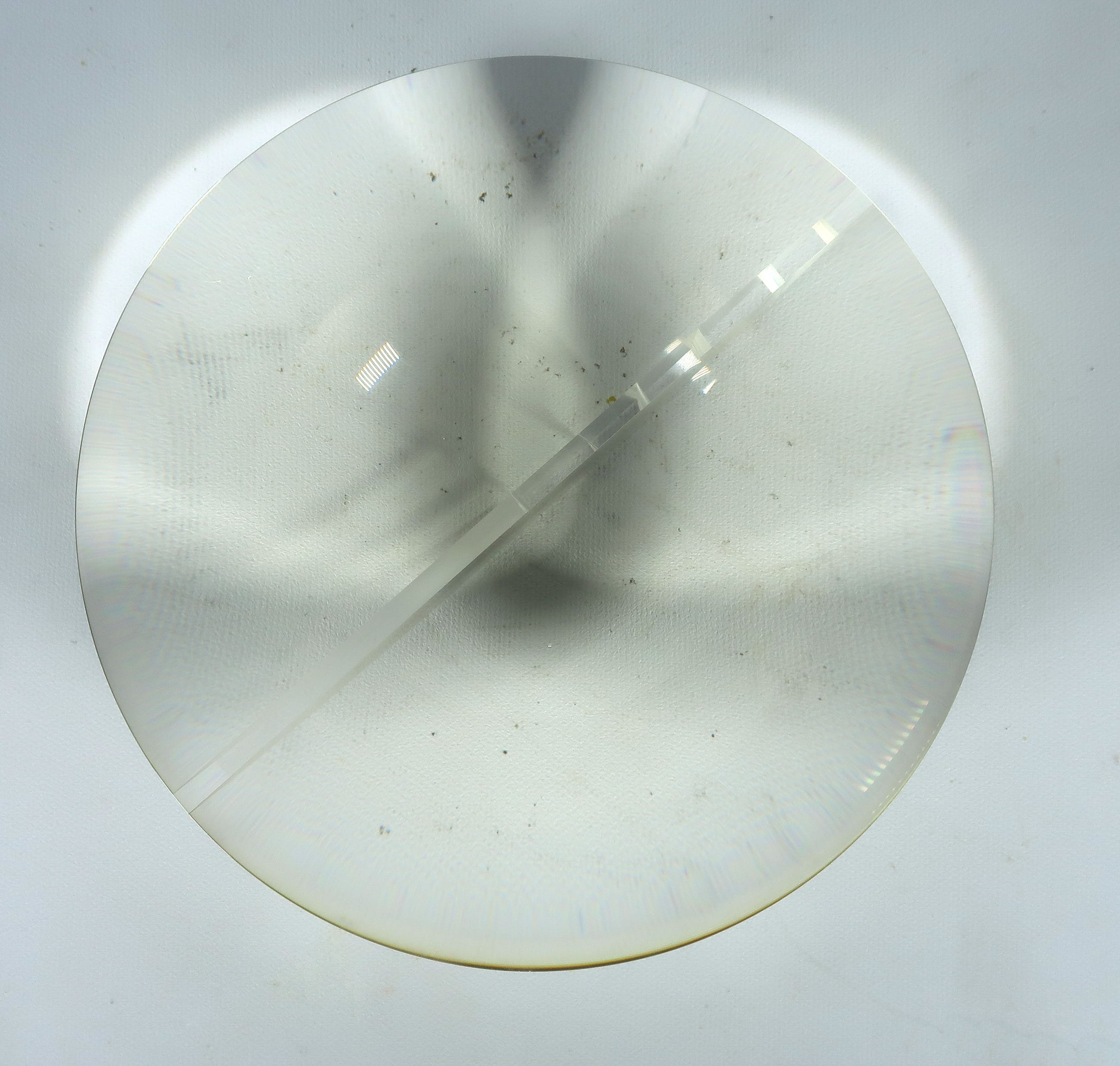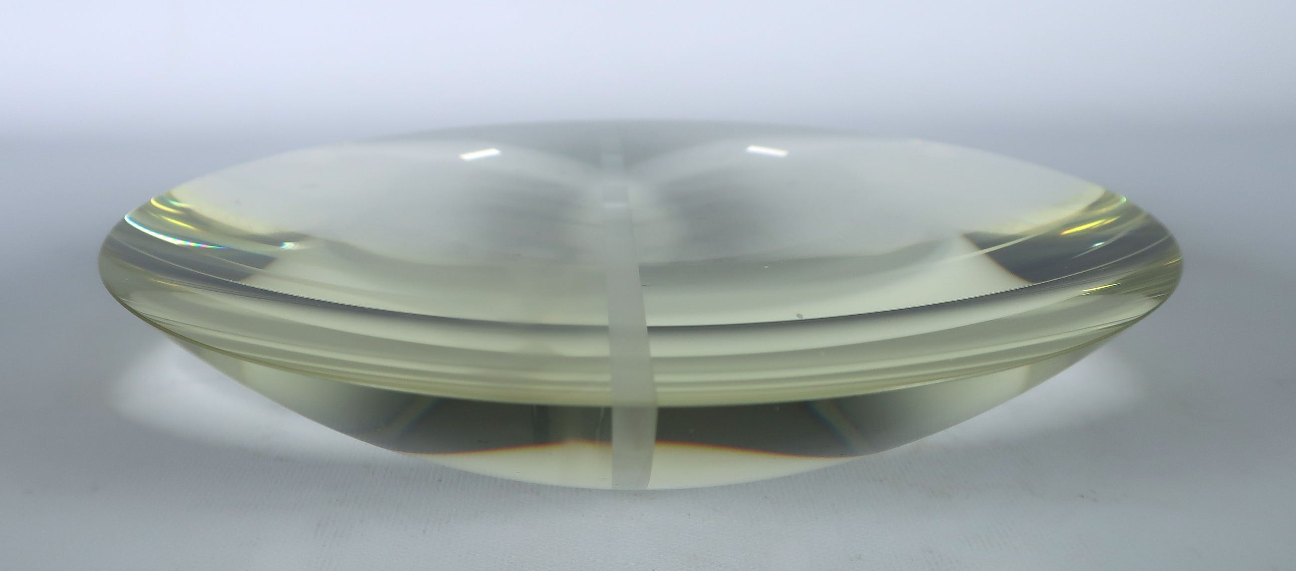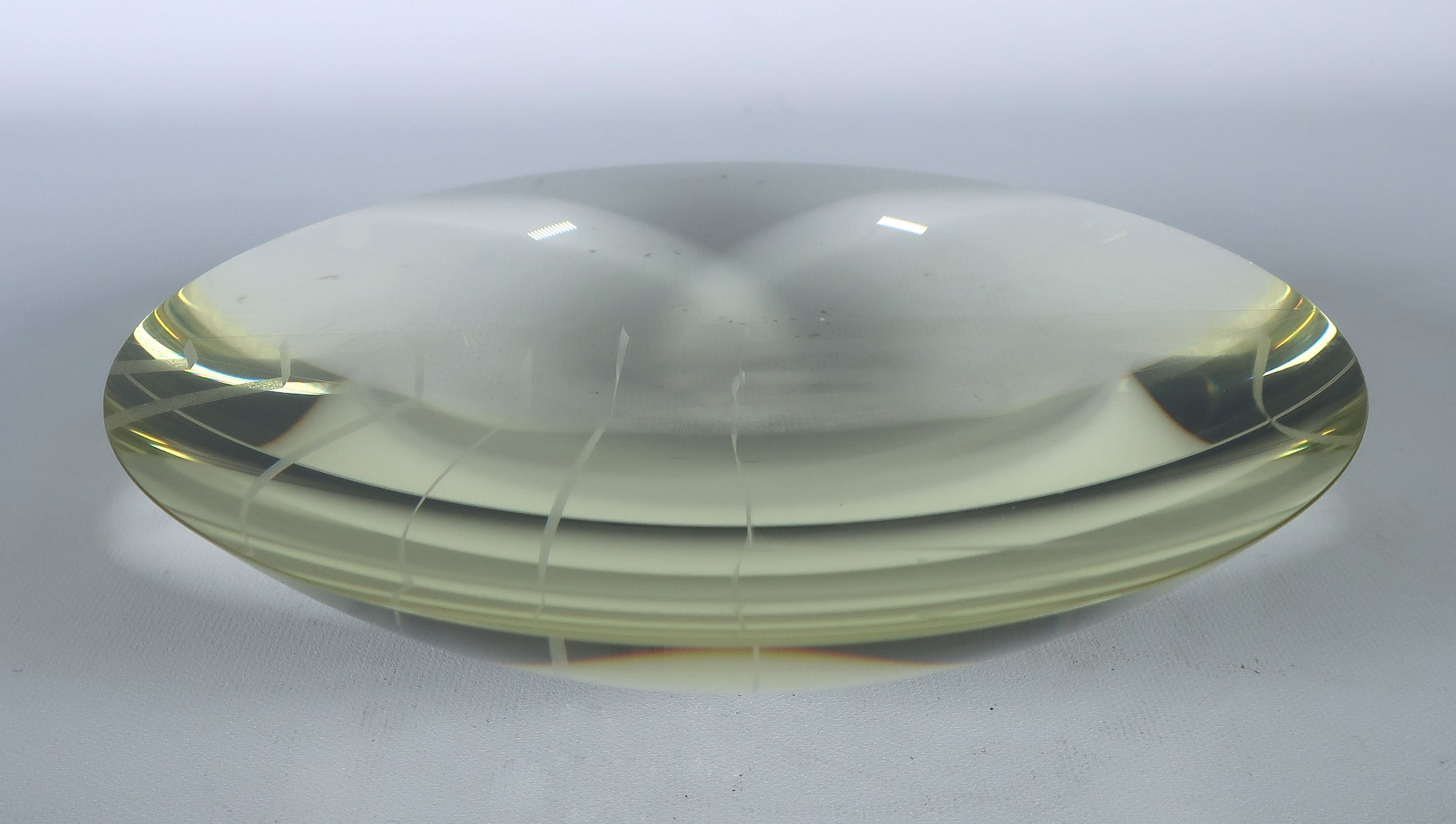 | Op het liggedeelte zitten enkele miniscule krasjes. De vlekjes die u in het object ziet, zitten op de ondergrond waarop het object is gefotografeerd. Door de optische werking van het glas lijkt het erin te zitten. | |