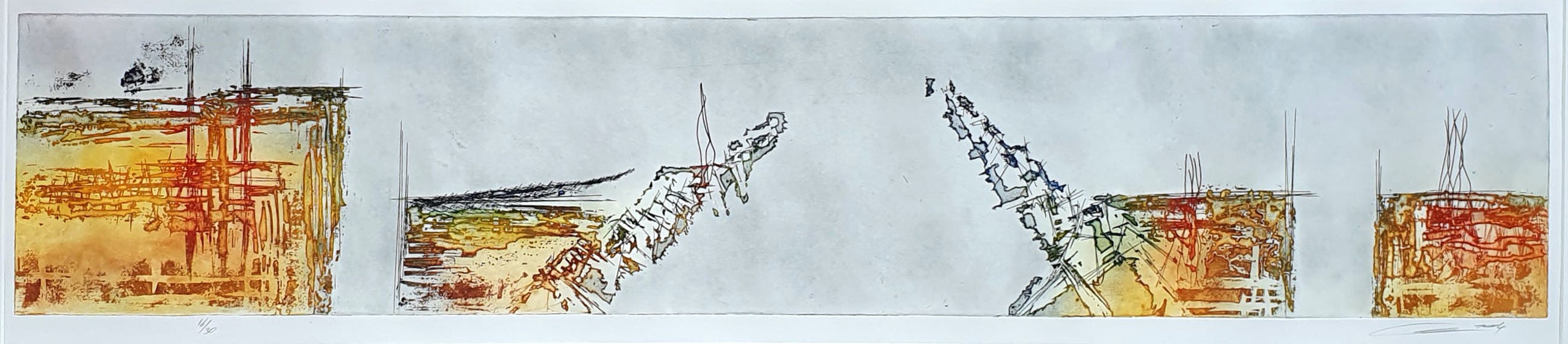 Kunstenaar: Olivier Beijn Techniek: Kleurenets Oplage: 30 Gesigneerd: Rechtsonder Ingelijst: Ingelijst Afmeting zonder lijst (HxB): 22 x 110 cm Conditie lijst: 58 x 143 cm Conditie Werk: Zeer goed Conditie lijst: Zeer goed