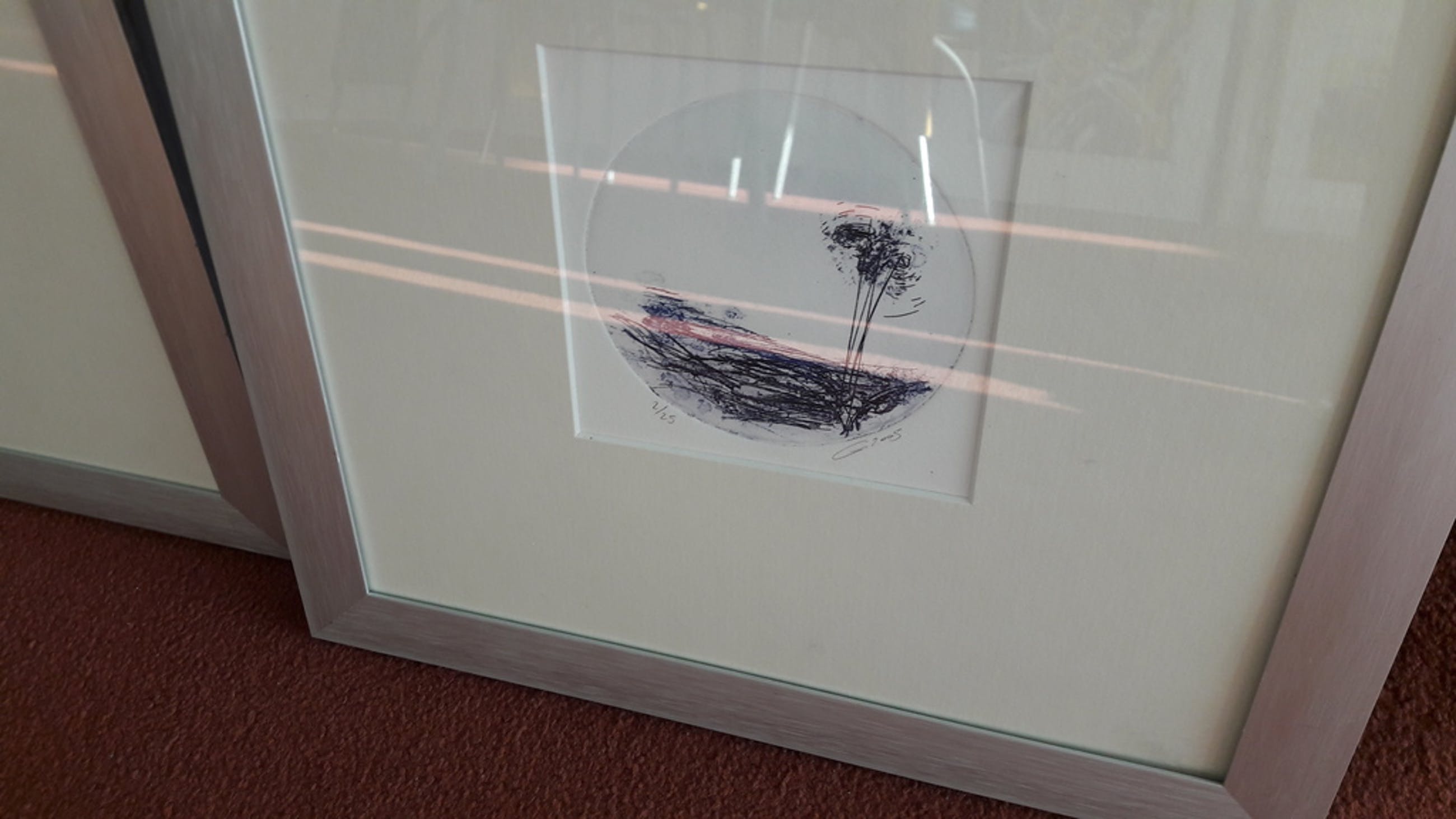 3 ingelijste zeefdrukjes van olivier beijn genummerd en gesignaleerd.