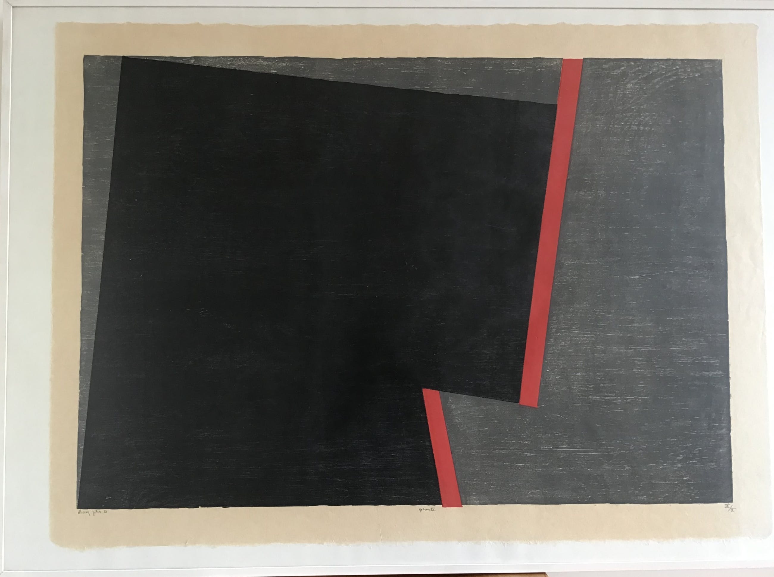 Abstract vlakken Zwart, grijs,  rode lijnen.