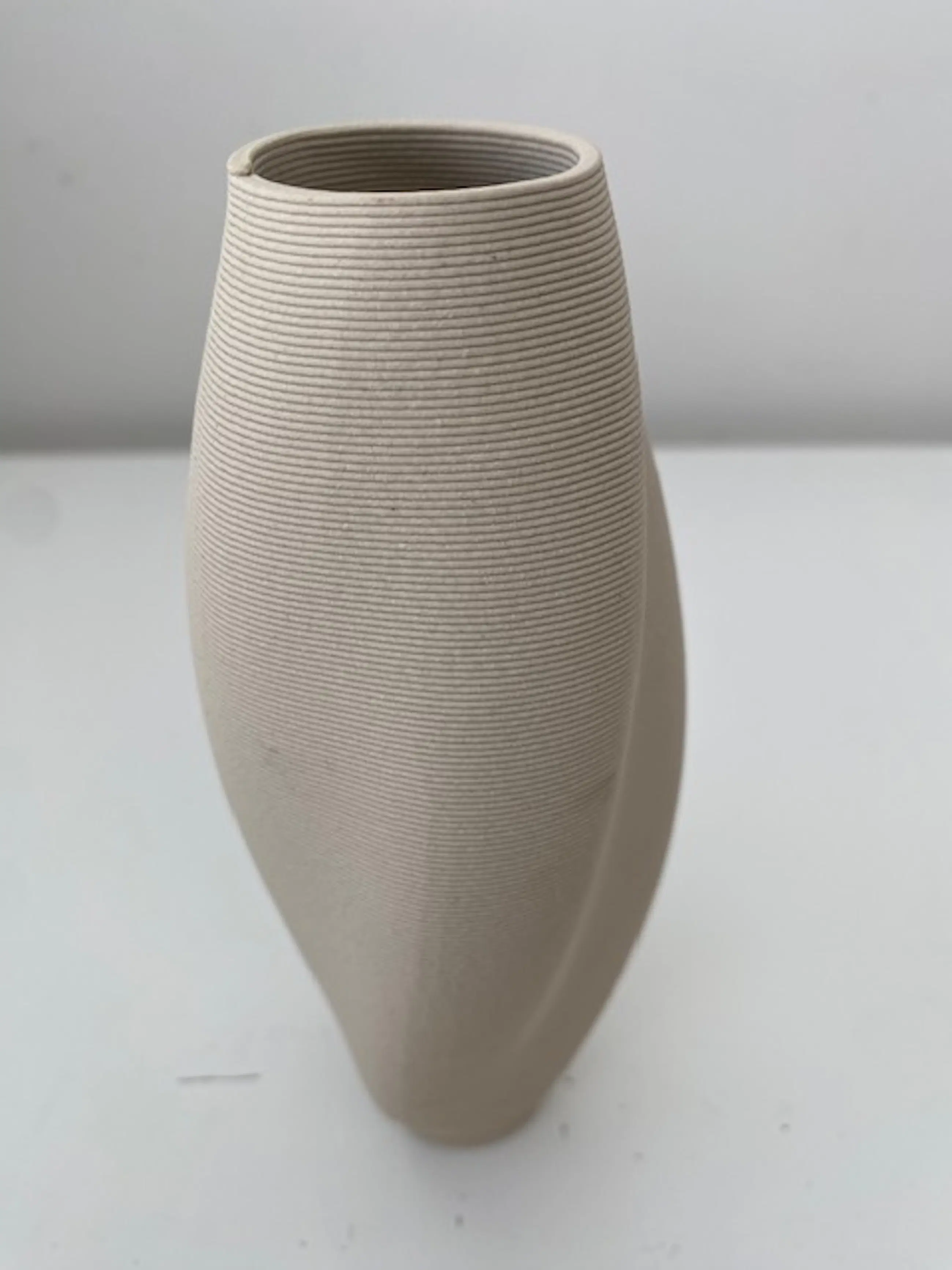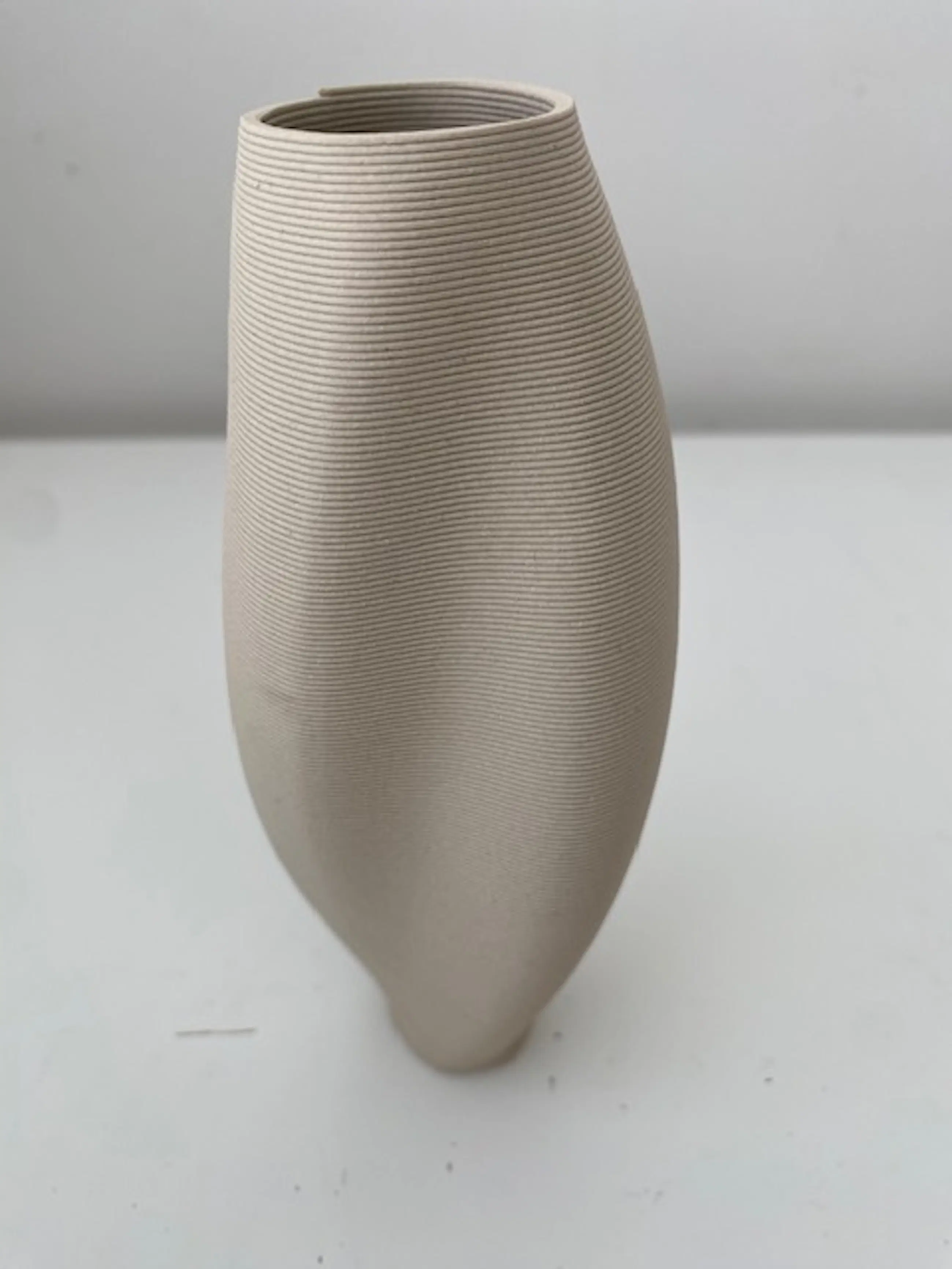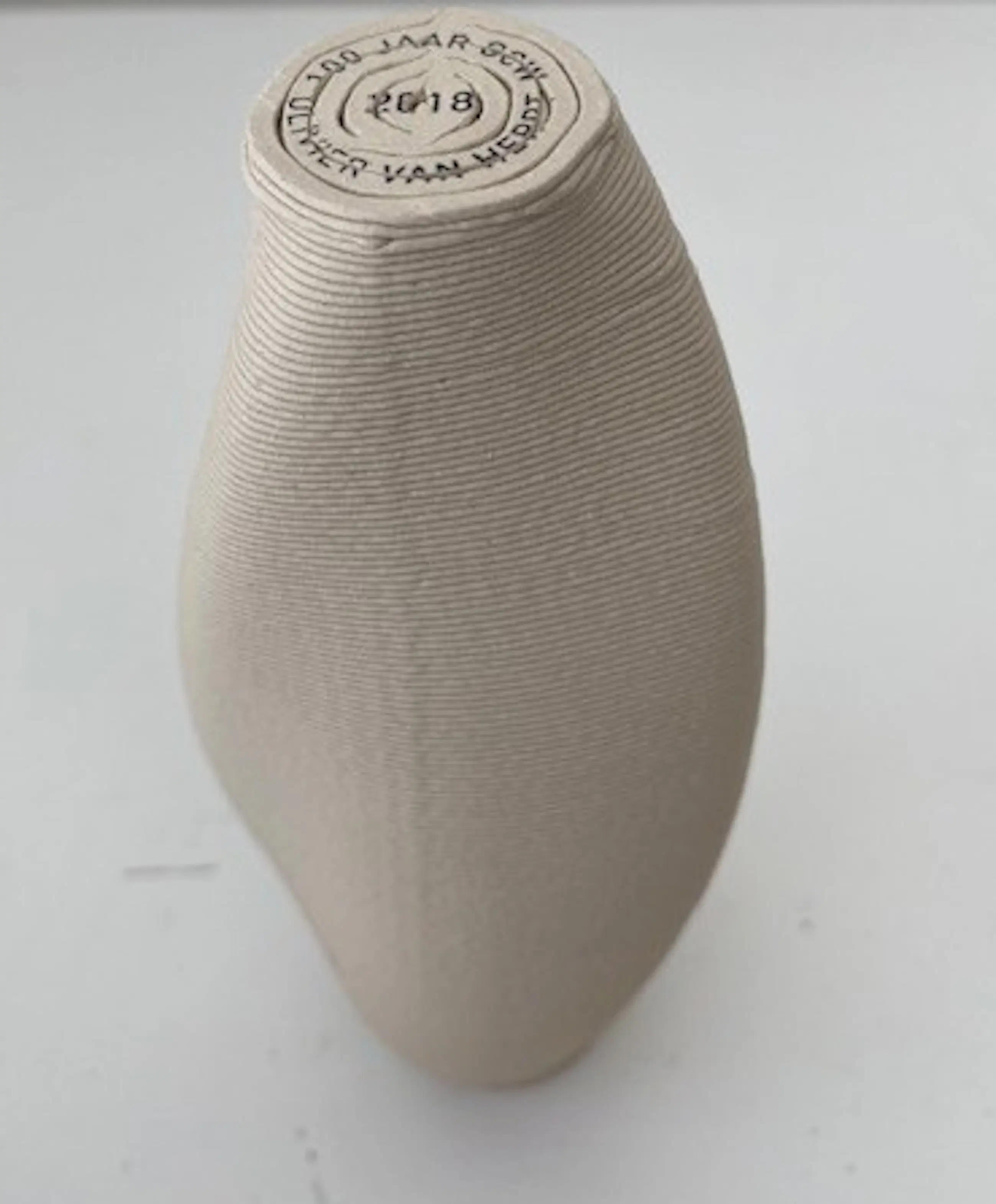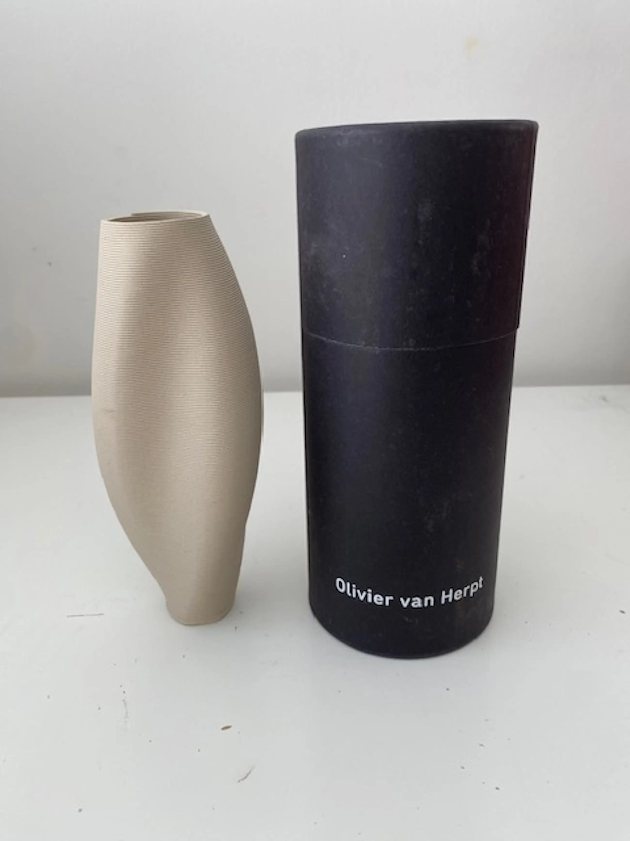 Uniek porseleinen vaasje "Dune". Ontworpen en geproduceerd door Olivier van Herpt (2018). Geproduceerd met een door van Herpt zelf ontwikkelde 3D printer voor keramiek. Onderscheiden met de prestigieuze Dutch Design Award. Werk van Olivier van Herpt is o.a. te vinden in het Stedelijk Museum Amsterdam en Center Pompidou in Parijs. Opdrachtgever Ministerie van Cultuur en Wetenschappen (100 jarig bestaan)